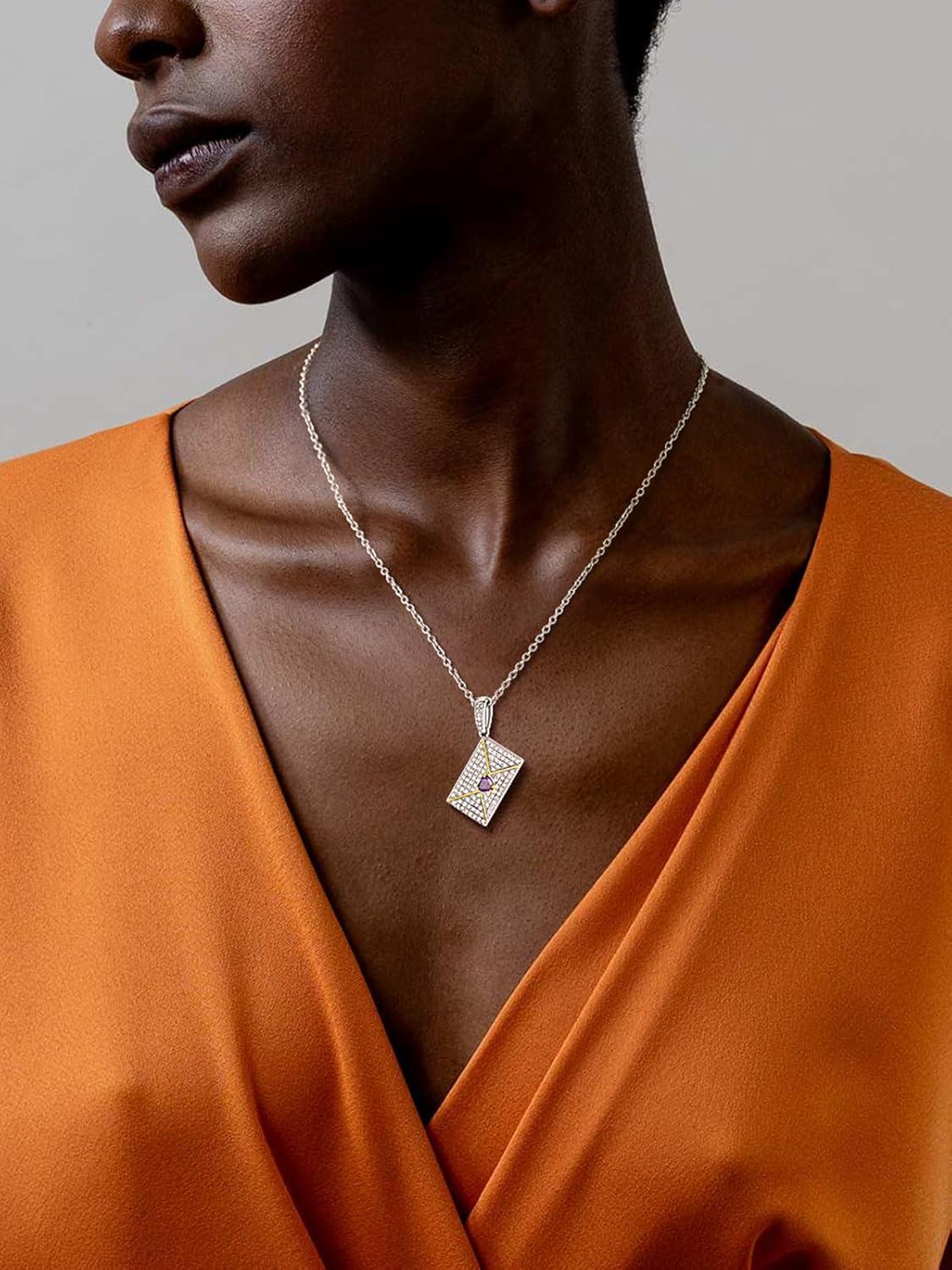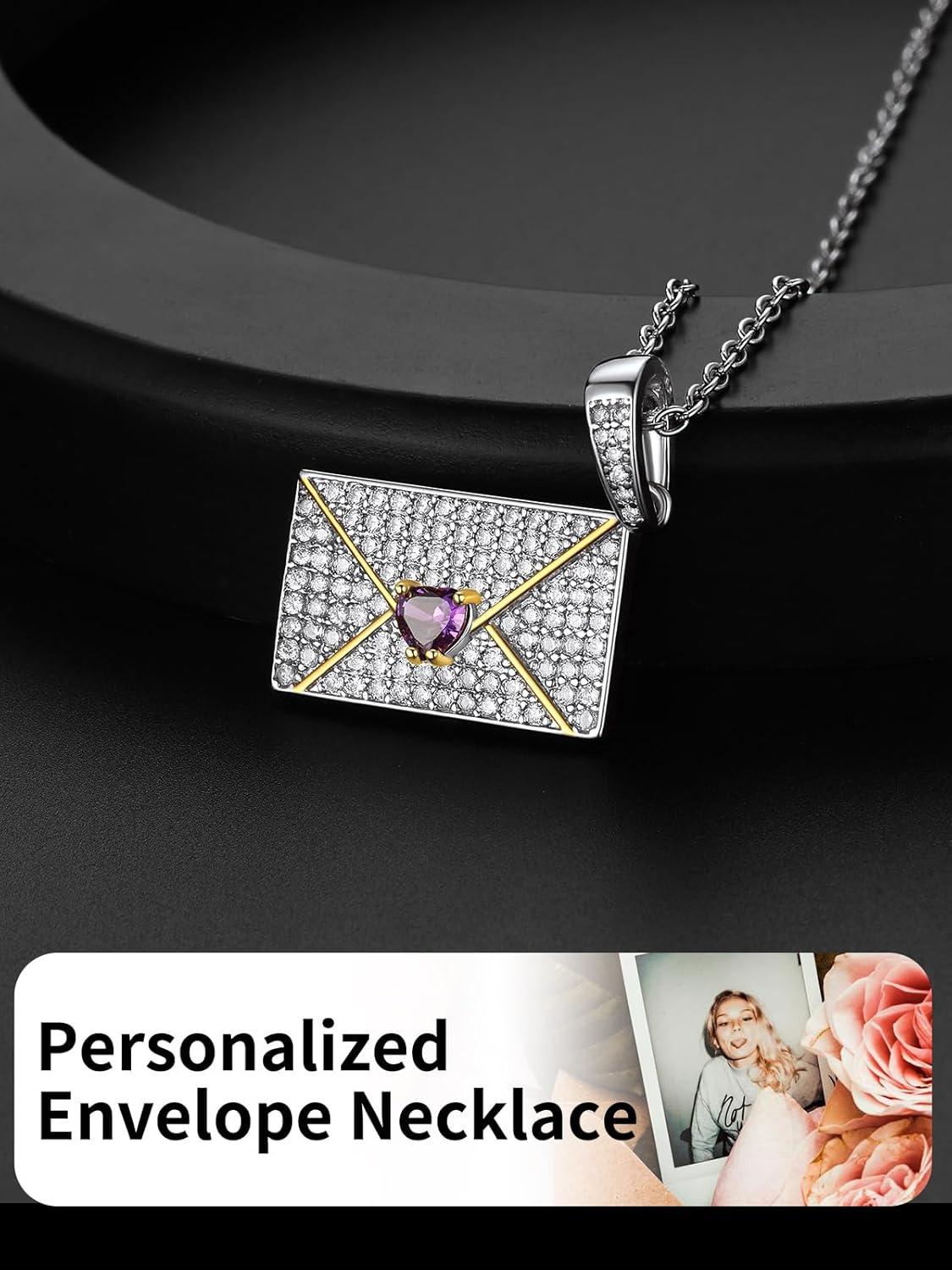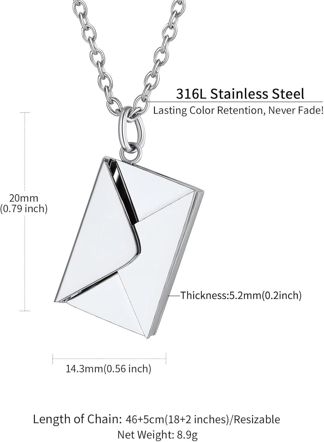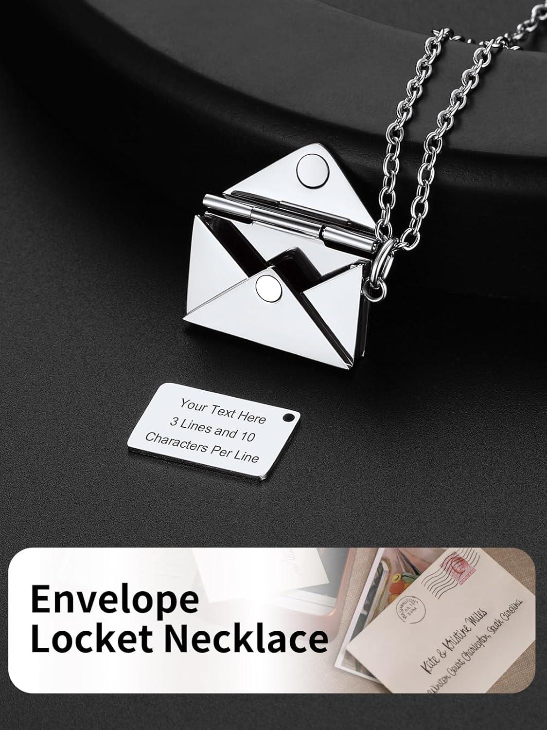 • ChainsHouse Personalized Locket Necklace, Custom Envelope Necklaces with Photo Message Engraved for Women, Stainless Steel/Black/Gold/Rose Gold Plated Memorial Gift for Wife (with Gift Box)(B – Love You Envelope-Silver)