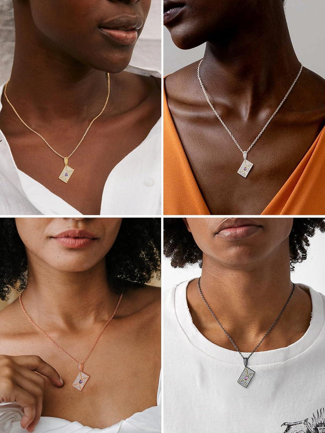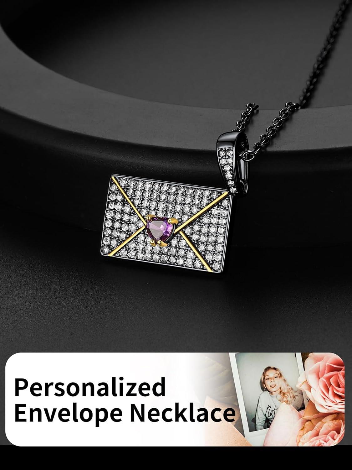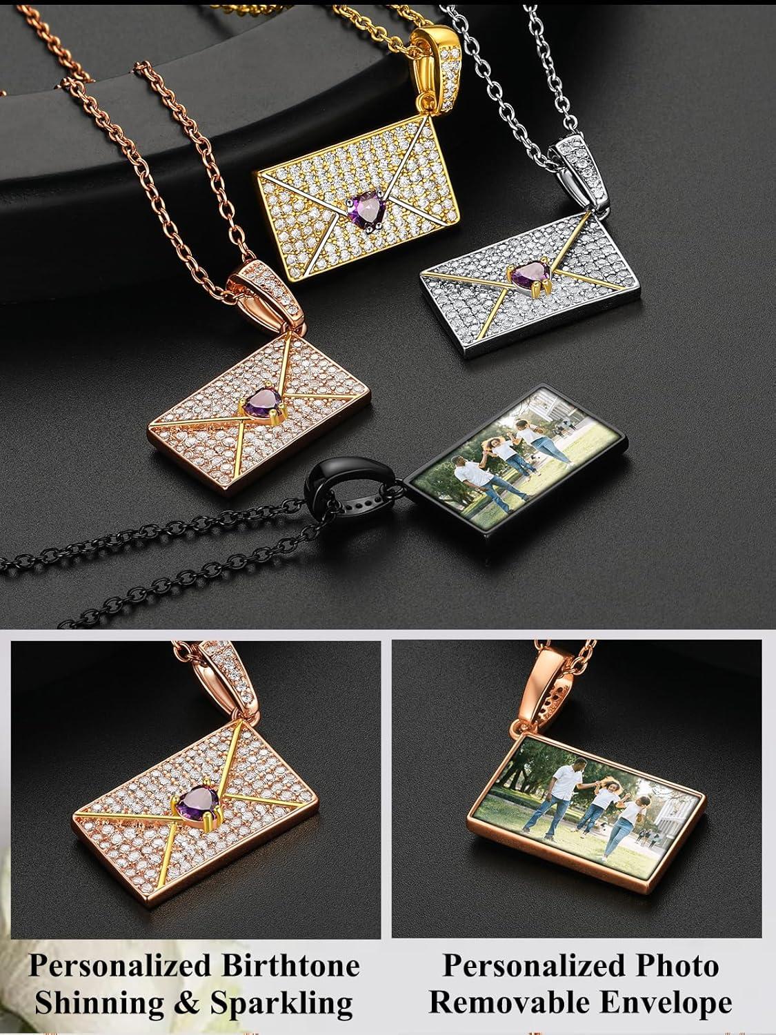 • ChainsHouse Personalized Locket Necklace, Custom Envelope Necklaces with Photo Message Engraved for Women, Stainless Steel/Black/Gold/Rose Gold Plated Memorial Gift for Wife (with Gift Box)(D – Photo & Birthstone-Black)