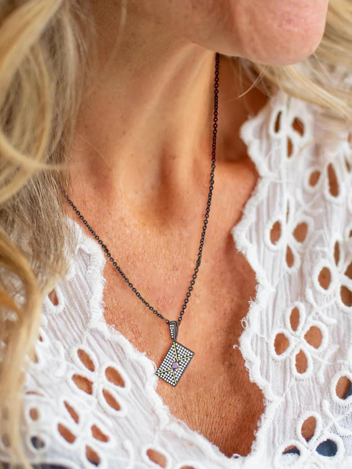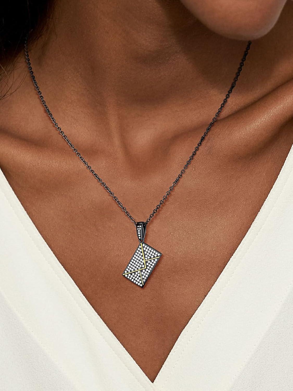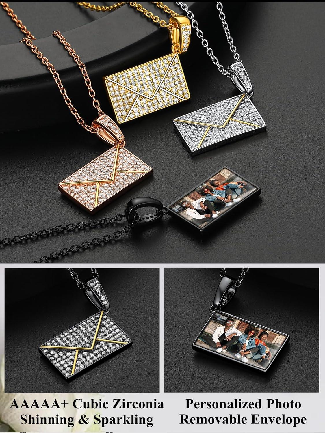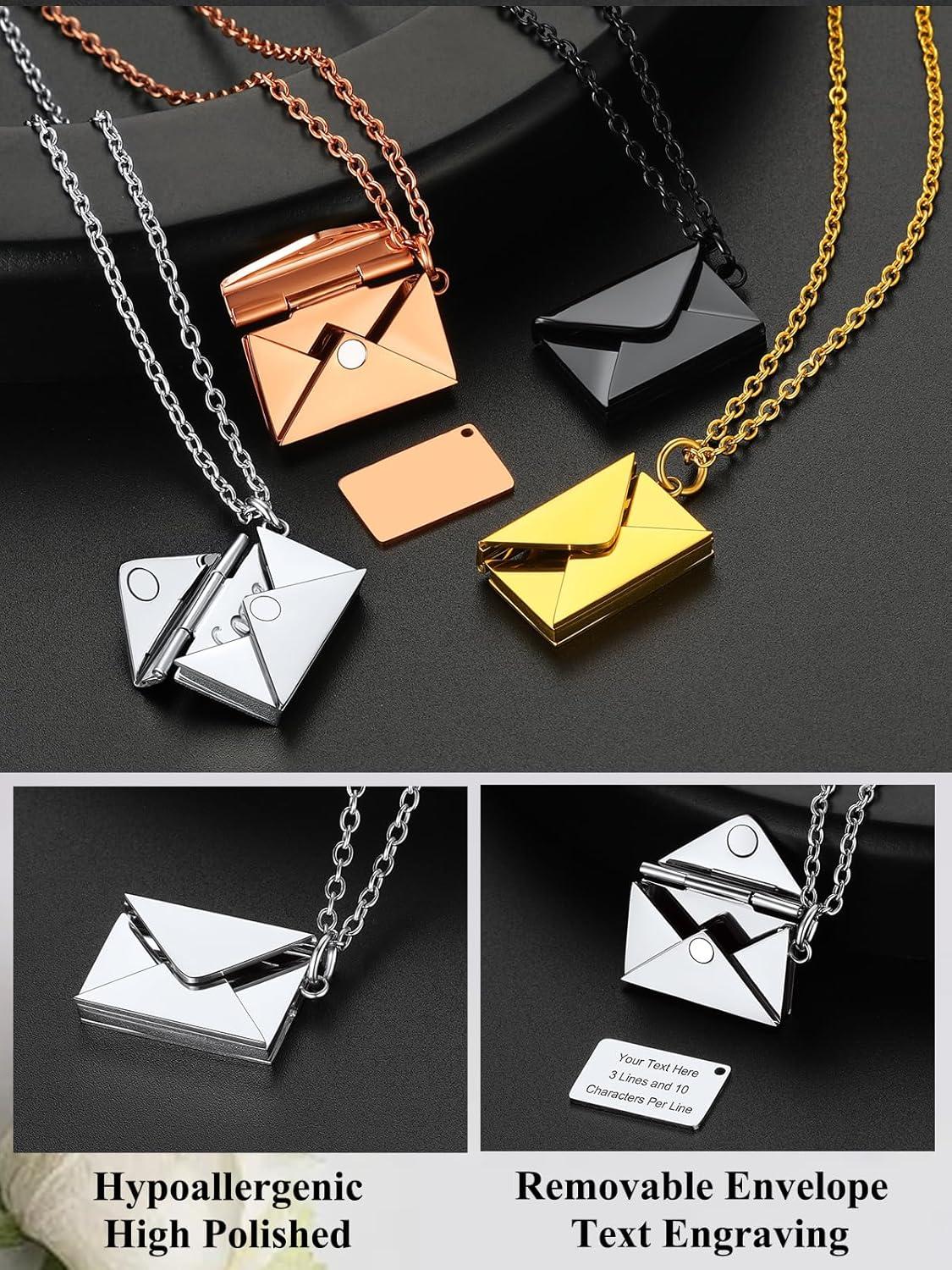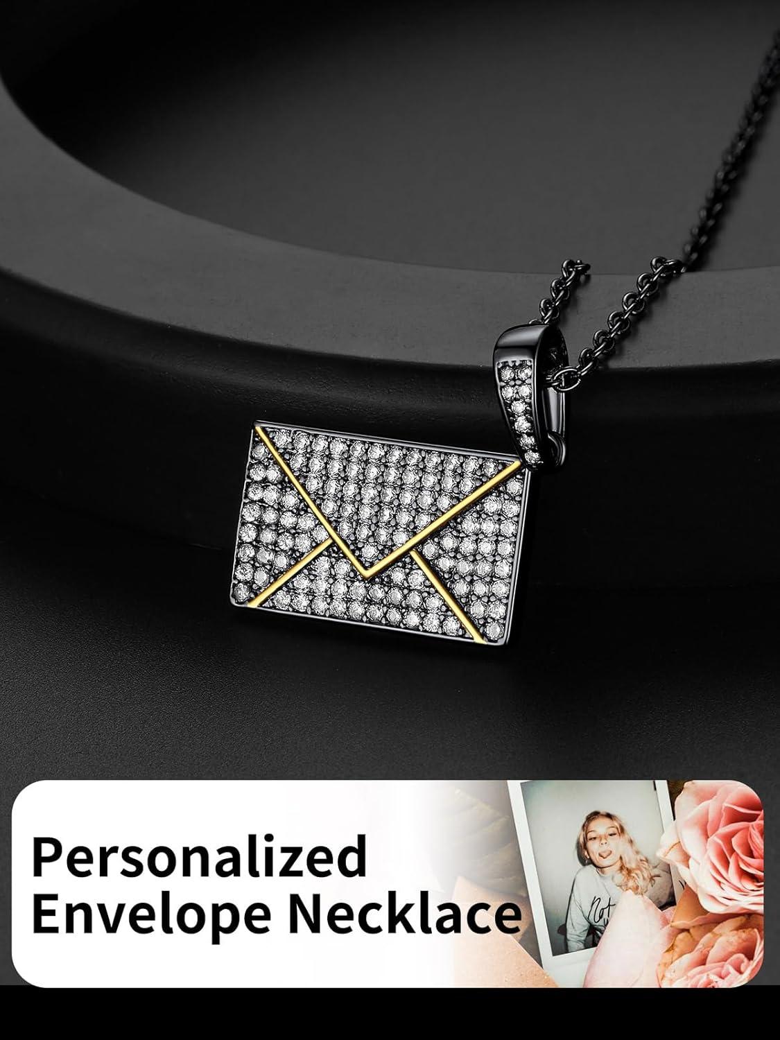 • ChainsHouse Personalized Locket Necklace, Custom Envelope Necklaces with Photo Message Engraved for Women, Stainless Steel/Black/Gold/Rose Gold Plated Memorial Gift for Wife (with Gift Box)(B – Love You Envelope-Black)