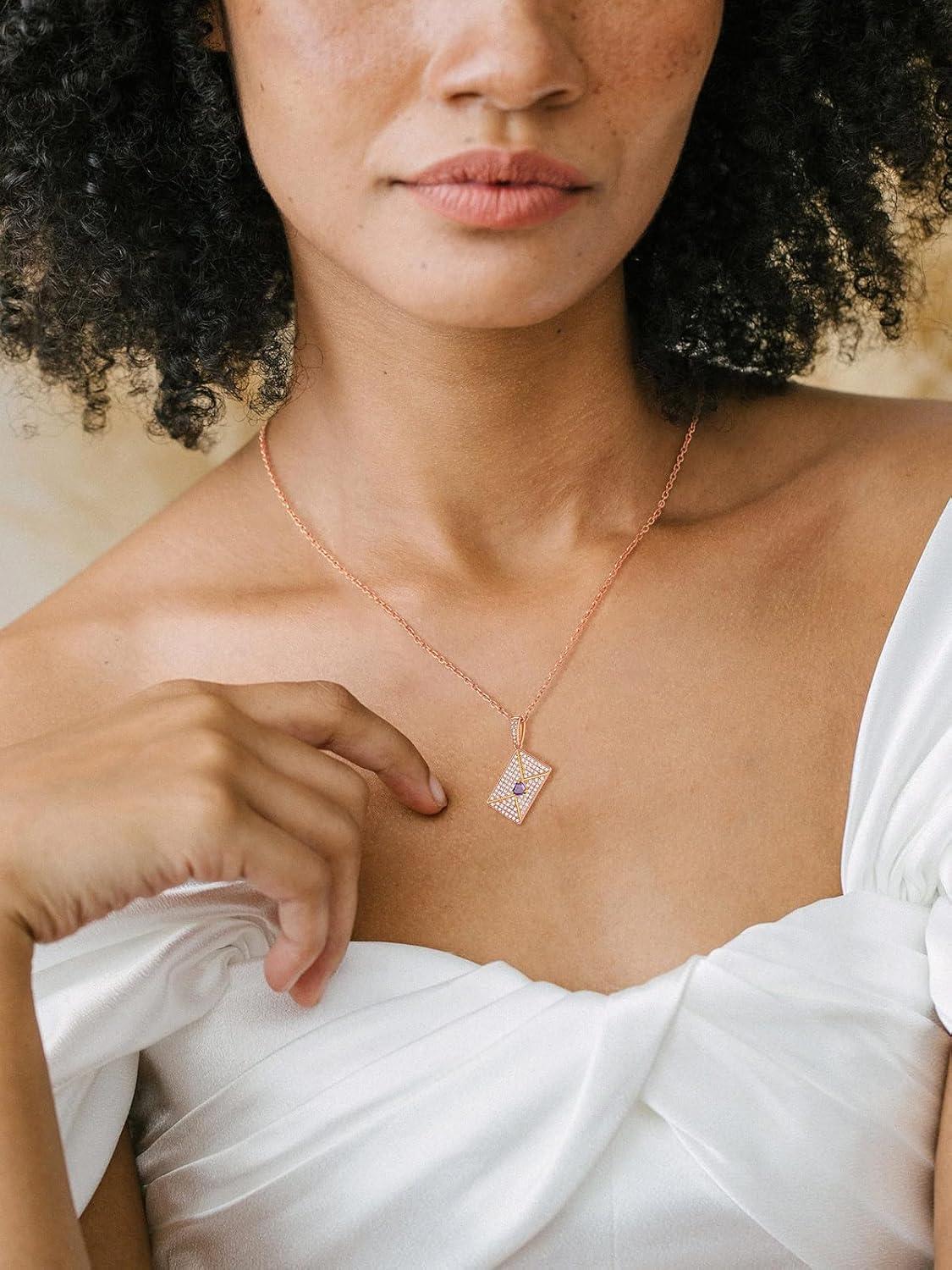 ChainsHouse Personalized Locket Necklace, Custom Envelope Necklaces with Photo Message Engraved for Women, Stainless Steel/Black/Gold/Rose Gold Plated Memorial Gift for Wife (with Gift Box)(C – Engraved Locket-Rose Gold)