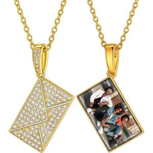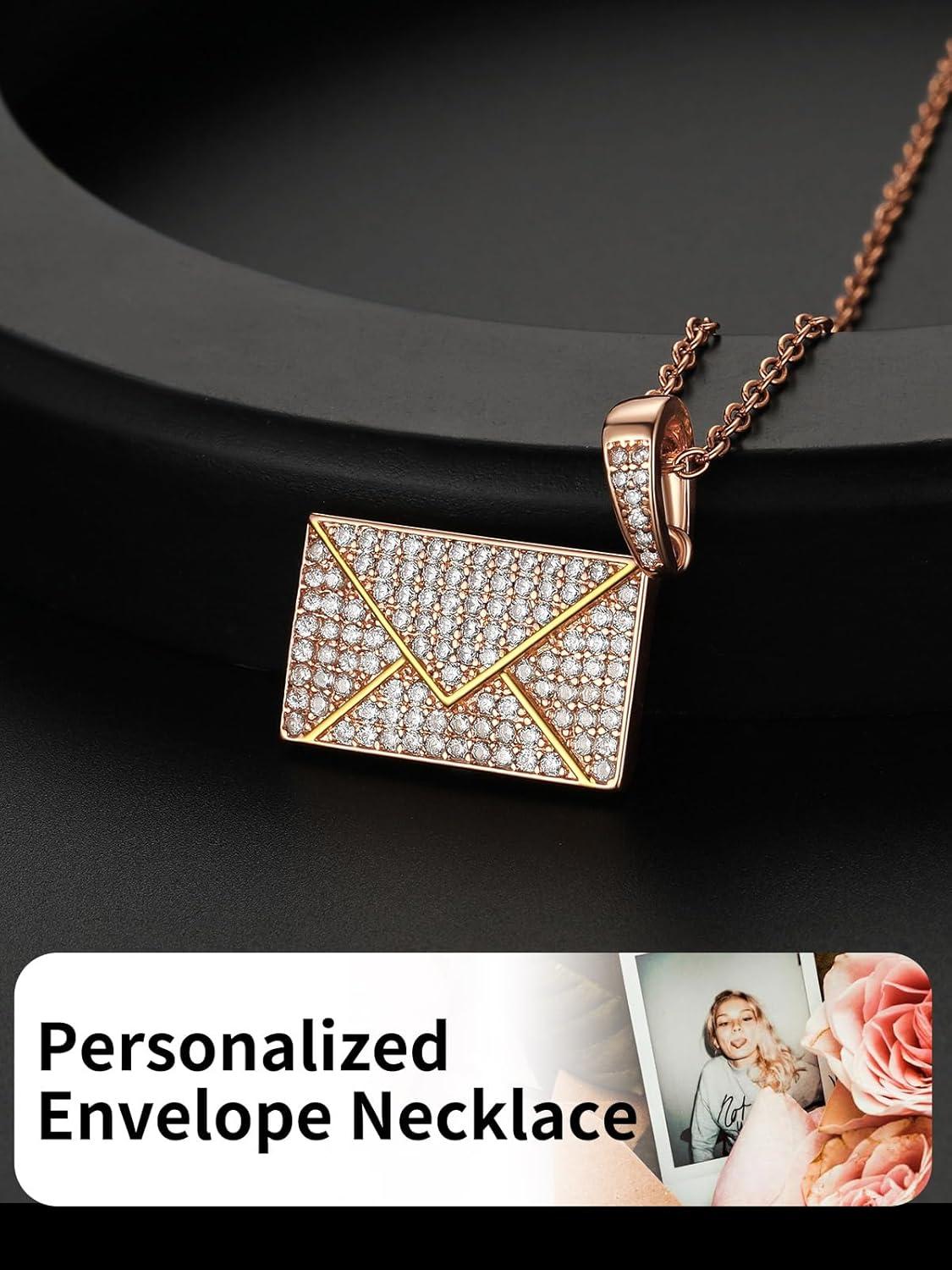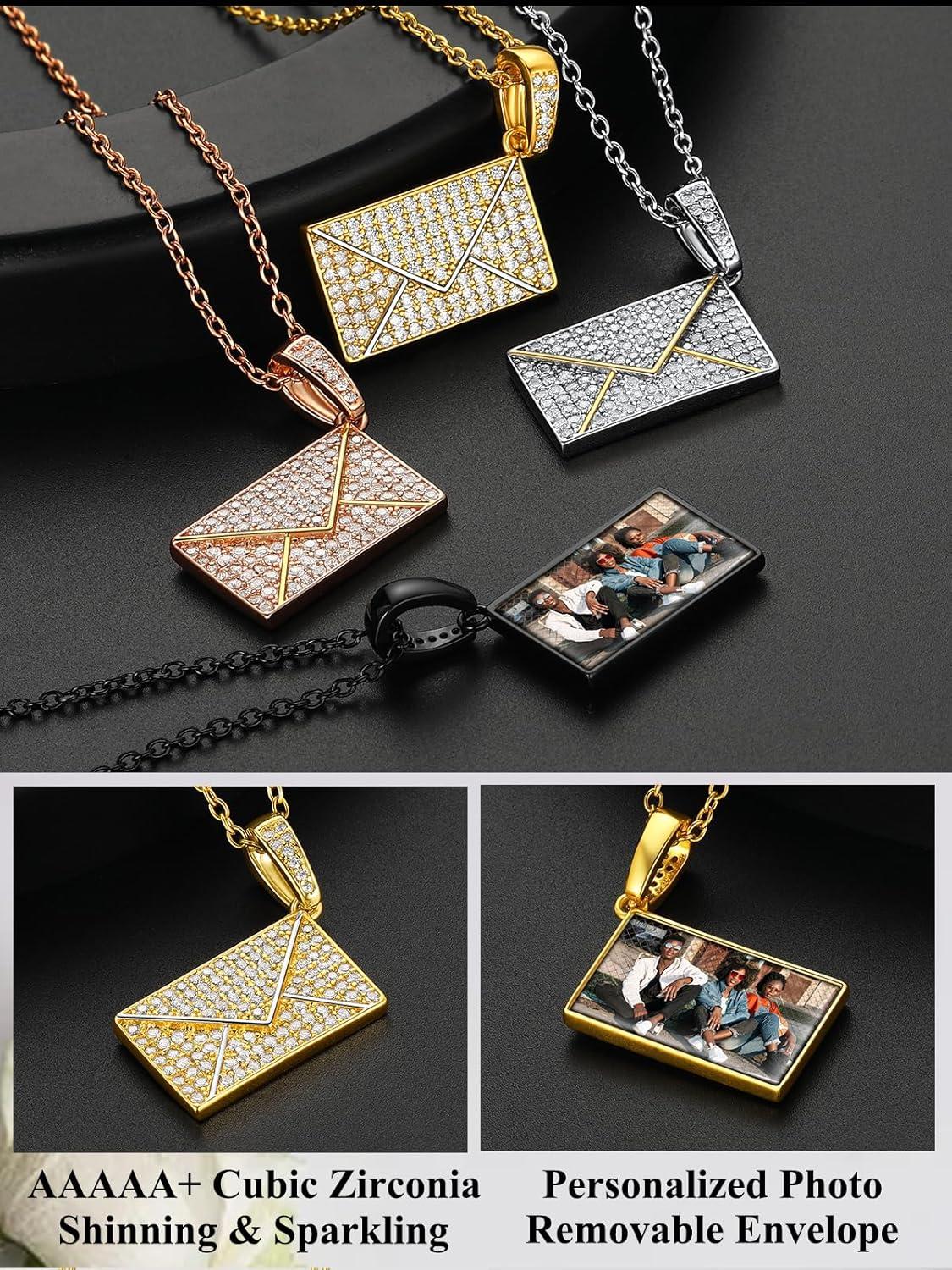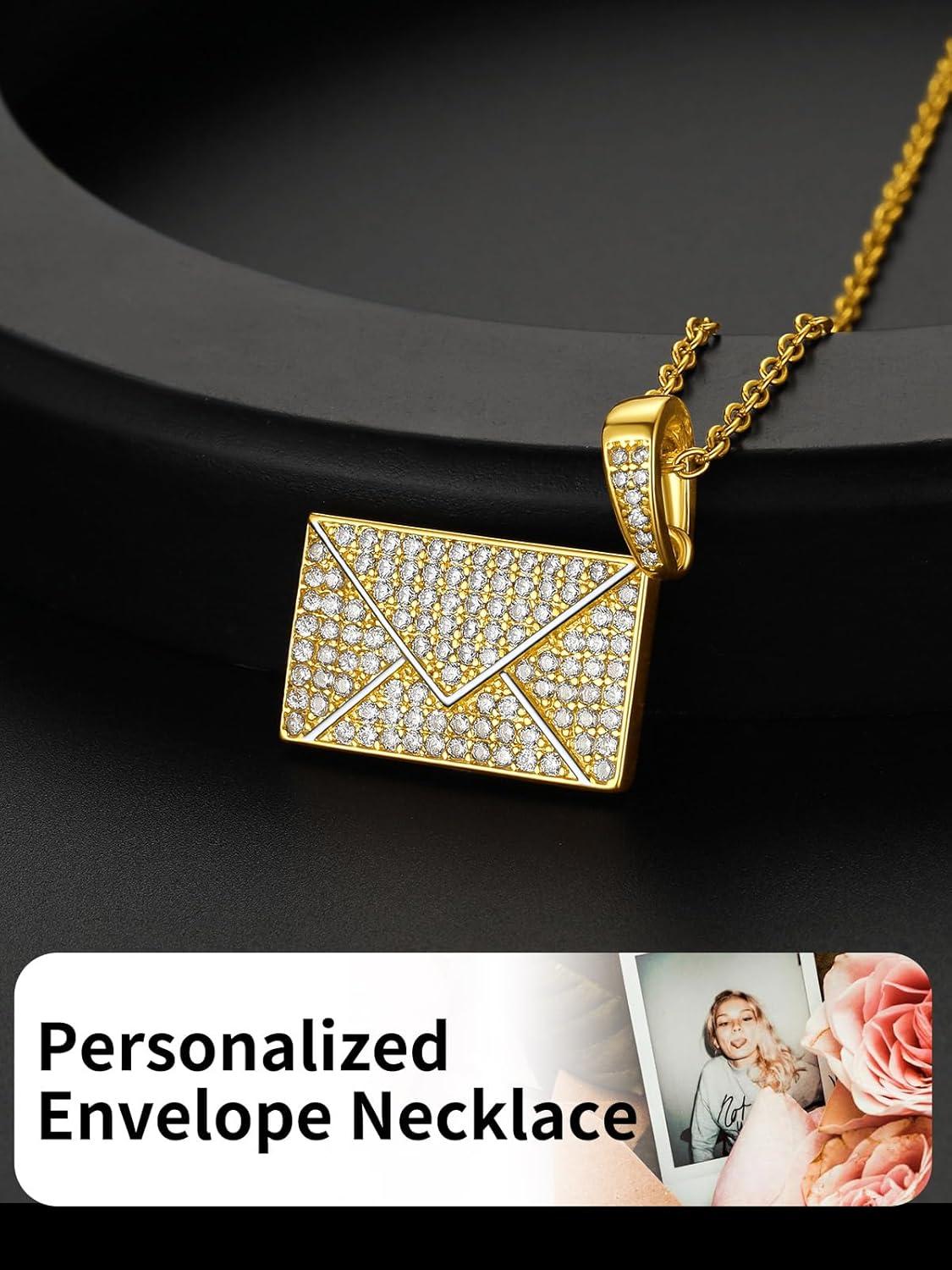 • ChainsHouse Personalized Locket Necklace, Custom Envelope Necklaces with Photo Message Engraved for Women, Stainless Steel/Black/Gold/Rose Gold Plated Memorial Gift for Wife (with Gift Box)(B – Love You Envelope-Gold)