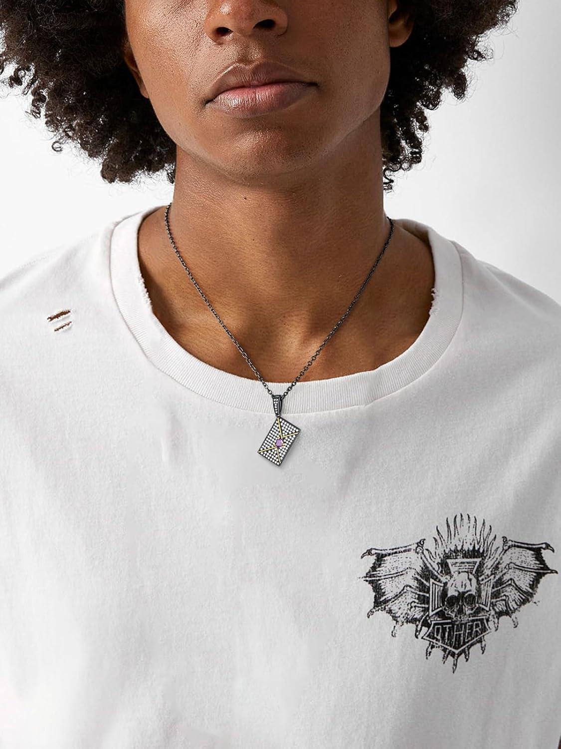 ChainsHouse Skull Necklace for Men, Retro Gothic Punk Jewelry Biker Necklace for Men Women Free Engraving Stainless Steel Dog Tag Pendant Necklace,with Gift Box(07. Cross -Black)