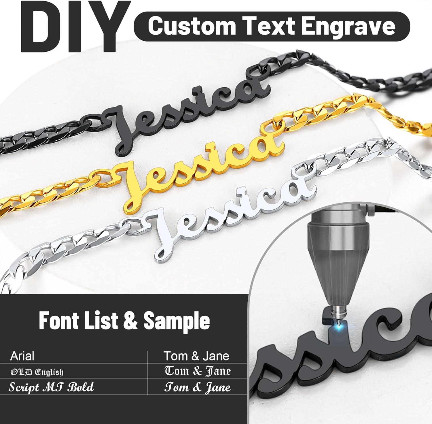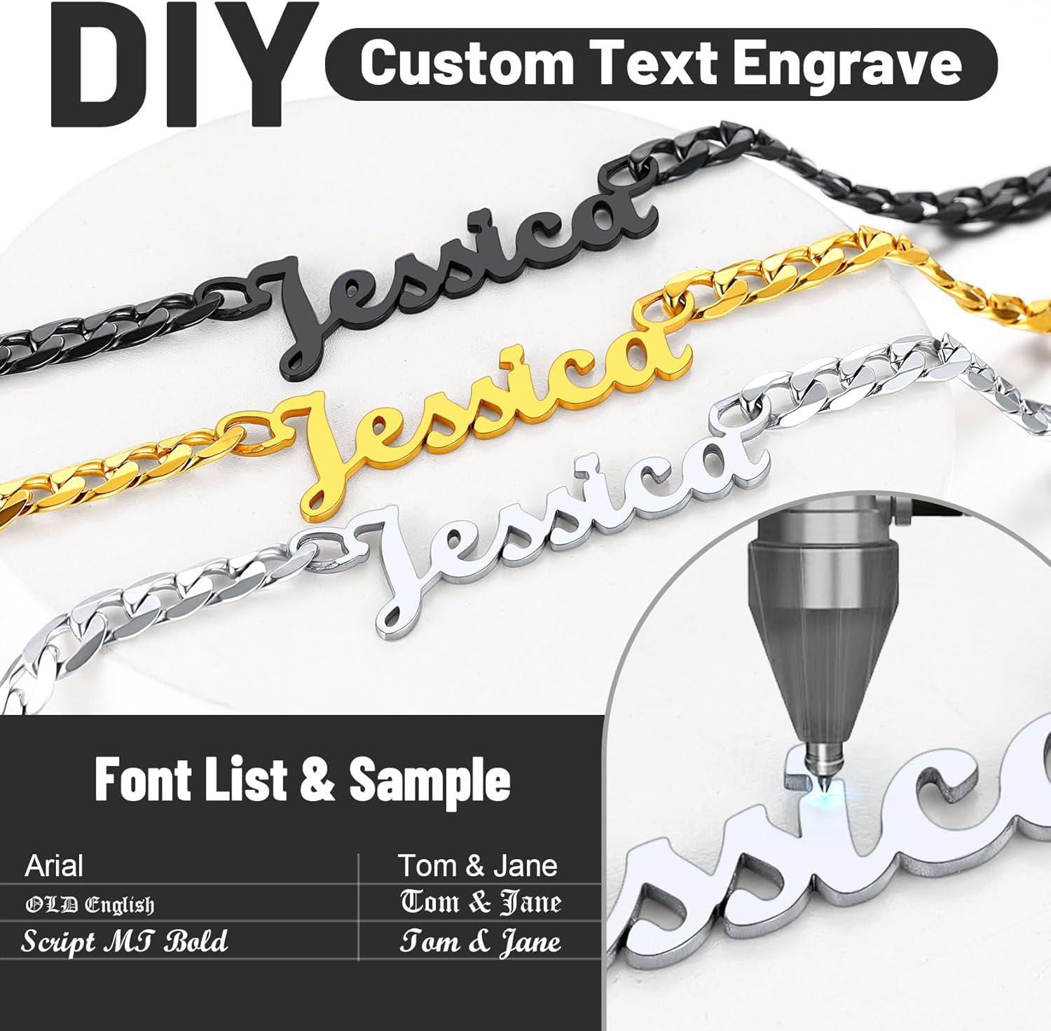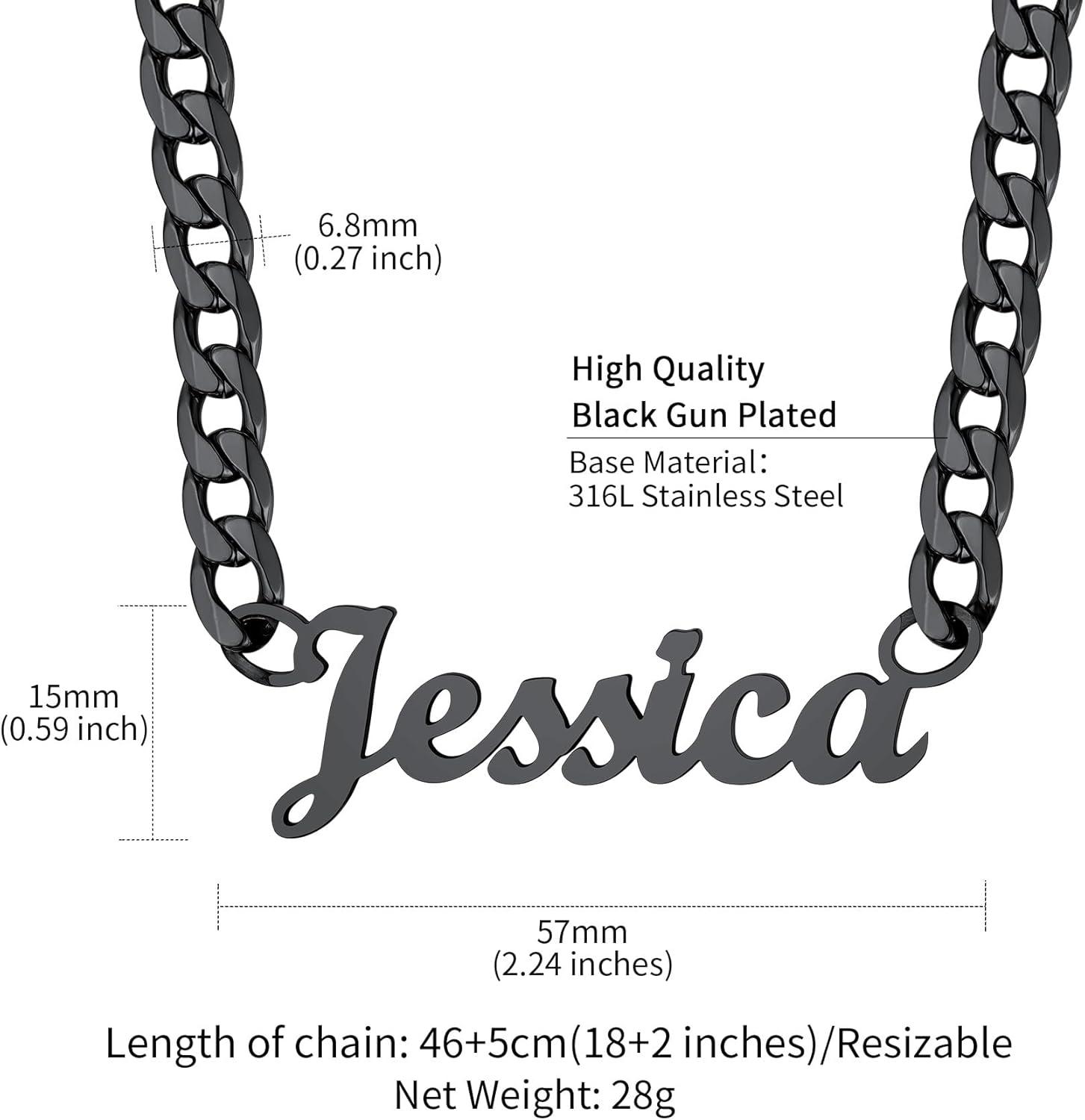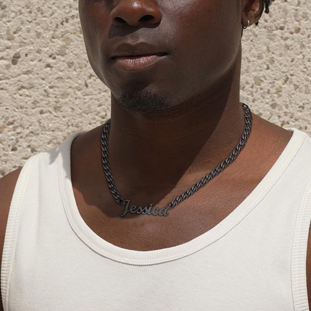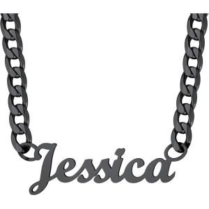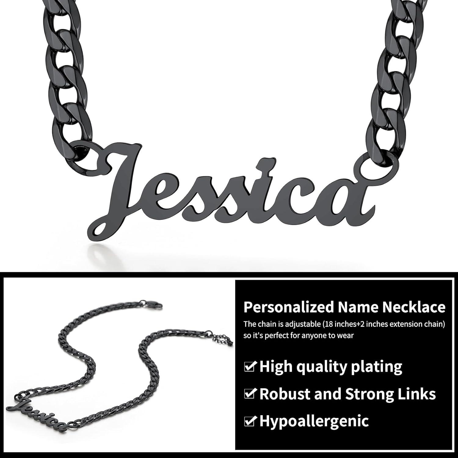 ChainsHouse Personalized Name Necklace Custom Engraved Nameplate for Men/Women, 18″+5cm Adjustable Cuban Chain, Stainless Steel/Gold/Black Plated Dainty Jewelry Gift for Birthday/Anniversary(C: Cuban Chain-Black)