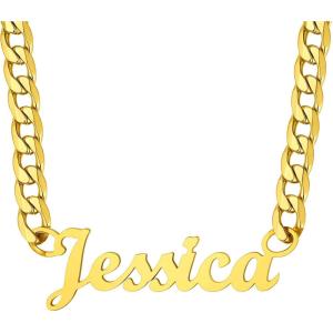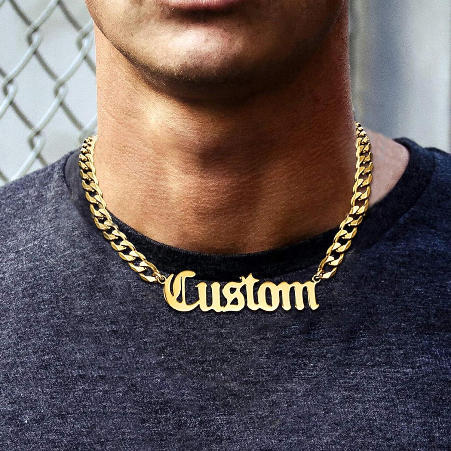 ChainsHouse Personalized Name Necklace Custom Engraved Nameplate for Men/Women, 18″+5cm Adjustable Cuban Chain, Stainless Steel/Gold/Black Plated Dainty Jewelry Gift for Birthday/Anniversary(B: Cuban Chain-Gold)