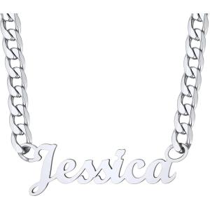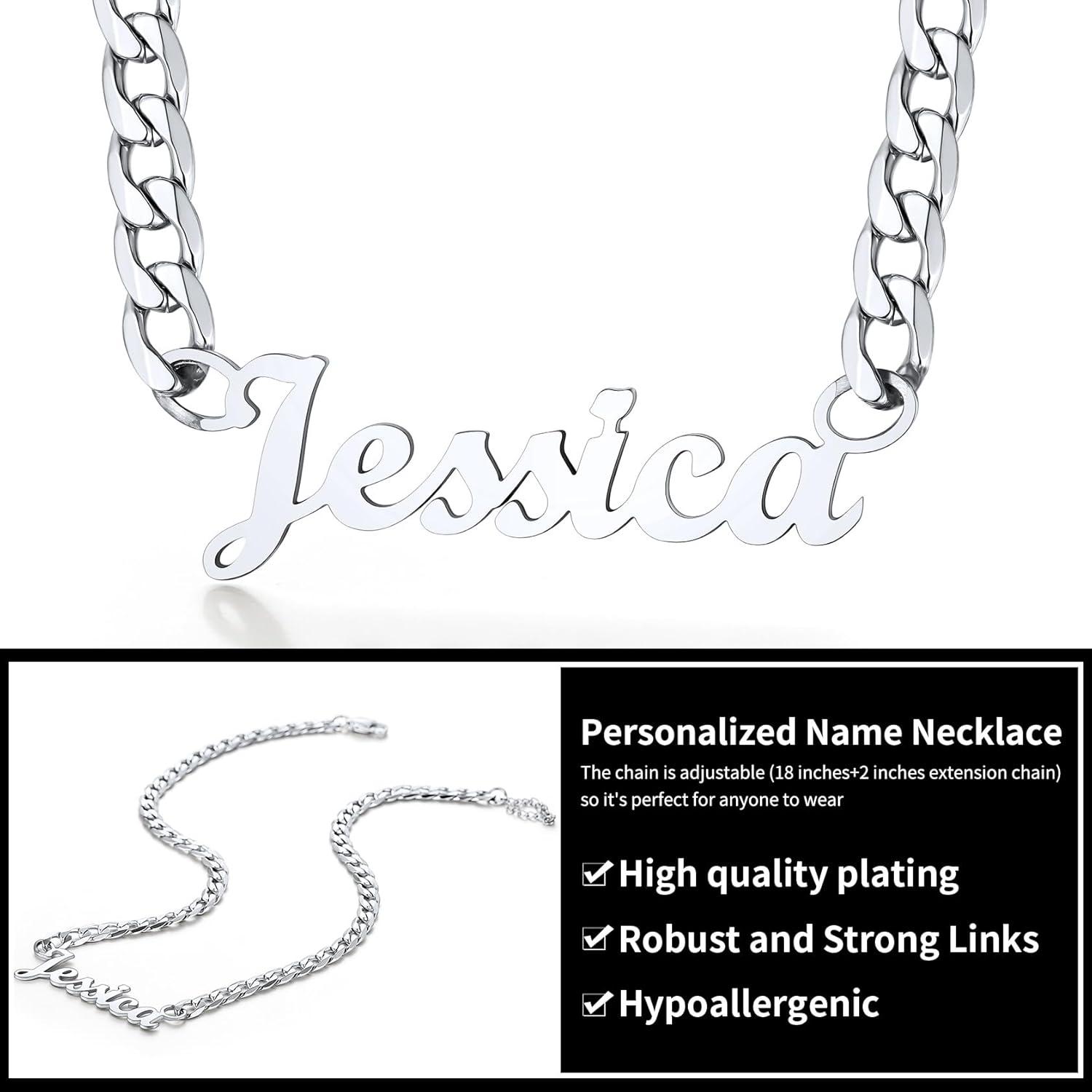 ChainsHouse Personalized Name Necklace Custom Engraved Nameplate for Men/Women, 18″+5cm Adjustable Cuban Chain, Stainless Steel/Gold/Black Plated Dainty Jewelry Gift for Birthday/Anniversary(A: Cuban Chain-Steel)