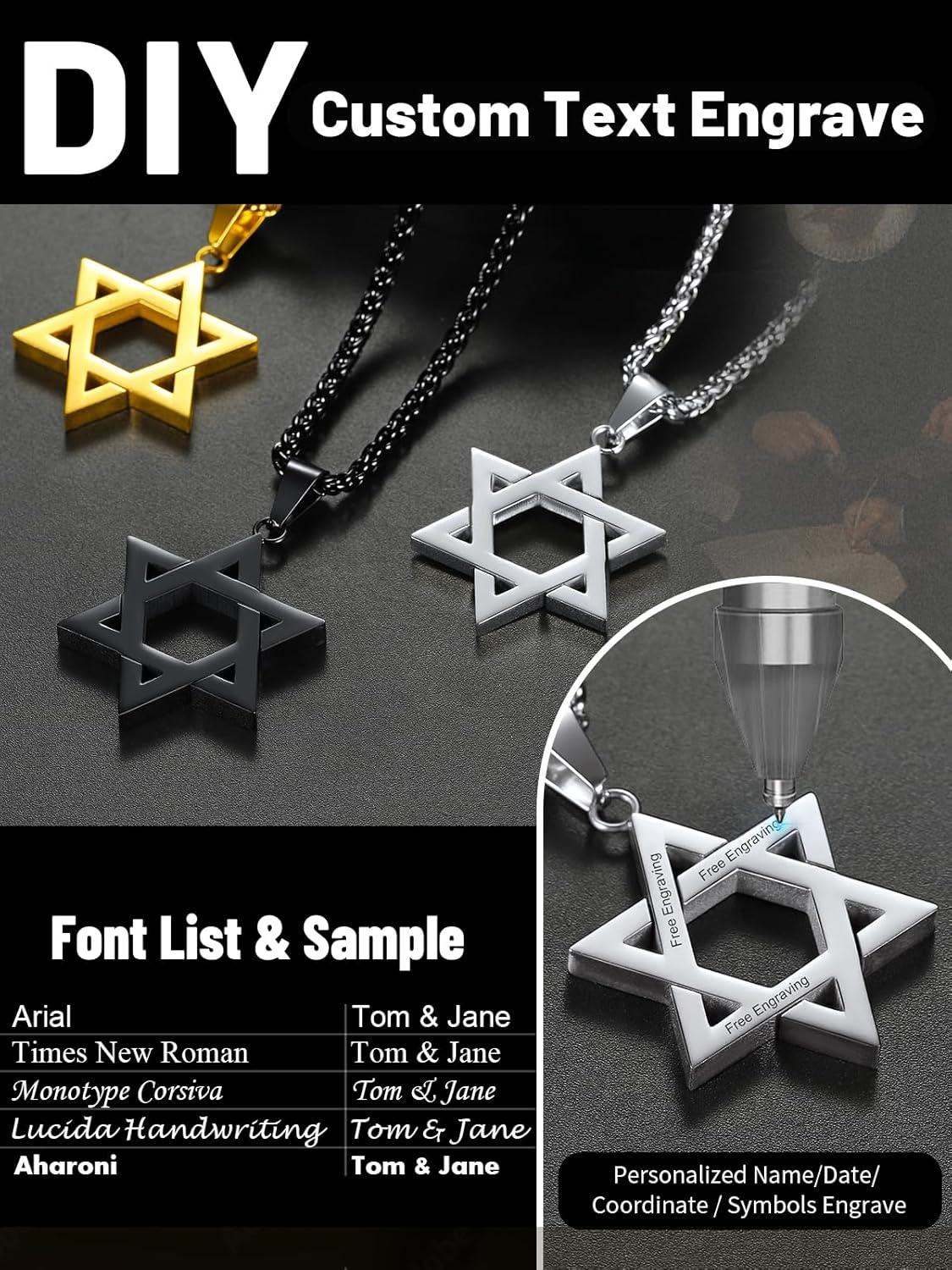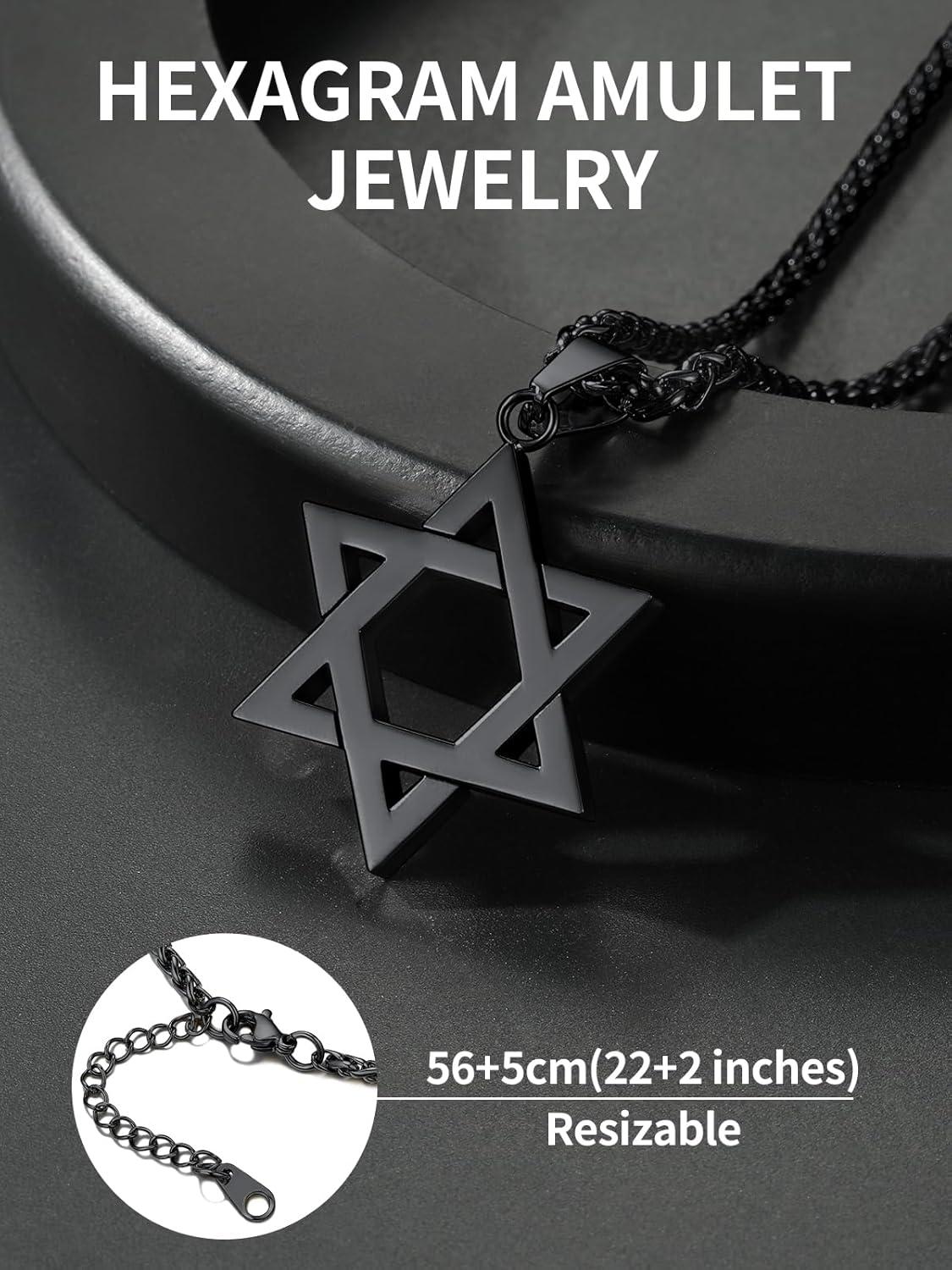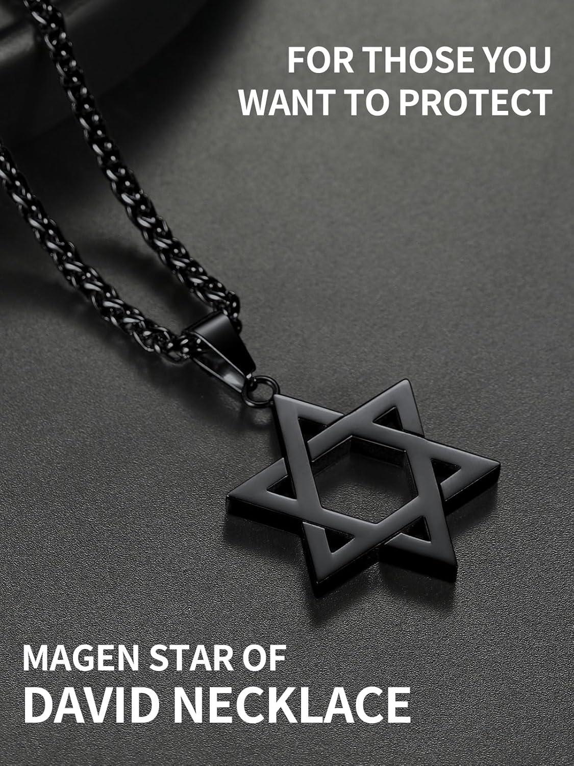 ChainsHouse Magen Star of David Necklace for Men Women, Stainless Steel/18K Gold Plated Hexagram/Dog Tag Pendant Jewish Israel Jewelry(02-Black-David Star)