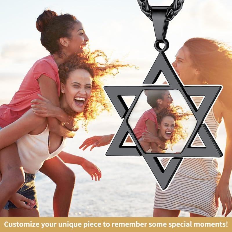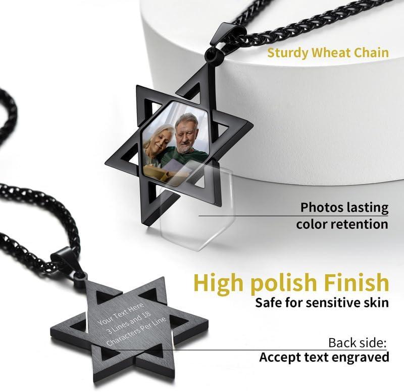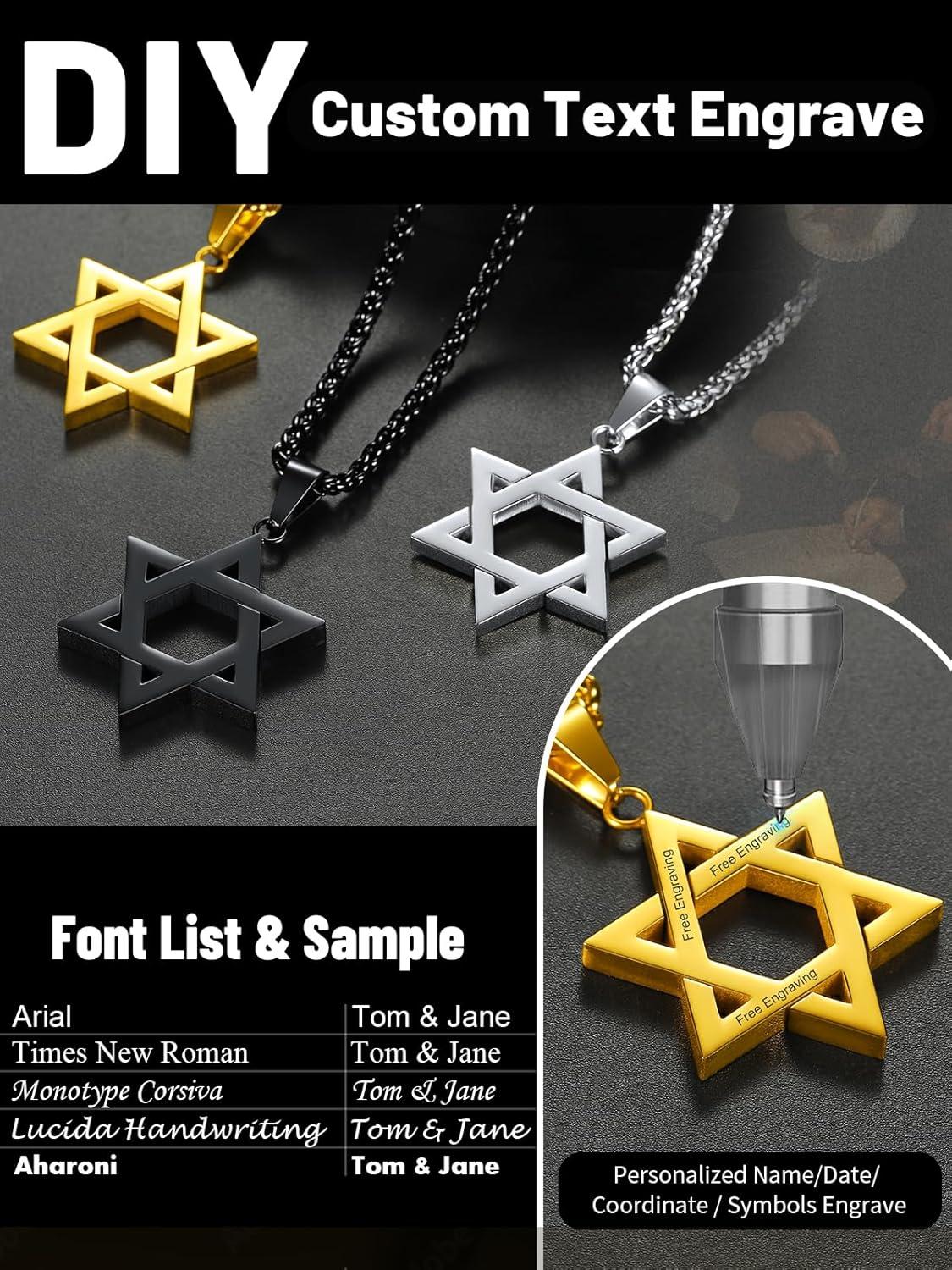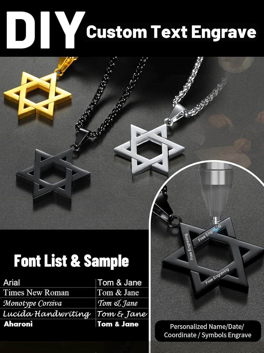 ChainsHouse Magen Star of David Necklace for Men Women, Stainless Steel/18K Gold Plated Hexagram/Dog Tag Pendant Jewish Israel Jewelry(02-Black-David Star)