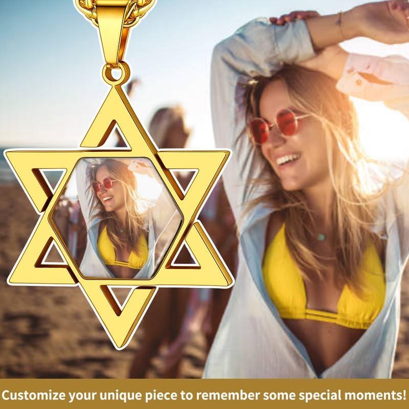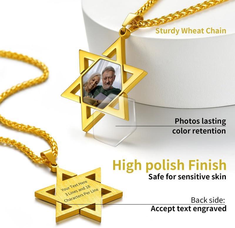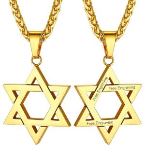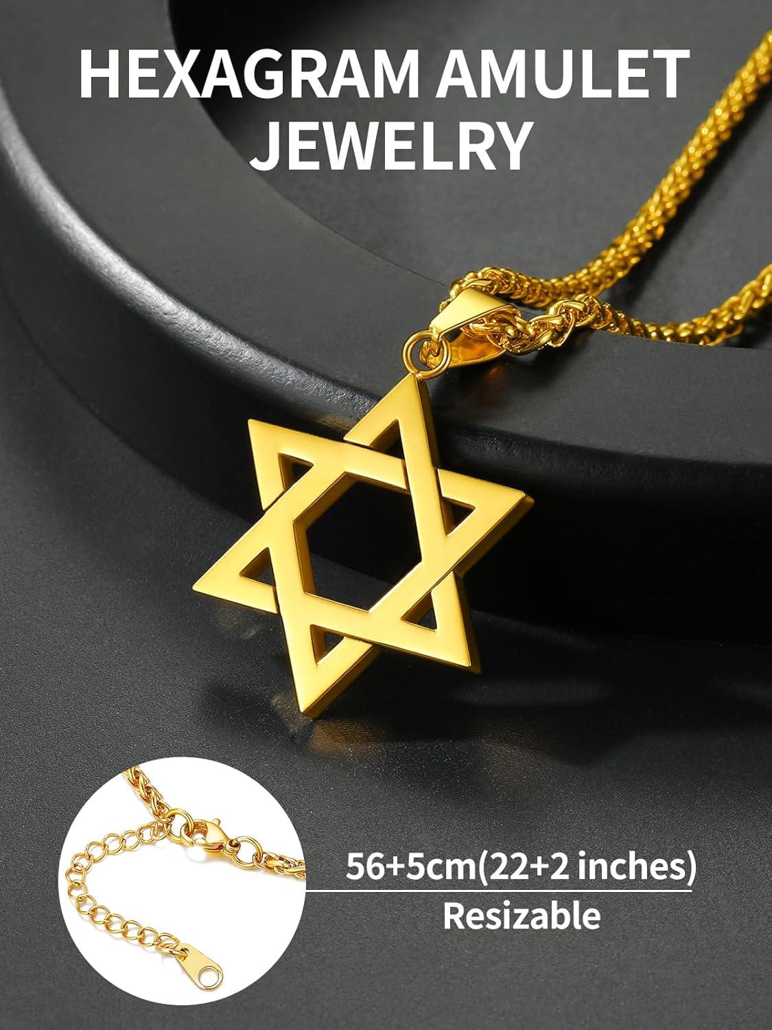 ChainsHouse Magen Star of David Necklace for Men Women, Stainless Steel/18K Gold Plated Hexagram/Dog Tag Pendant Jewish Israel Jewelry(02-Gold-David Star)