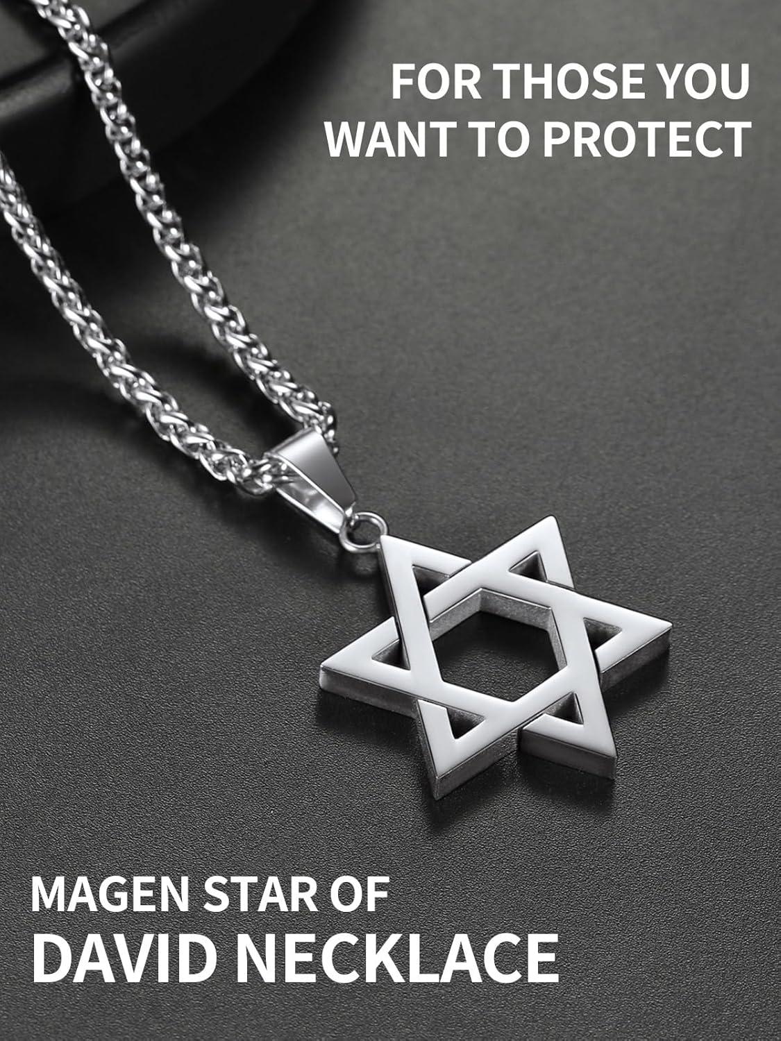 ChainsHouse Magen Star of David Necklace for Men Women, Stainless Steel/18K Gold Plated Hexagram/Dog Tag Pendant Jewish Israel Jewelry(02-Steel-David Star)