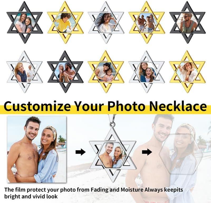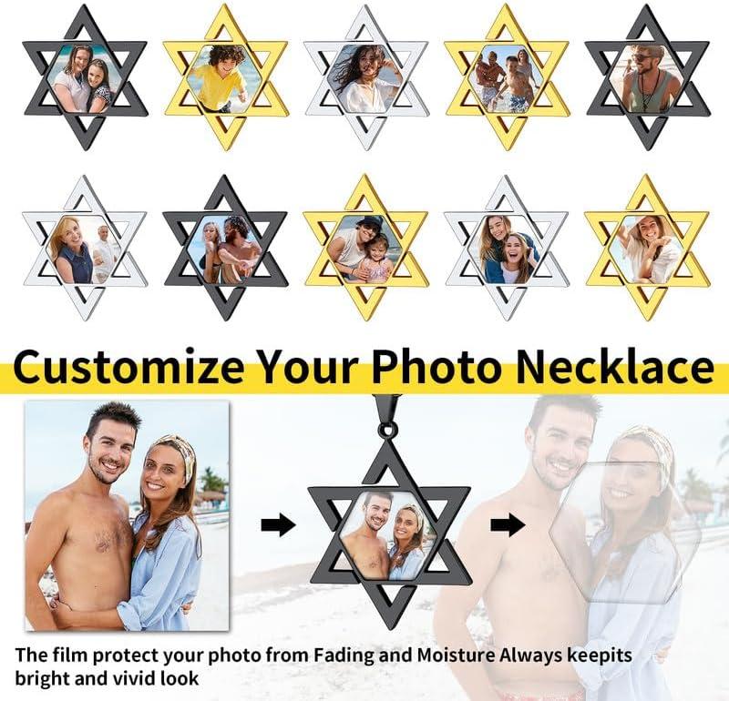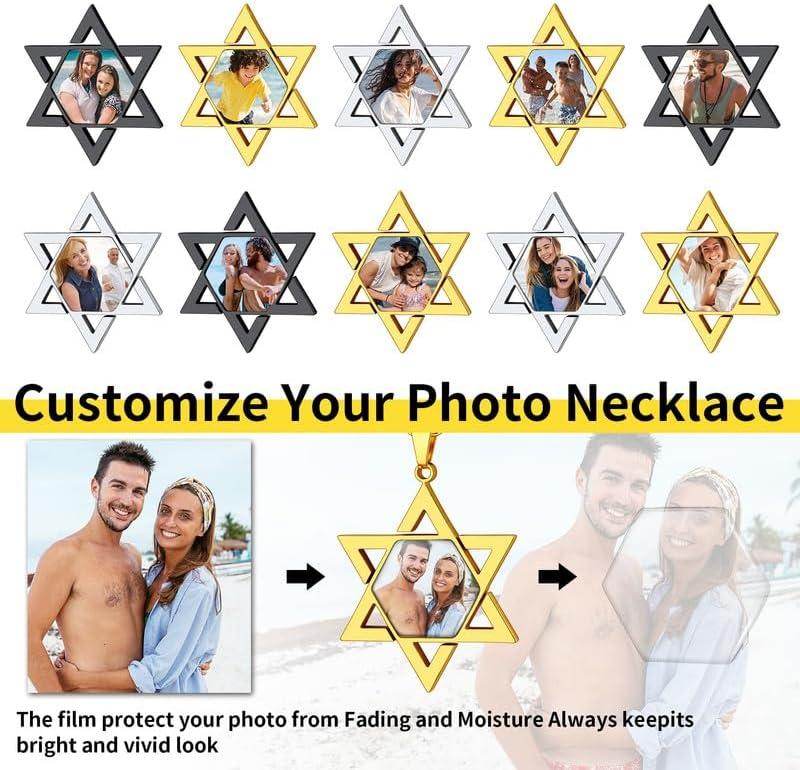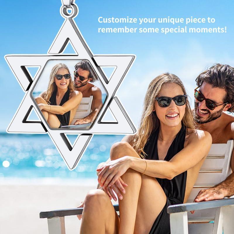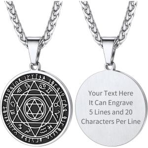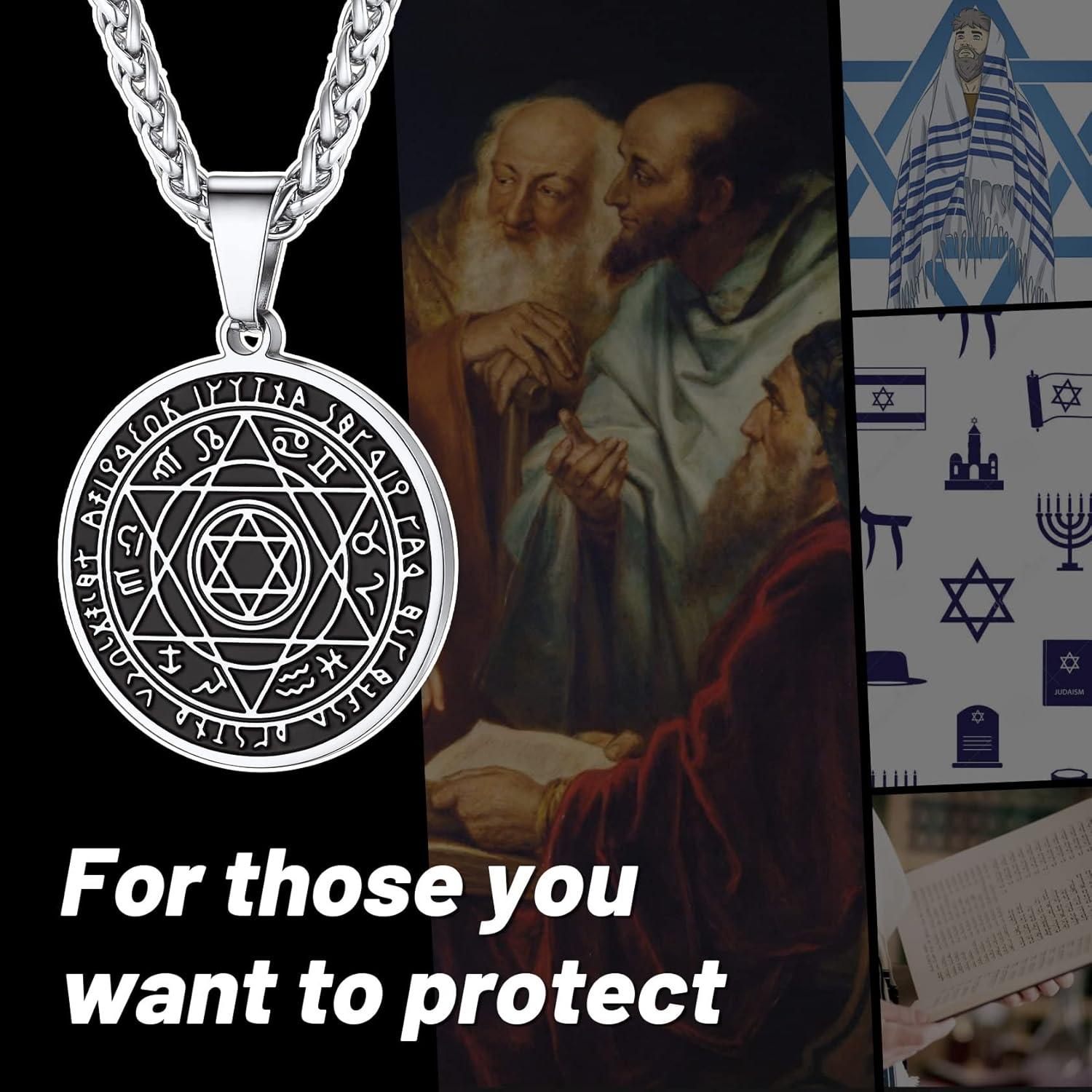 ChainsHouse Magen Star of David Necklace for Men Women, Stainless Steel/18K Gold Plated Hexagram/Dog Tag Pendant Jewish Israel Jewelry(03-Steel-Round Star)