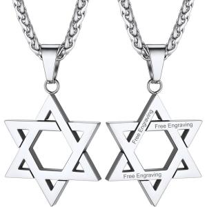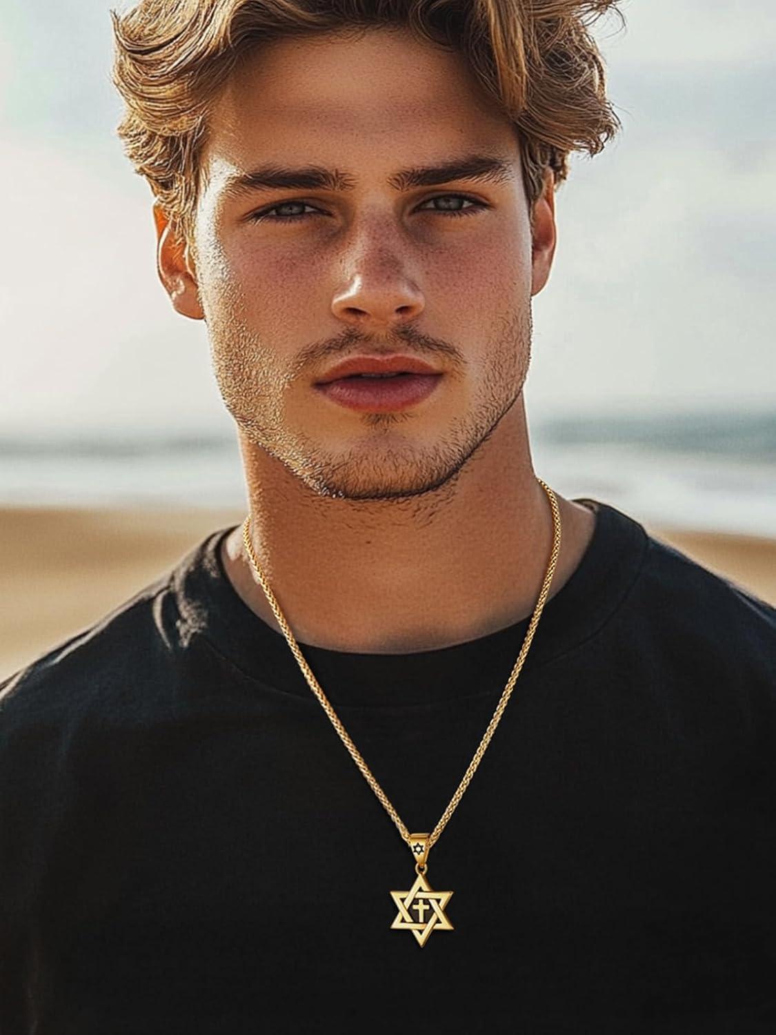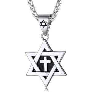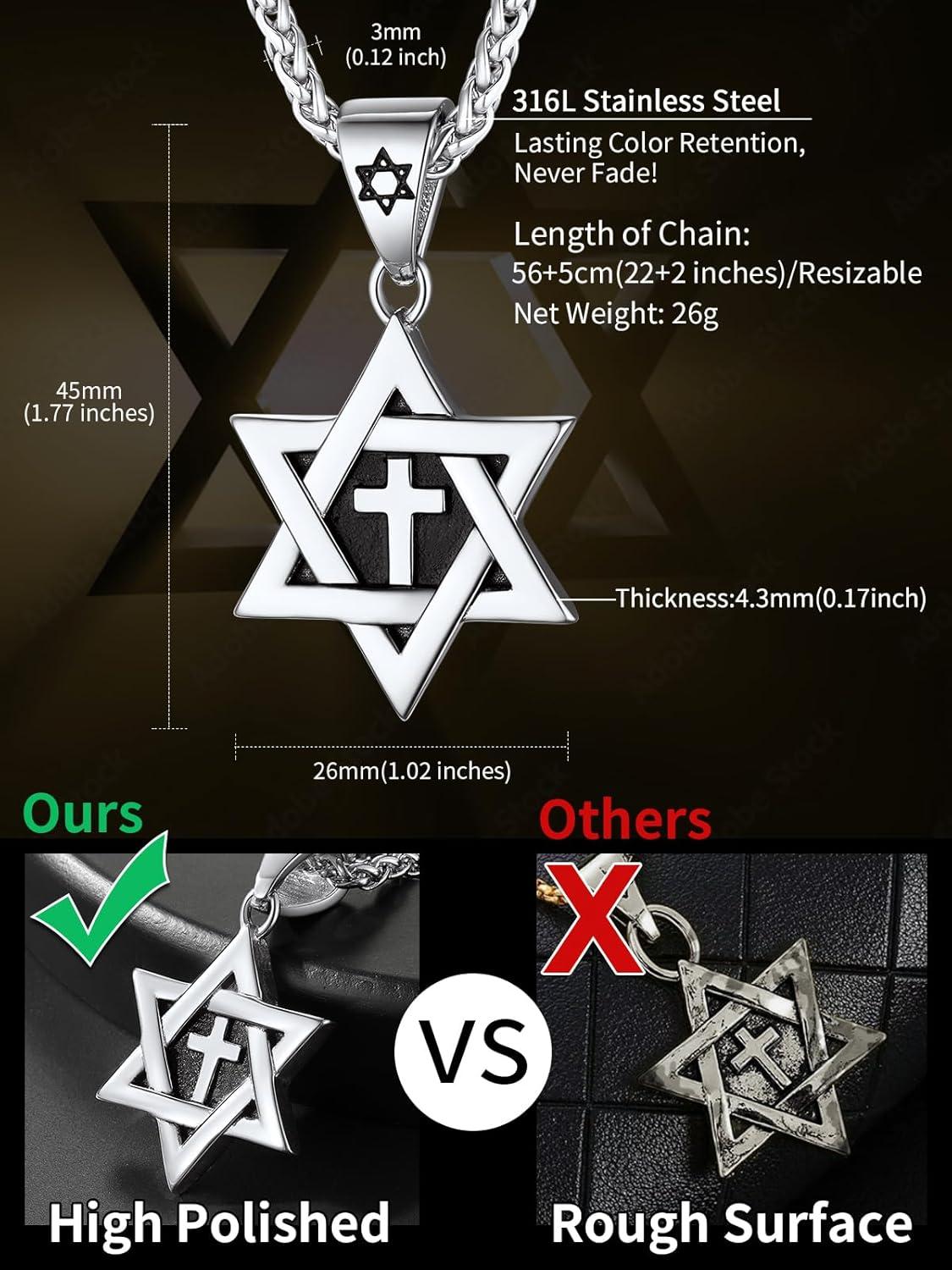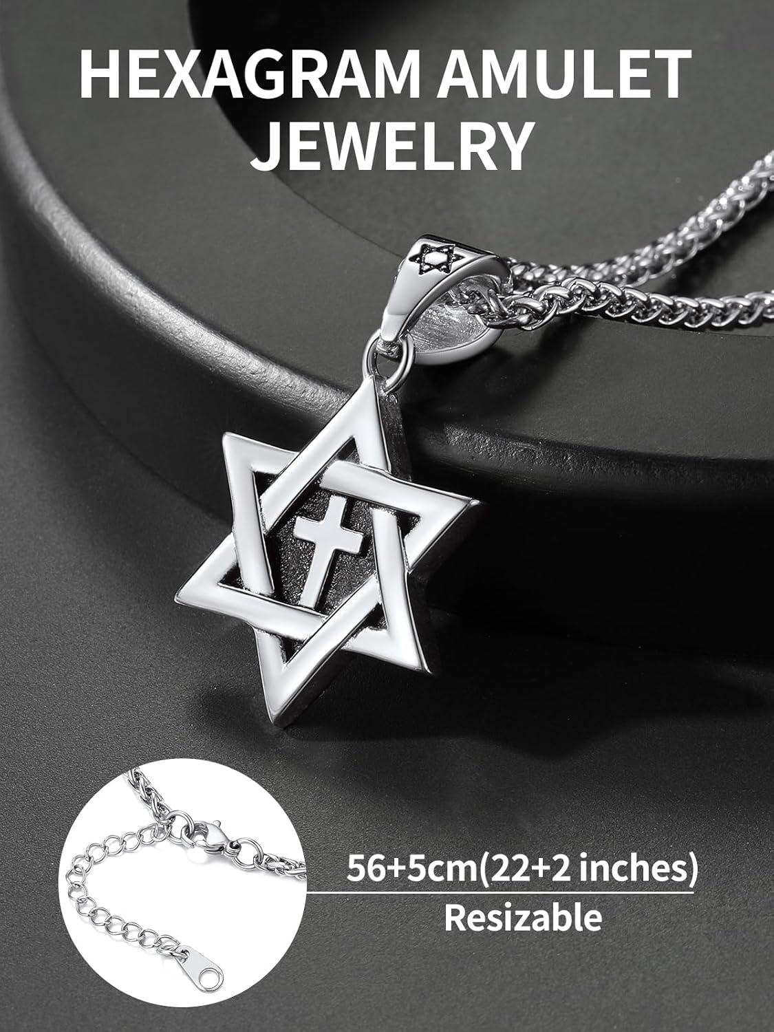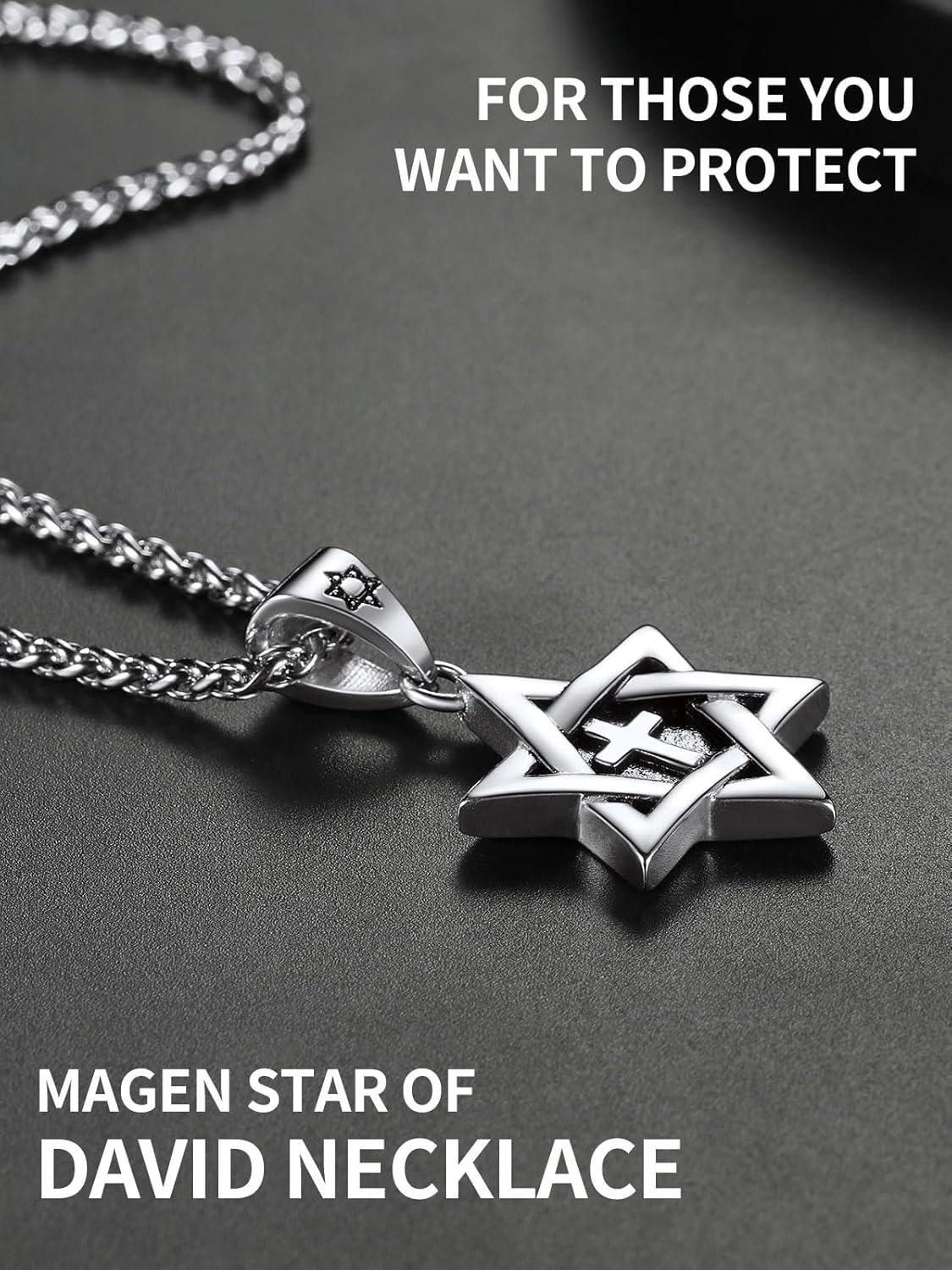 ChainsHouse Magen Star of David Necklace for Men Women, Stainless Steel/18K Gold Plated Hexagram/Dog Tag Pendant Jewish Israel Jewelry(02-Steel-Cross Star)