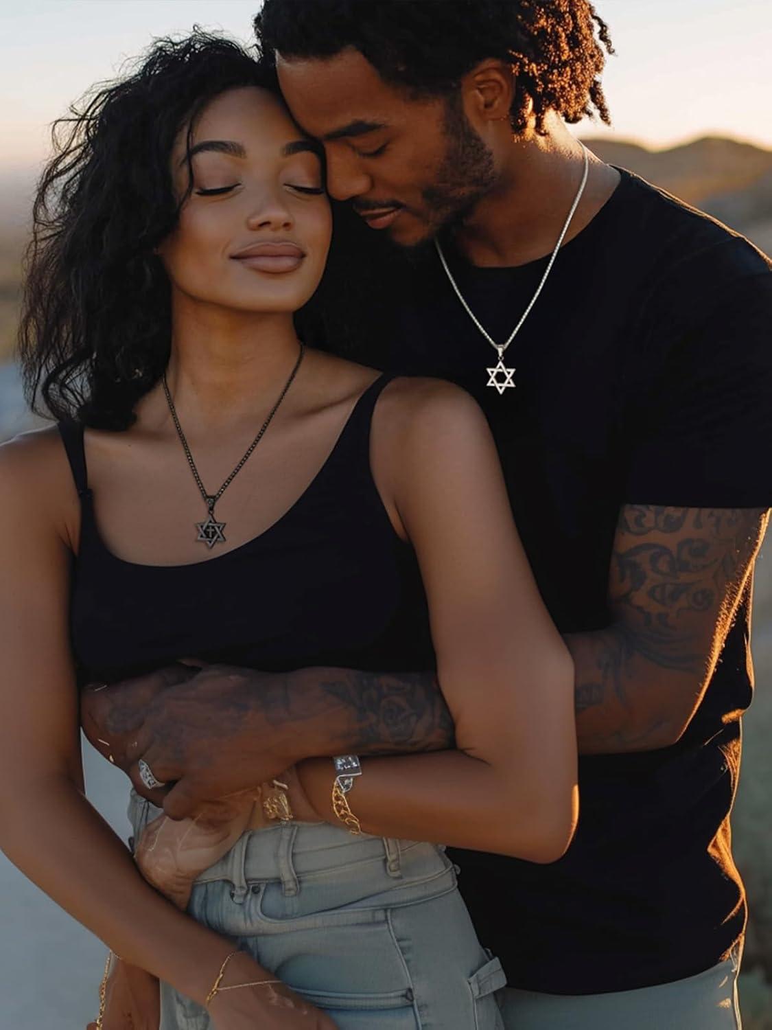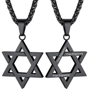 ChainsHouse Magen Star of David Necklace for Men Women, Stainless Steel/18K Gold Plated Hexagram/Dog Tag Pendant Jewish Israel Jewelry(01-Black-David Star)