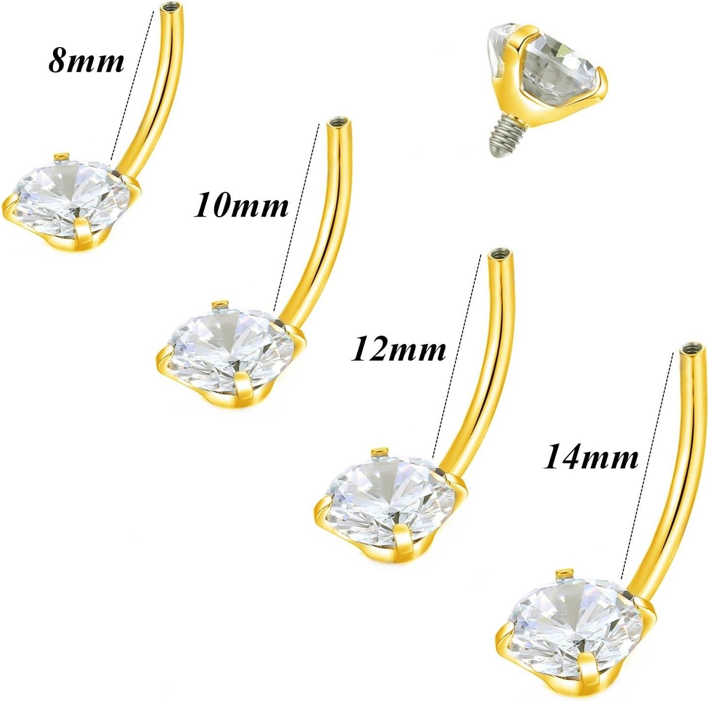 ORANGELOVE G23 Titanium 14G Belly Button Rings Cubic Zirconia Internally Threaded CZ Belly Ring Navel Barbell Stud Body Piercing Jewelry 14 Gauge 8mm 10mm 12mm 14mm(14G/Bar Length:14mm/Gold)