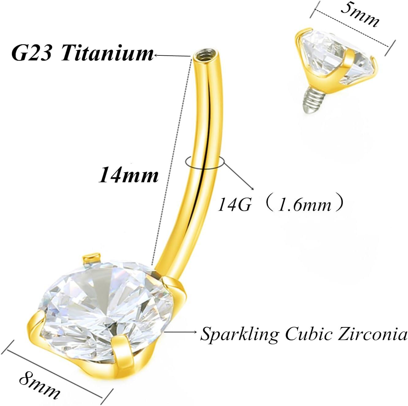 ORANGELOVE G23 Titanium 14G Belly Button Rings Cubic Zirconia Internally Threaded CZ Belly Ring Navel Barbell Stud Body Piercing Jewelry 14 Gauge 8mm 10mm 12mm 14mm(14G/Bar Length:8mm/Gold)