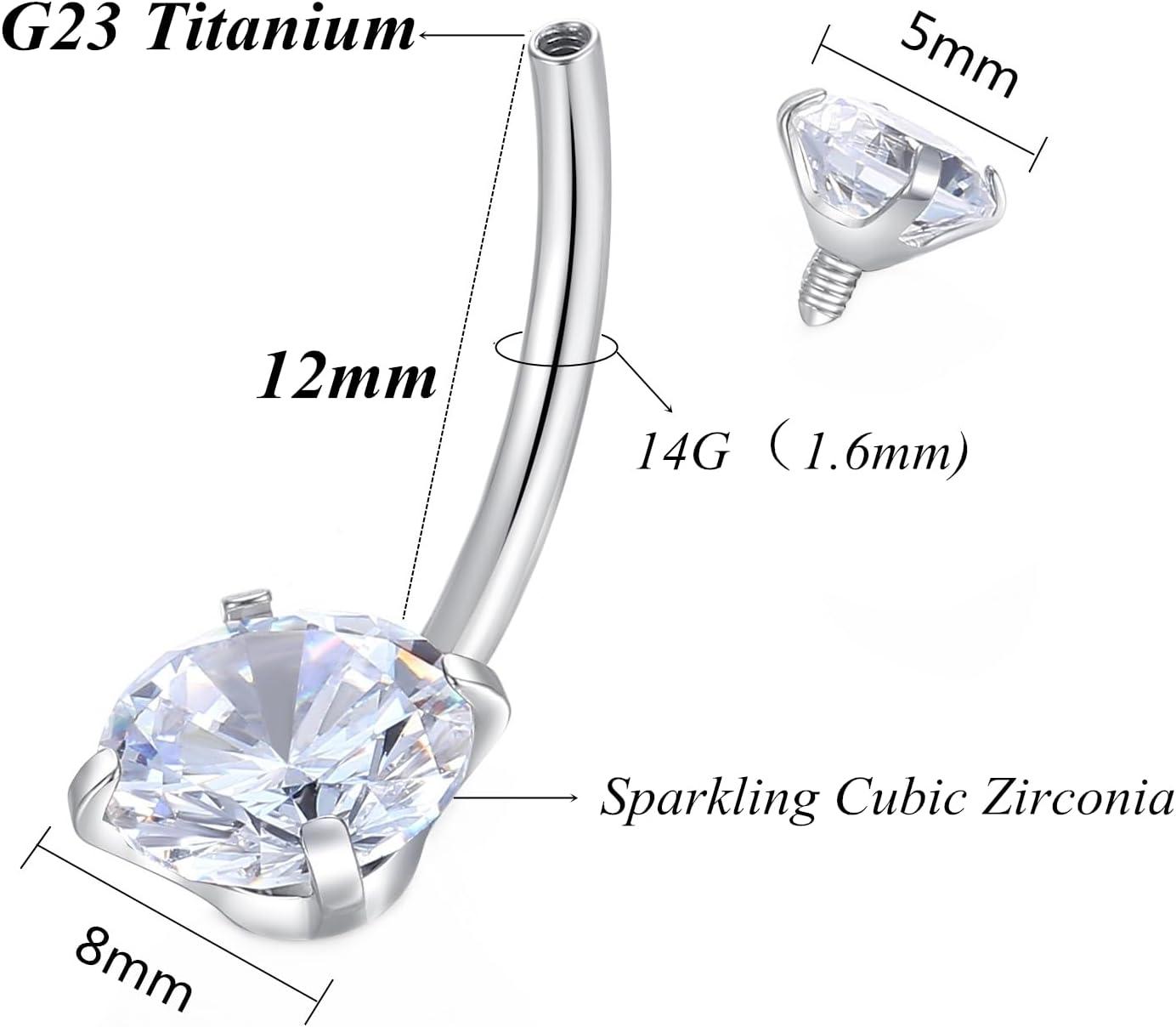 ORANGELOVE G23 Titanium 14G Belly Button Rings Cubic Zirconia Internally Threaded CZ Belly Ring Navel Barbell Stud Body Piercing Jewelry 14 Gauge 8mm 10mm 12mm 14mm(14G/Bar Length:8mm/Silver)
