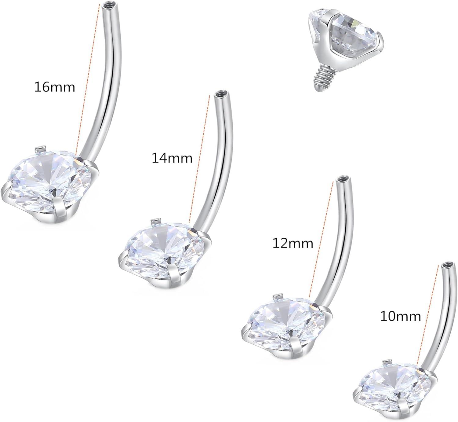 ORANGELOVE G23 Titanium 14G Belly Button Rings Cubic Zirconia Internally Threaded CZ Belly Ring Navel Barbell Stud Body Piercing Jewelry 14 Gauge 8mm 10mm 12mm 14mm(14G/Bar Length:14mm/Silver)