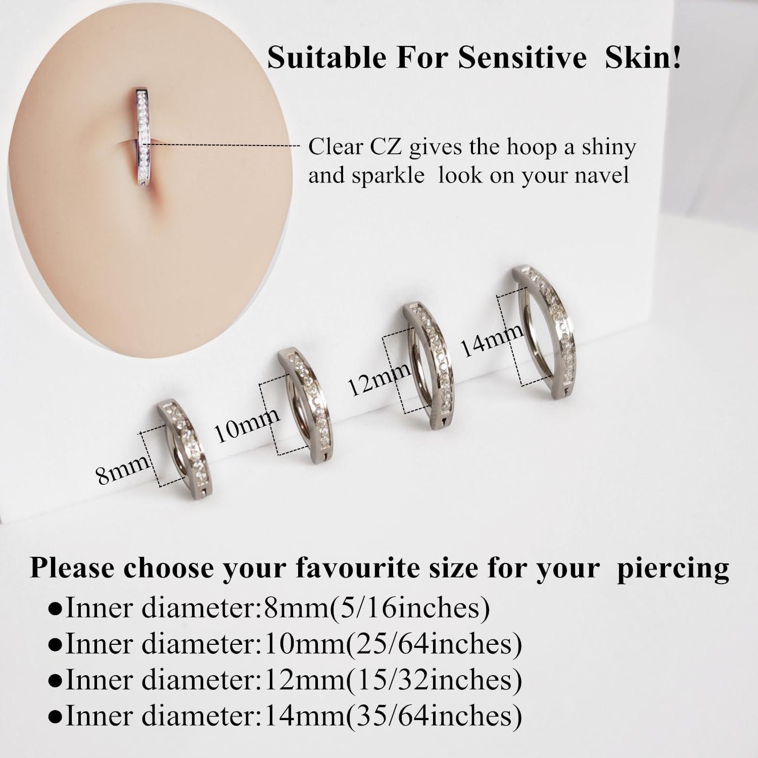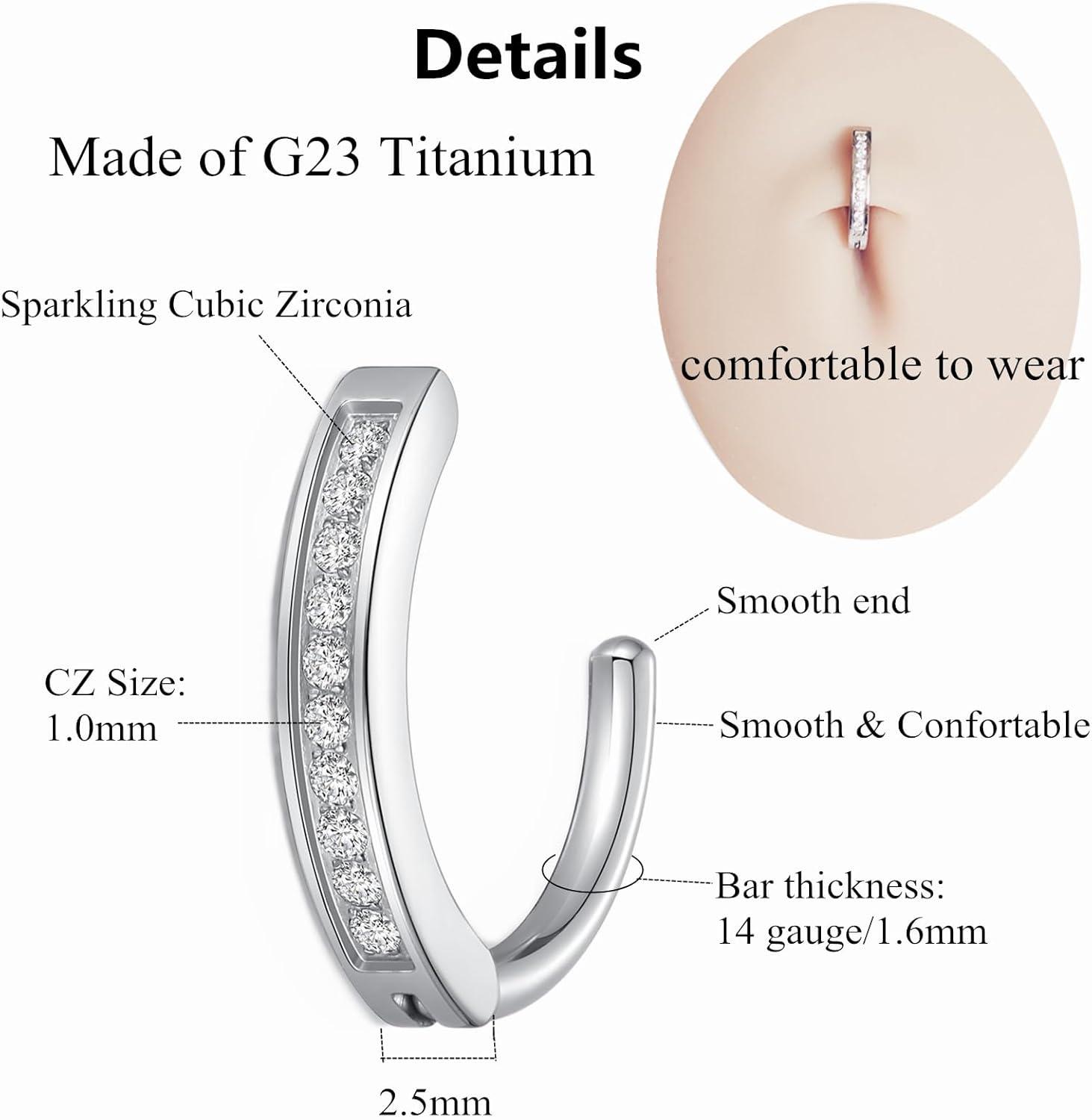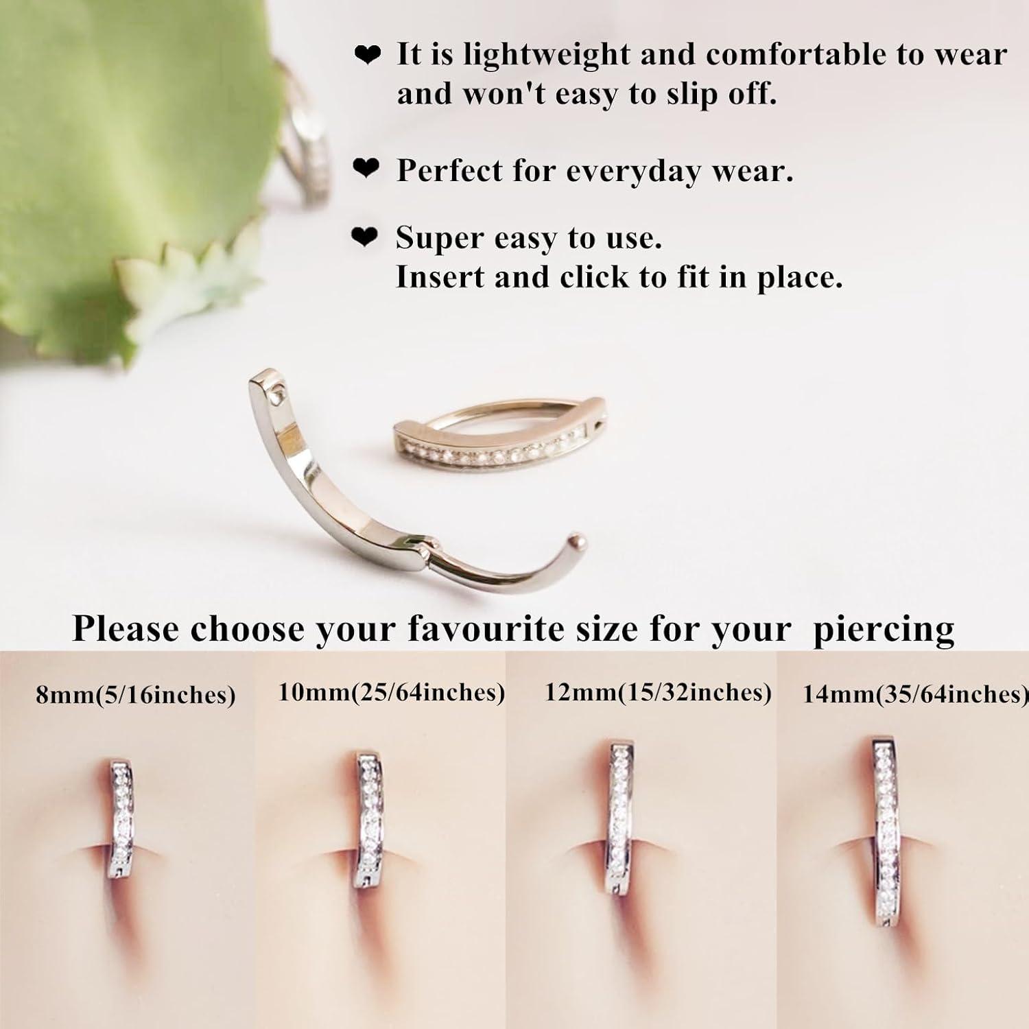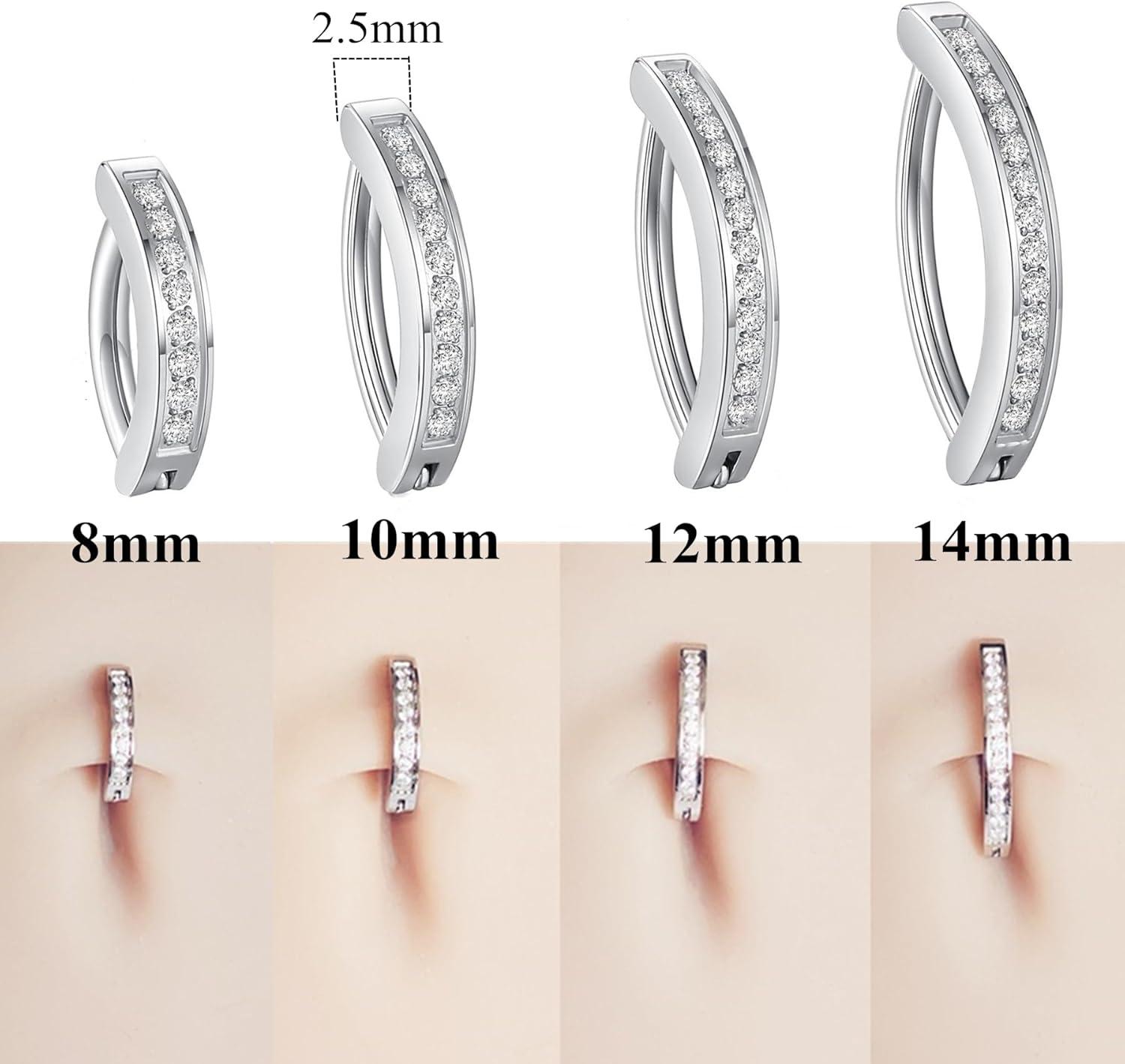 ORANGELOVE G23 Titanium 14G Belly Button Rings for Women Hinged Hoop Clicker Belly Ring Reverse Curved Navel Ring Floating Navel Barbell Piercing Jewelry 14 Gauge 8mm 10mm 12mm 14mm(CZ Silver)