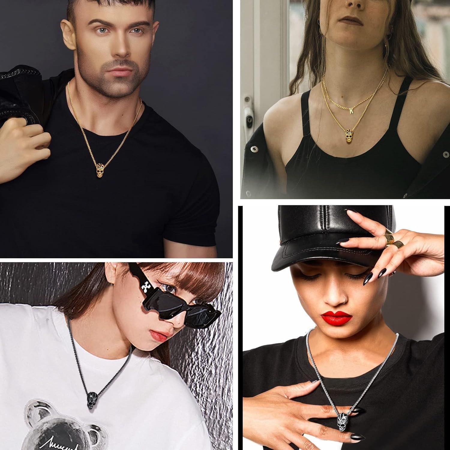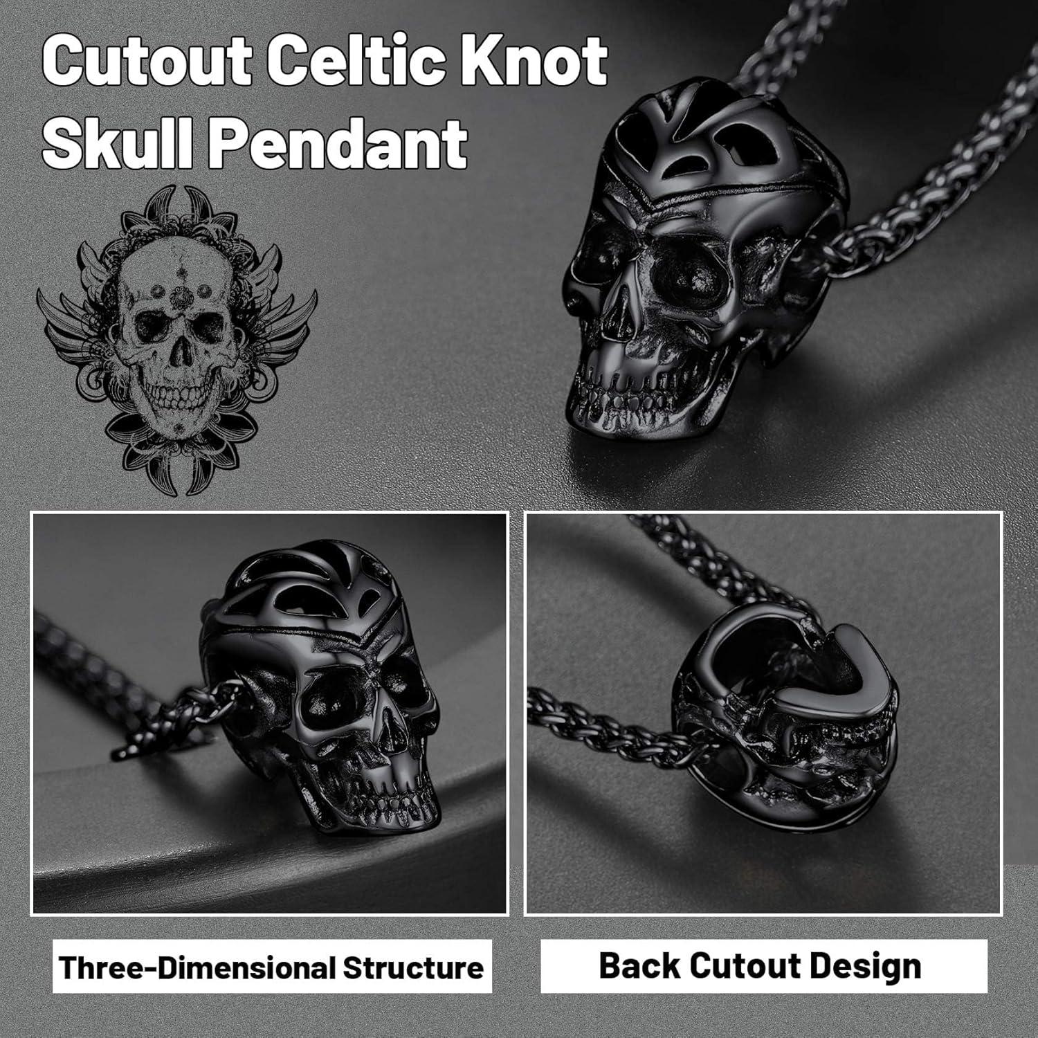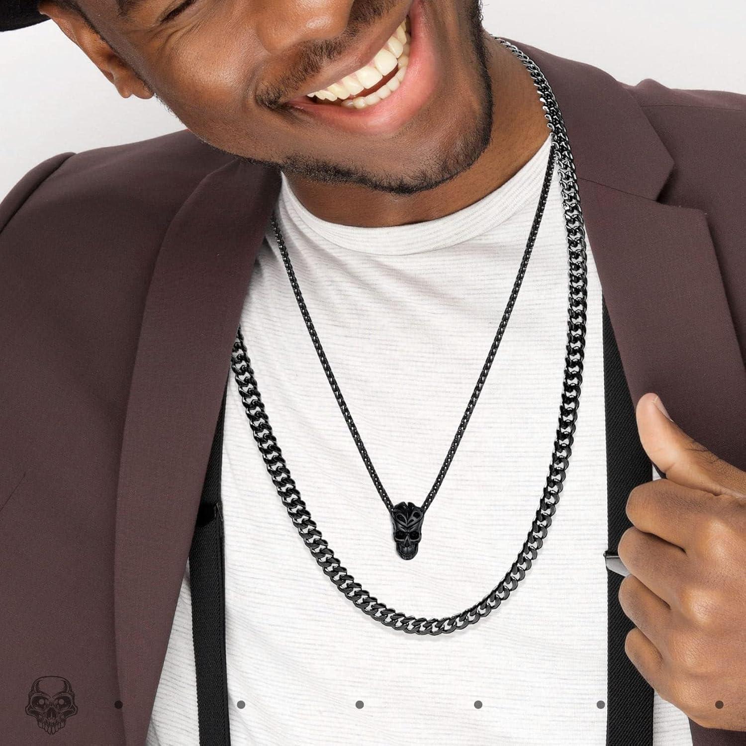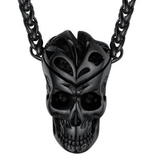 ChainsHouse Skull Necklace for Men, Retro Gothic Punk Jewelry Biker Necklace for Men Women Free Engraving Stainless Steel Dog Tag Pendant Necklace,with Gift Box(04. Skull Head-Black)