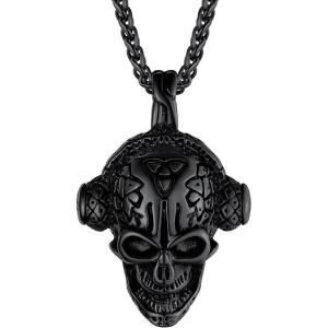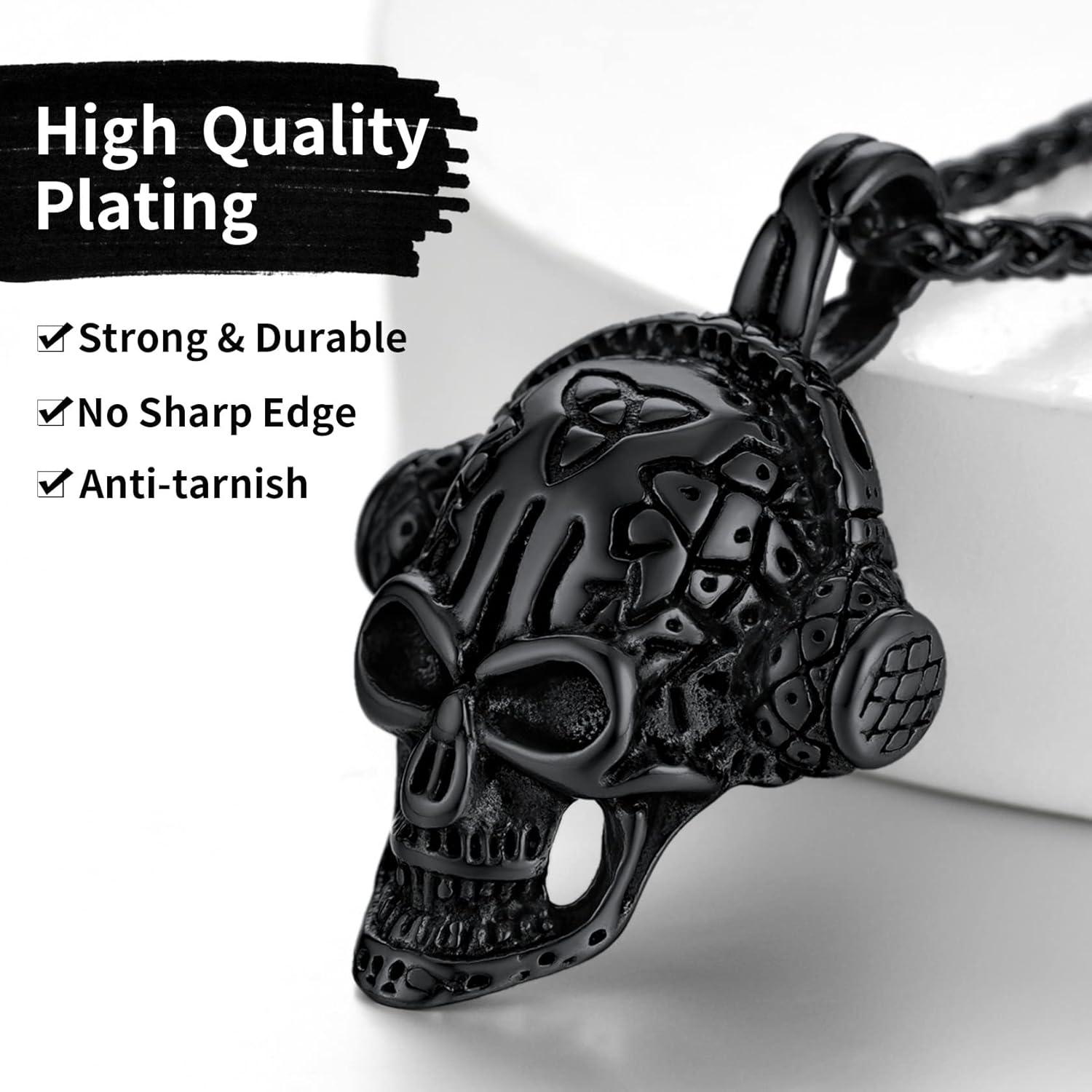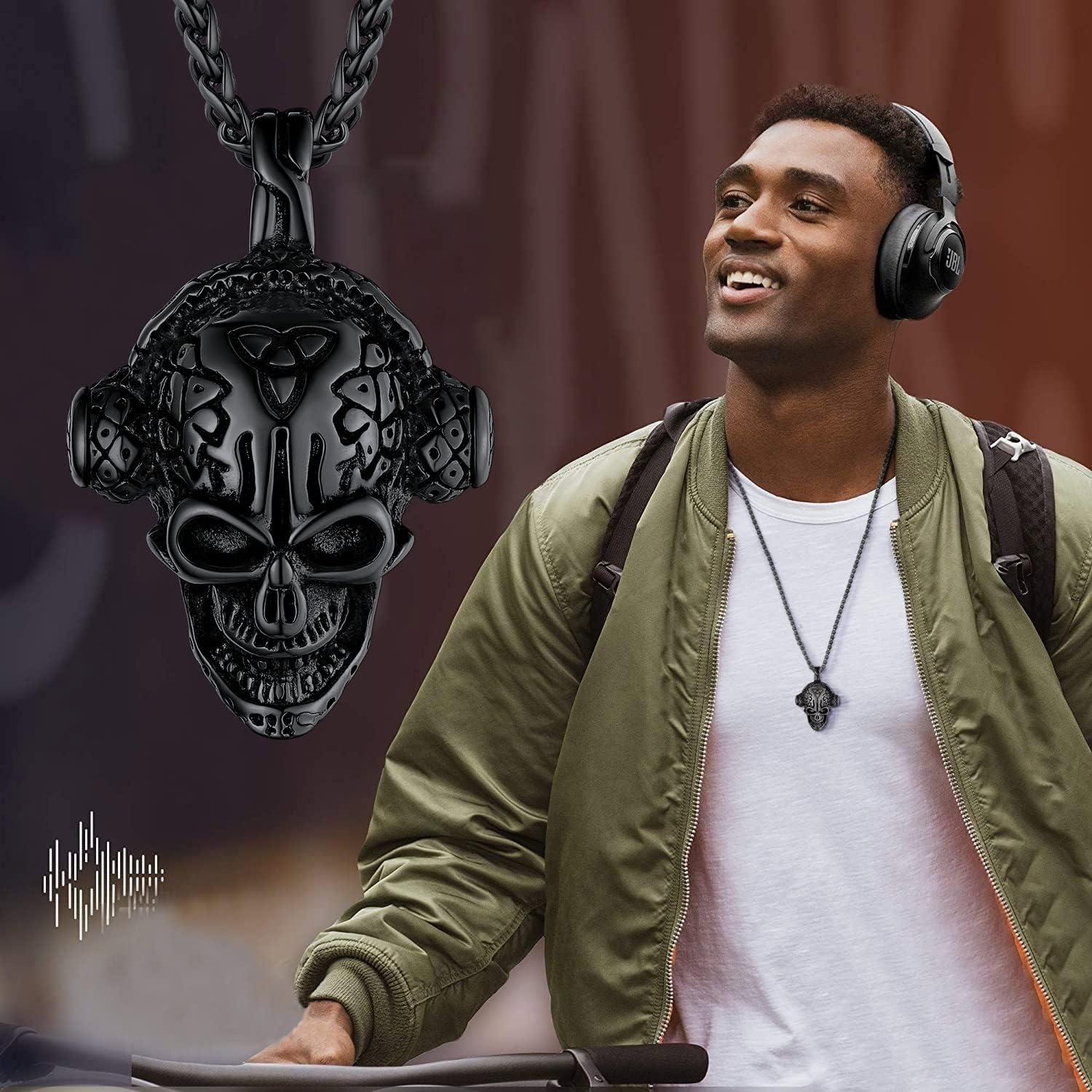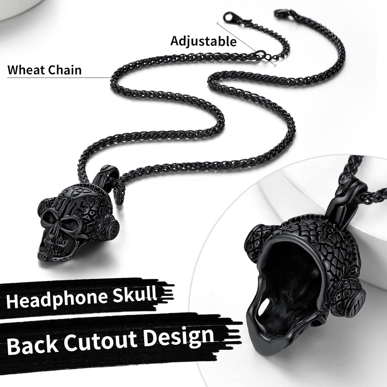 ChainsHouse Skull Necklace for Men, Retro Gothic Punk Jewelry Biker Necklace for Men Women Free Engraving Stainless Steel Dog Tag Pendant Necklace,with Gift Box(05. Earphone-Black)