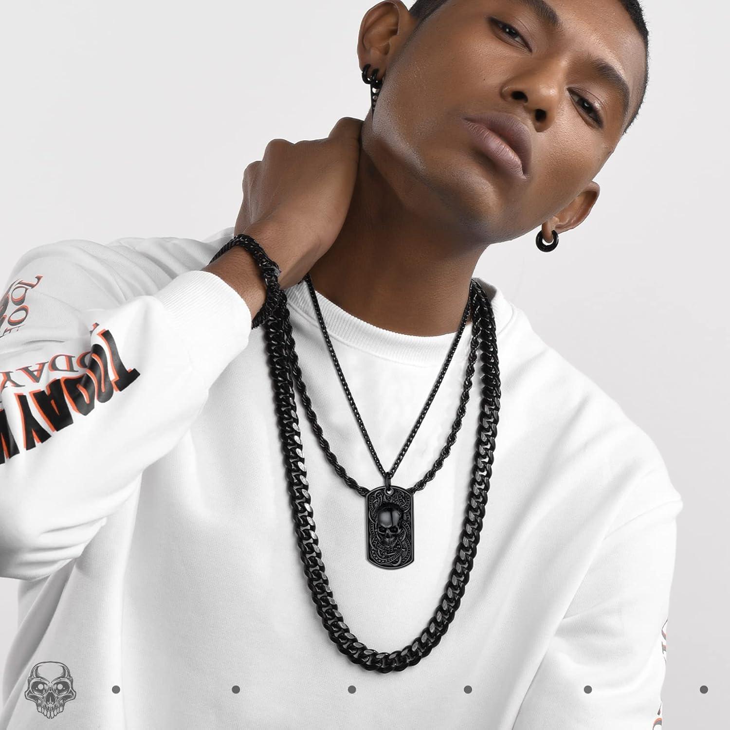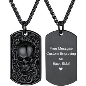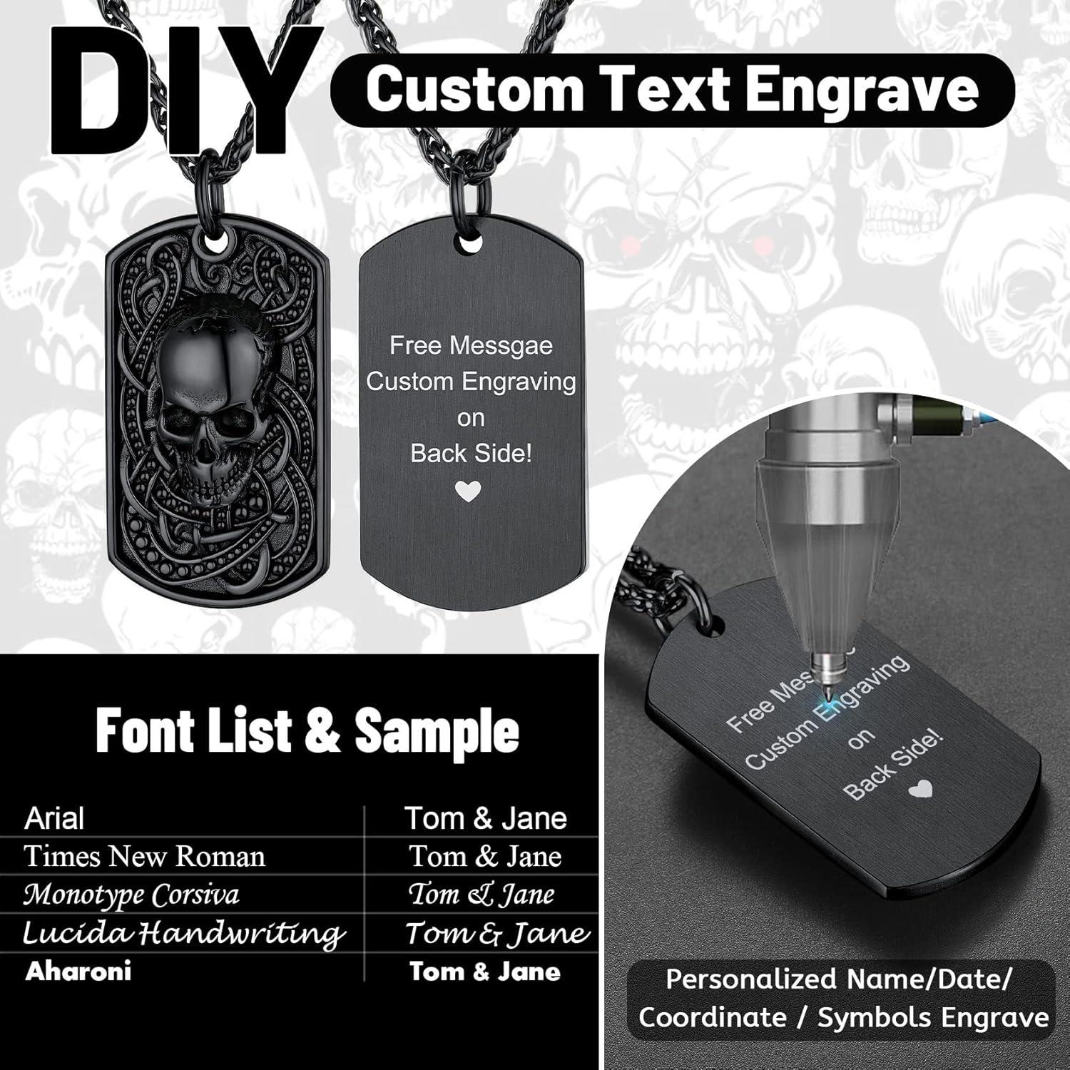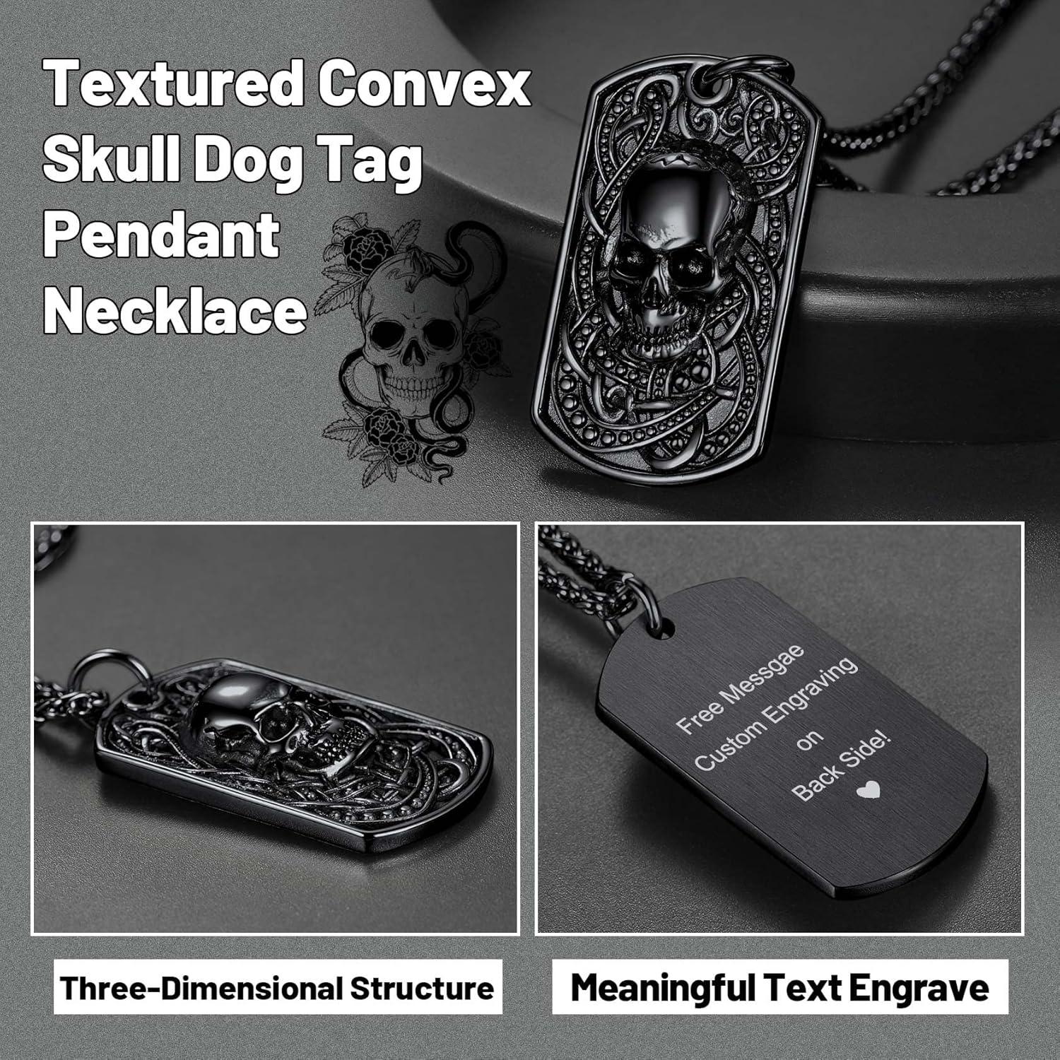 ChainsHouse Skull Necklace for Men, Retro Gothic Punk Jewelry Biker Necklace for Men Women Free Engraving Stainless Steel Dog Tag Pendant Necklace,with Gift Box(03. Dogtag-Black)