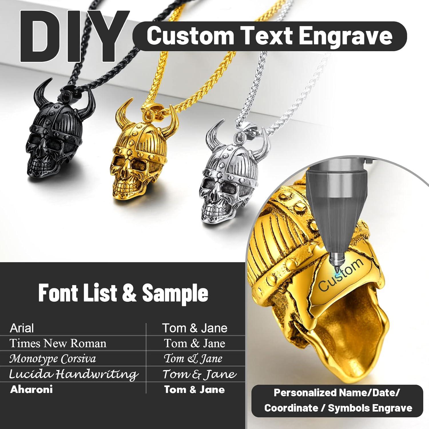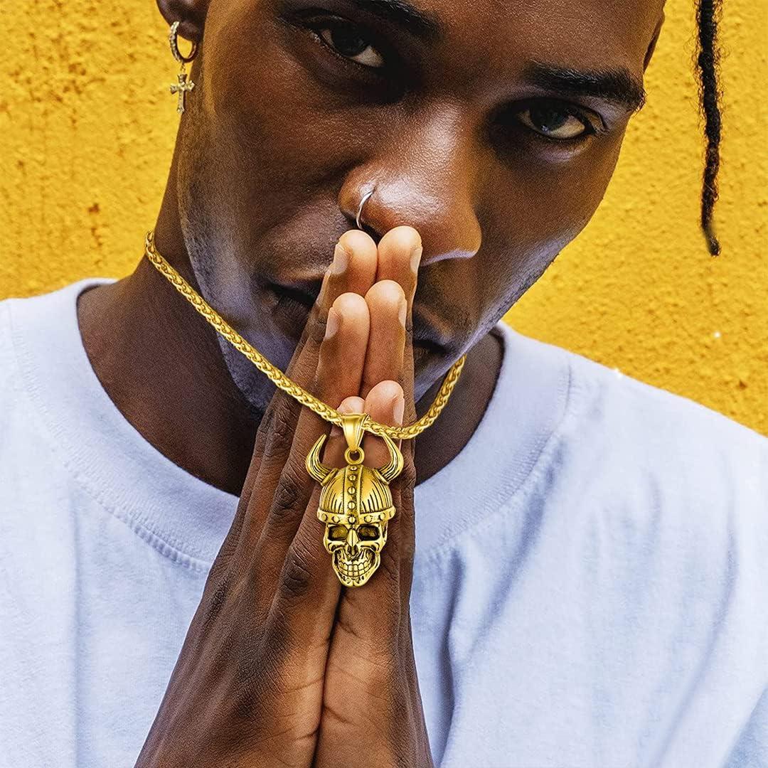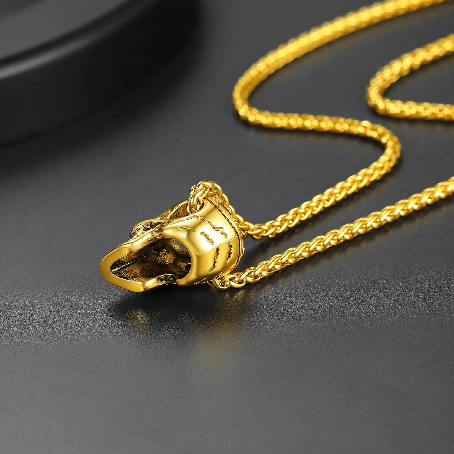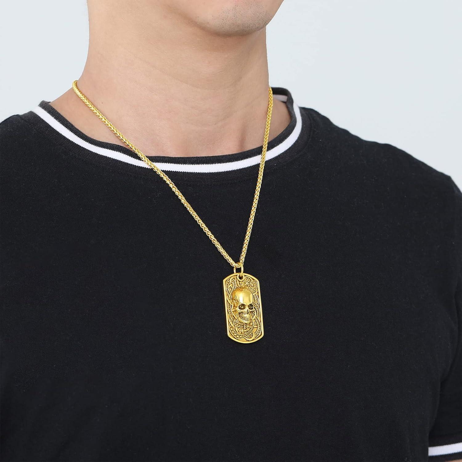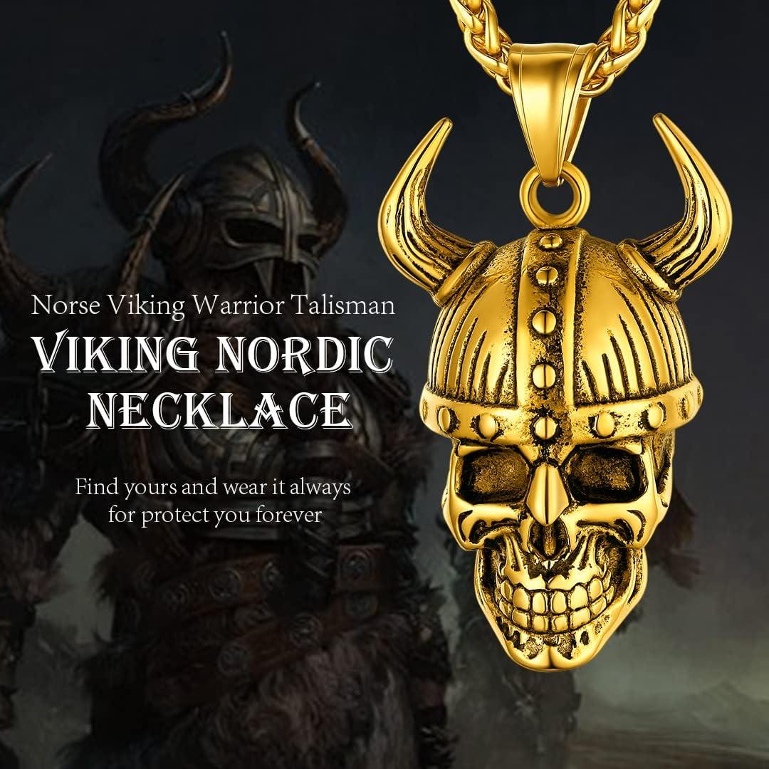 ChainsHouse Skull Necklace for Men, Retro Gothic Punk Jewelry Biker Necklace for Men Women Free Engraving Stainless Steel Dog Tag Pendant Necklace,with Gift Box(06. Odin Helmet-Gold)