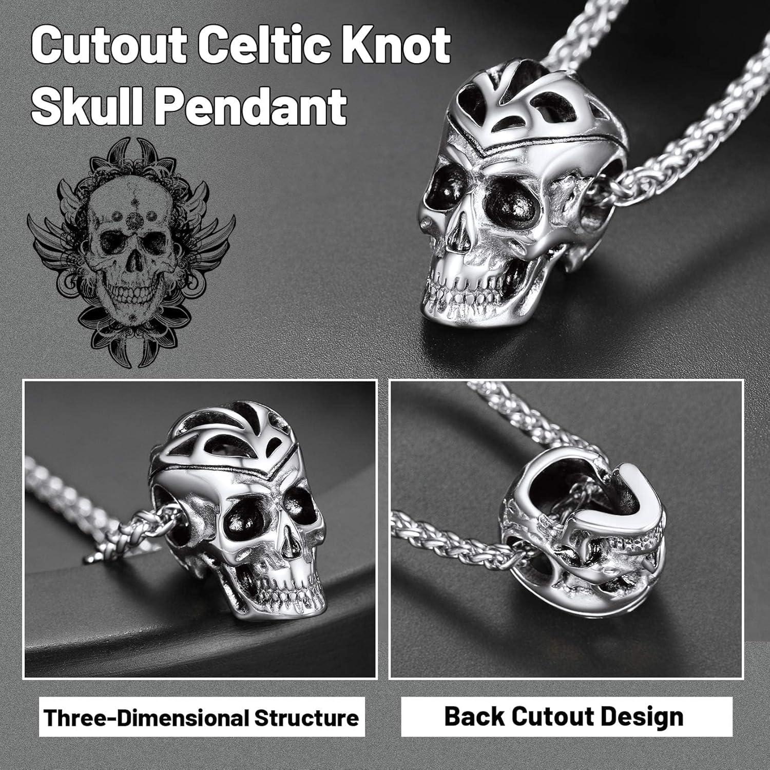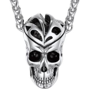 ChainsHouse Skull Necklace for Men, Retro Gothic Punk Jewelry Biker Necklace for Men Women Free Engraving Stainless Steel Dog Tag Pendant Necklace,with Gift Box(04. Skull Head-Steel)