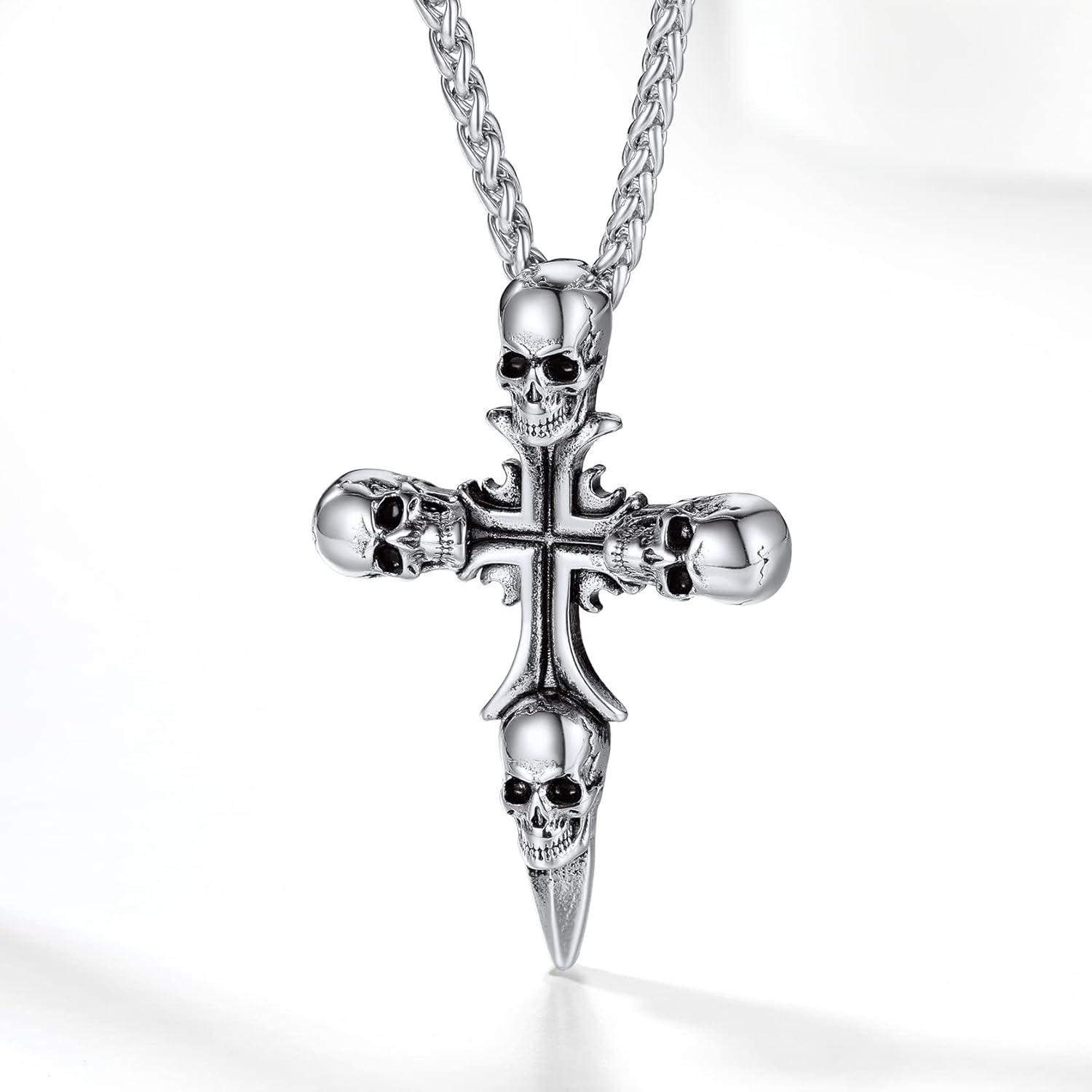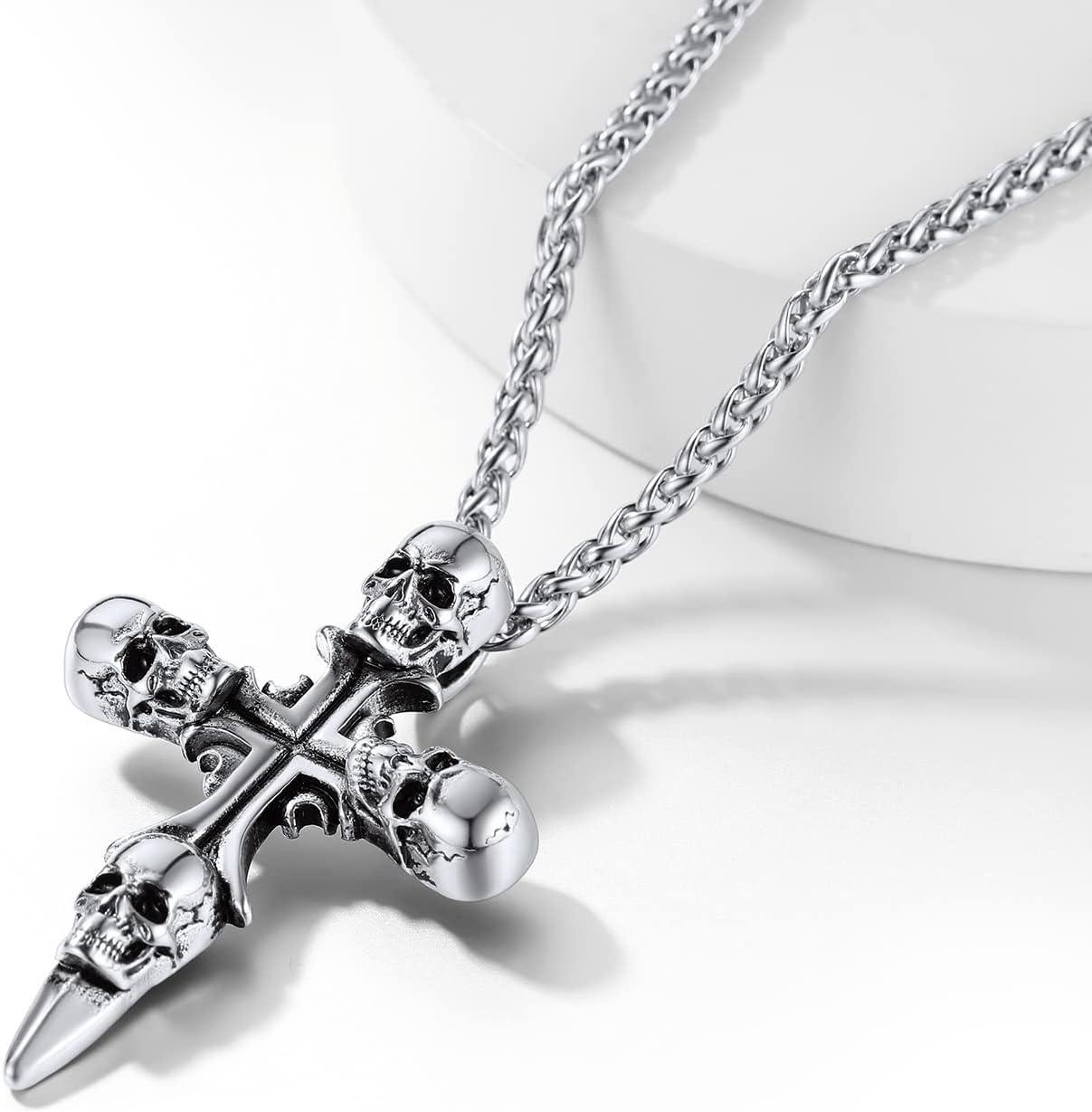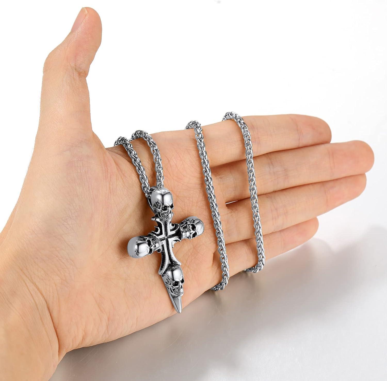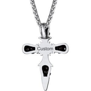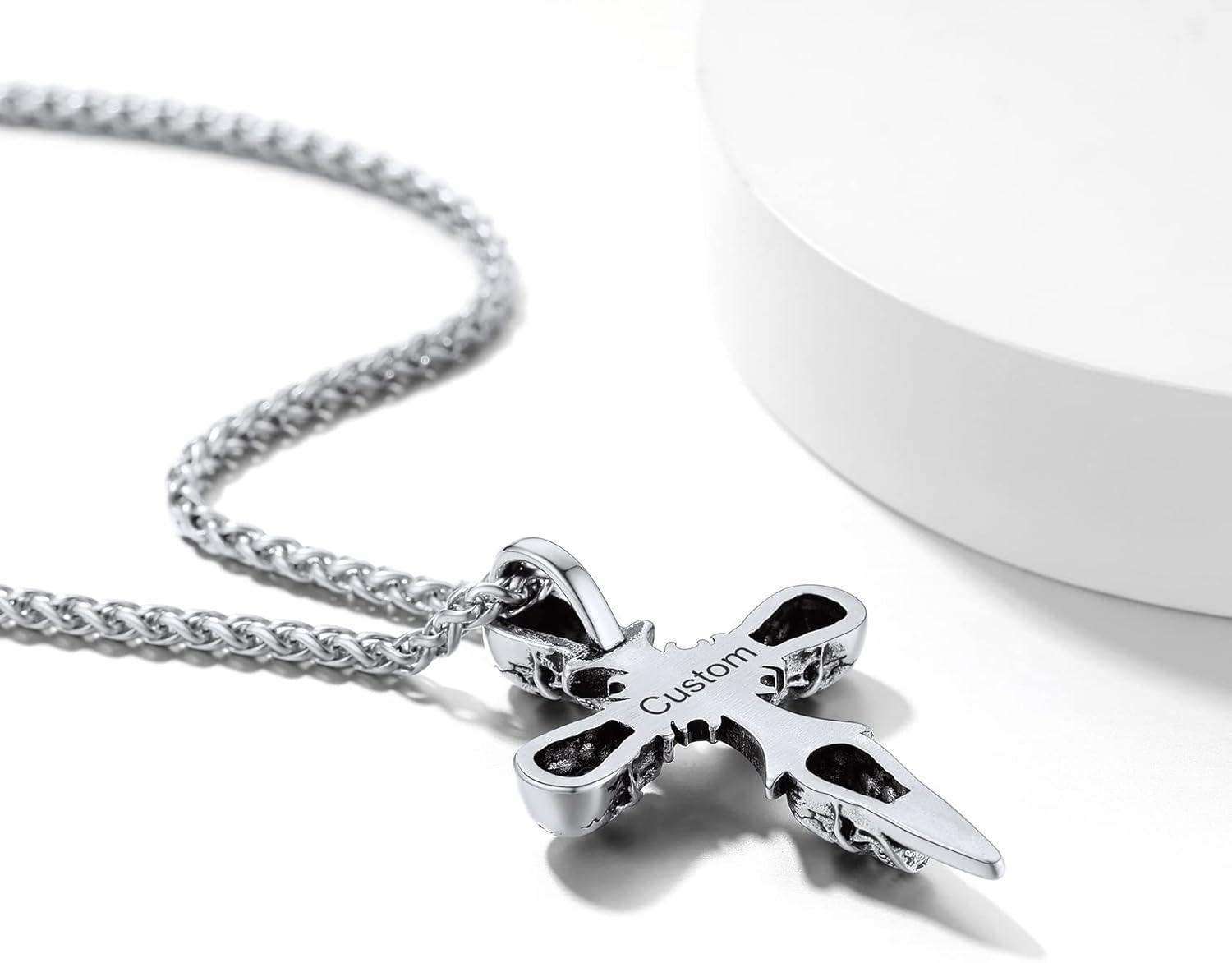ChainsHouse Skull Necklace for Men, Retro Gothic Punk Jewelry Biker Necklace for Men Women Free Engraving Stainless Steel Dog Tag Pendant Necklace,with Gift Box(07. Cross -Steel)