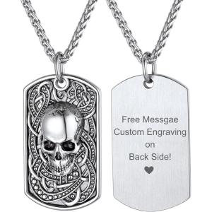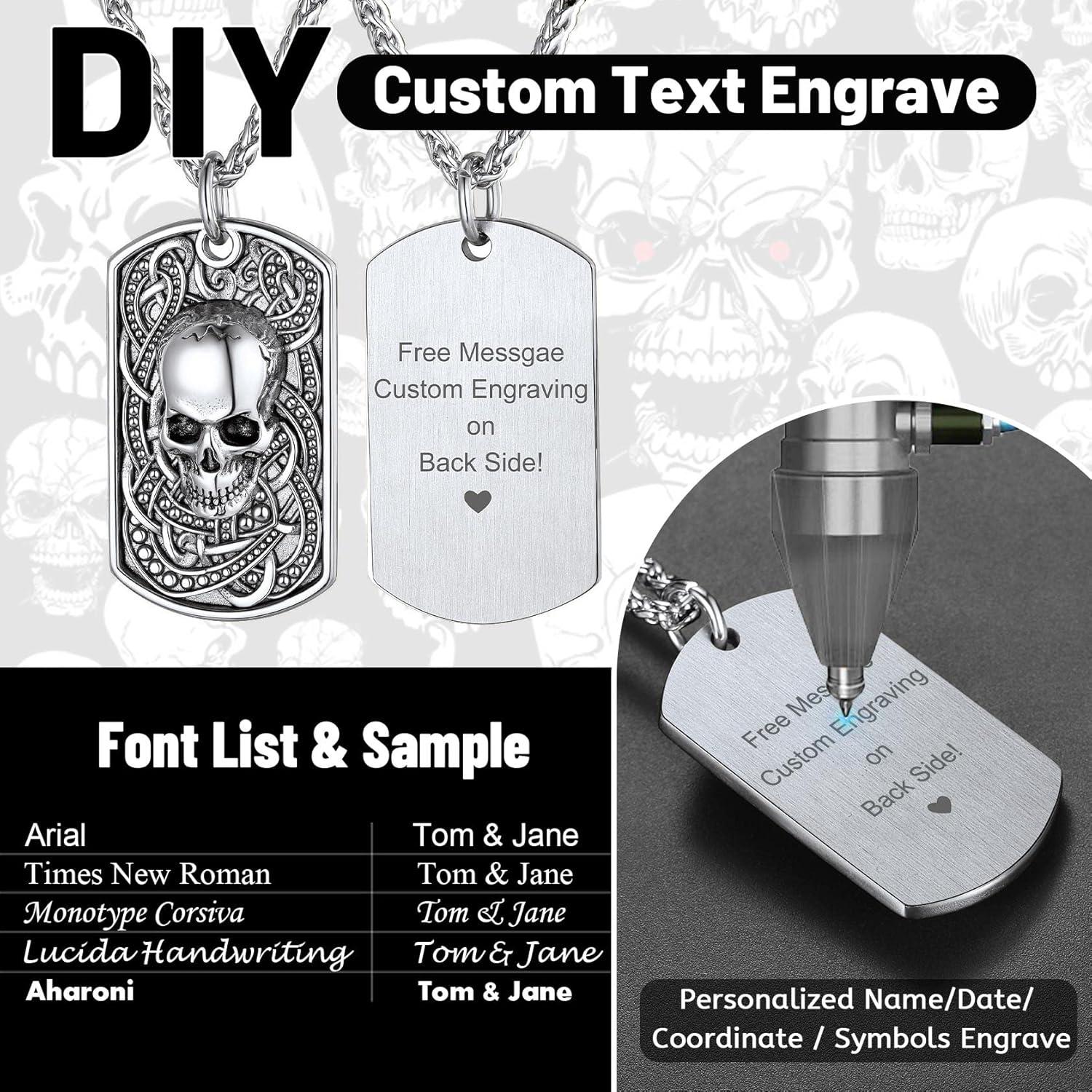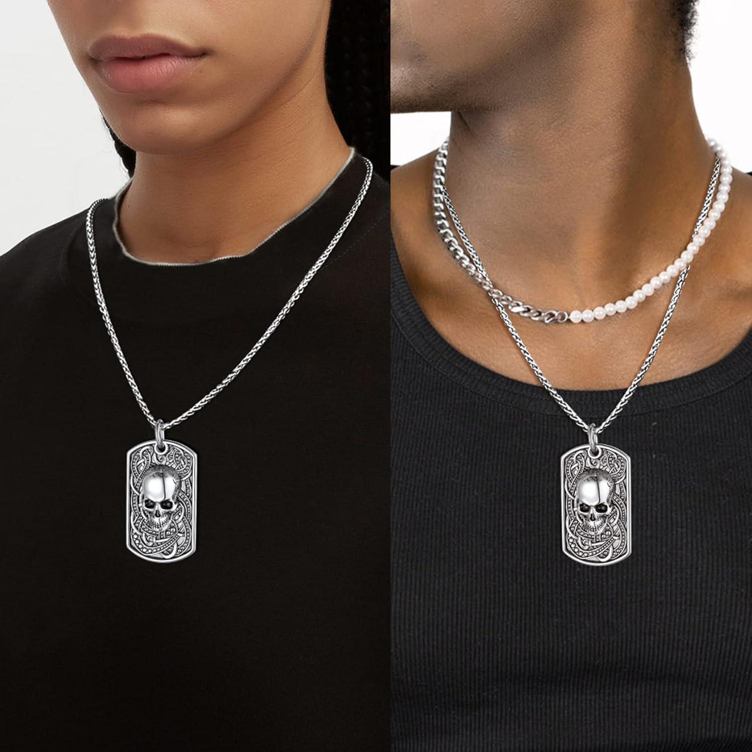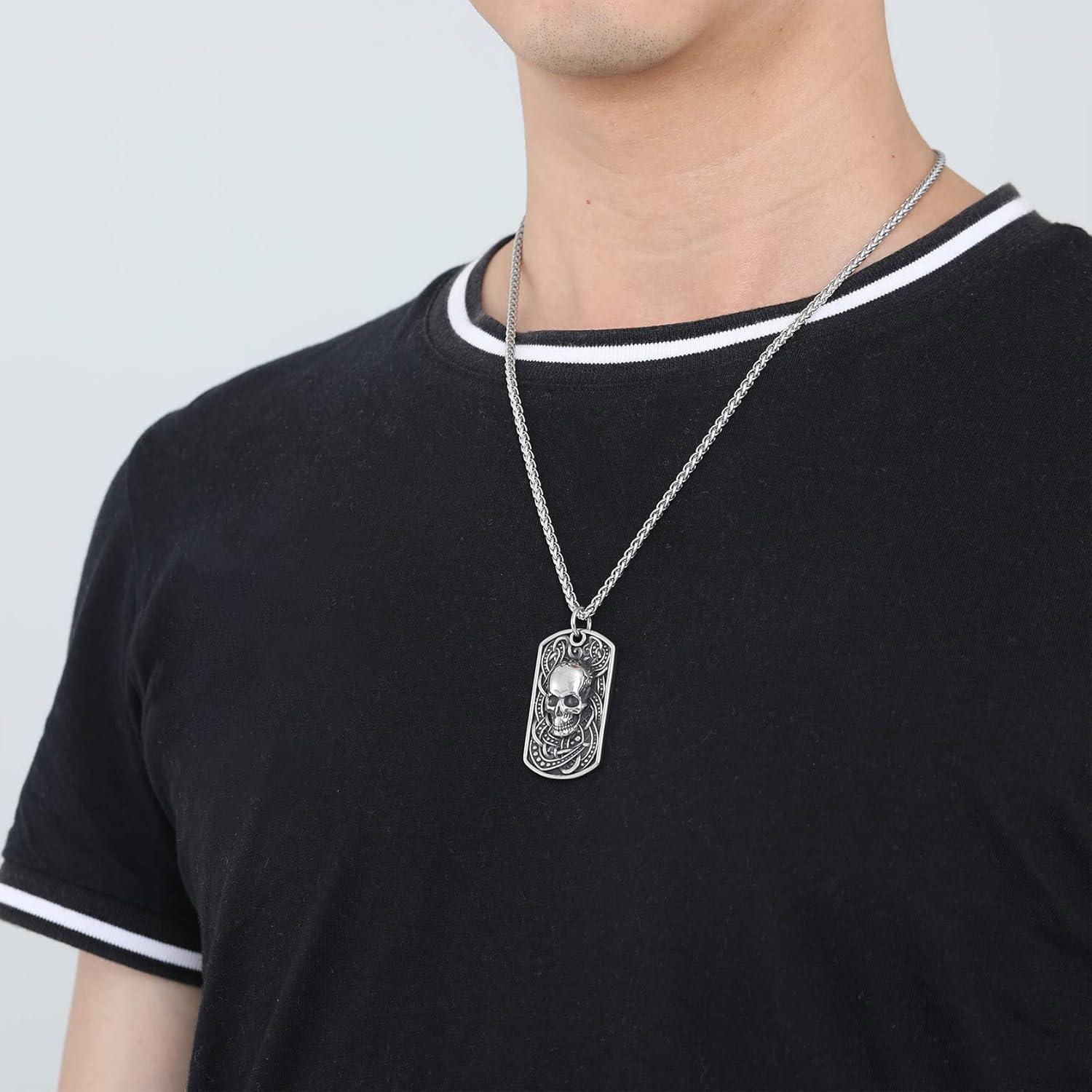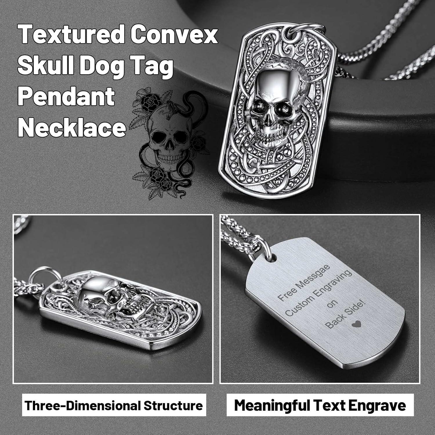 ChainsHouse Skull Necklace for Men, Retro Gothic Punk Jewelry Biker Necklace for Men Women Free Engraving Stainless Steel Dog Tag Pendant Necklace,with Gift Box(03. Dogtag-Steel)
