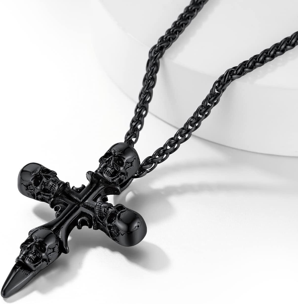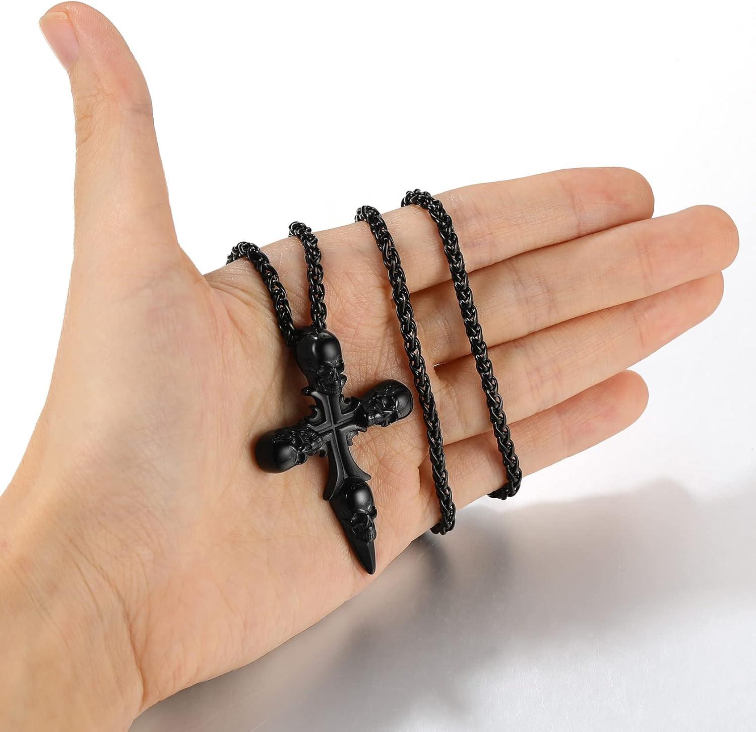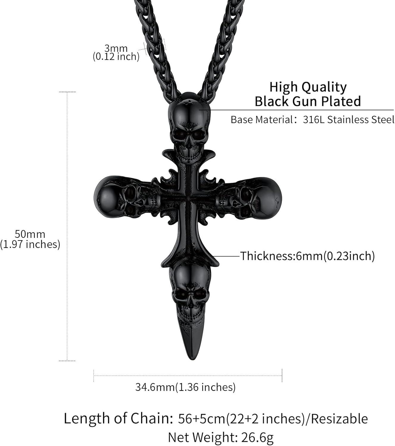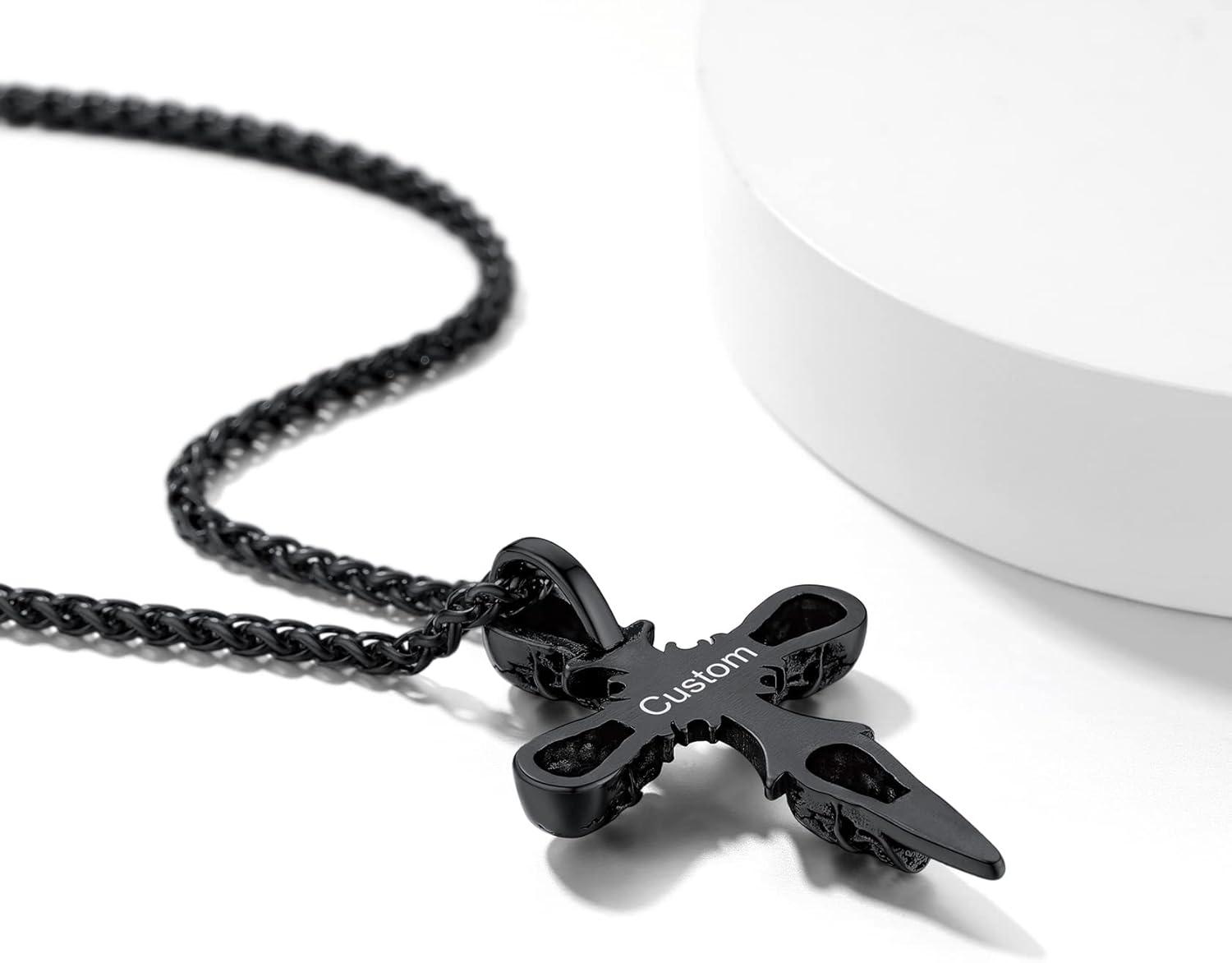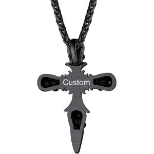 ChainsHouse Skull Necklace for Men, Retro Gothic Punk Jewelry Biker Necklace for Men Women Free Engraving Stainless Steel Dog Tag Pendant Necklace,with Gift Box(07. Cross -Black)