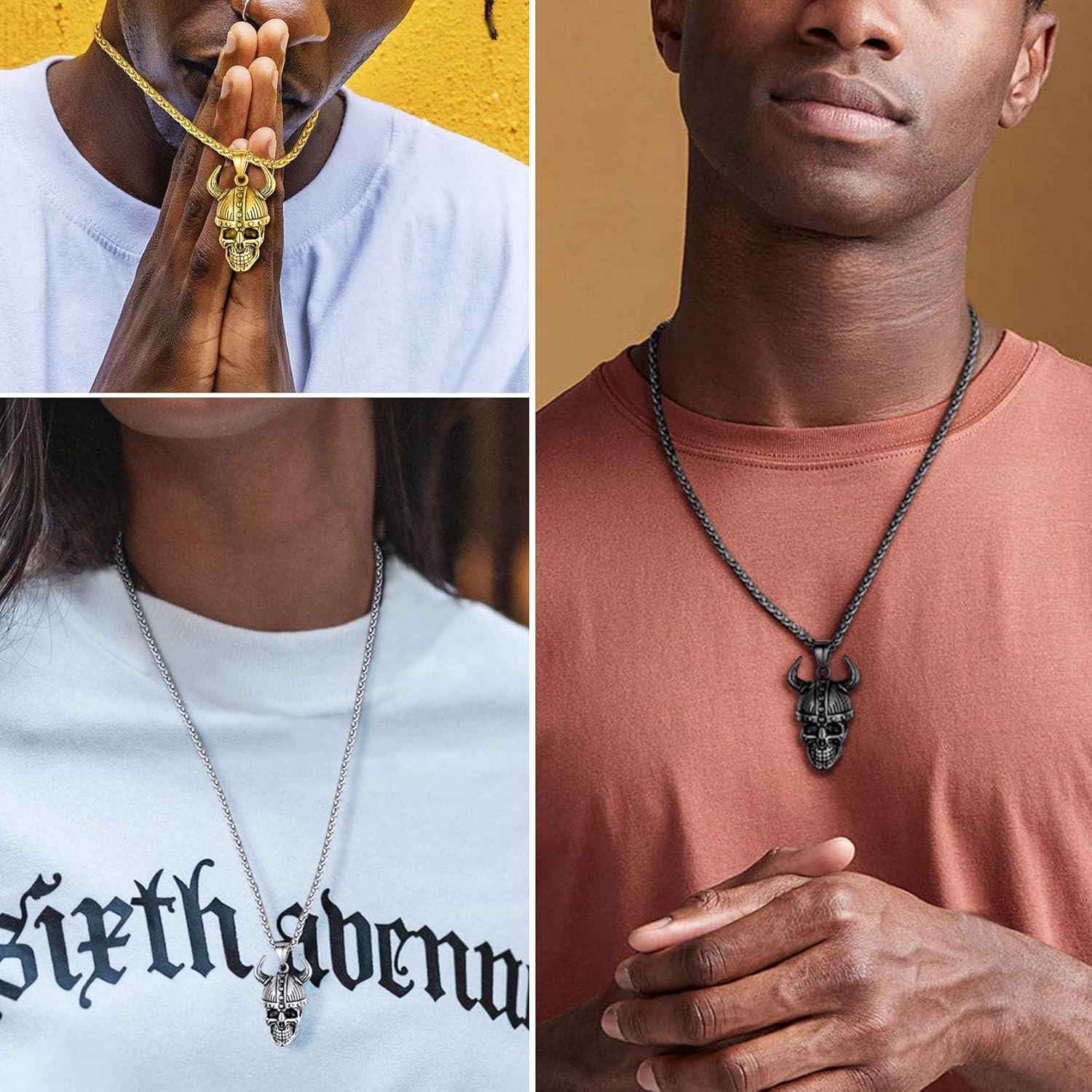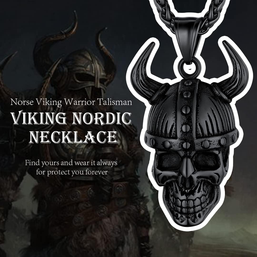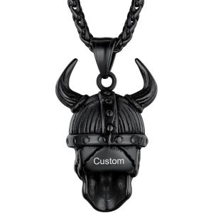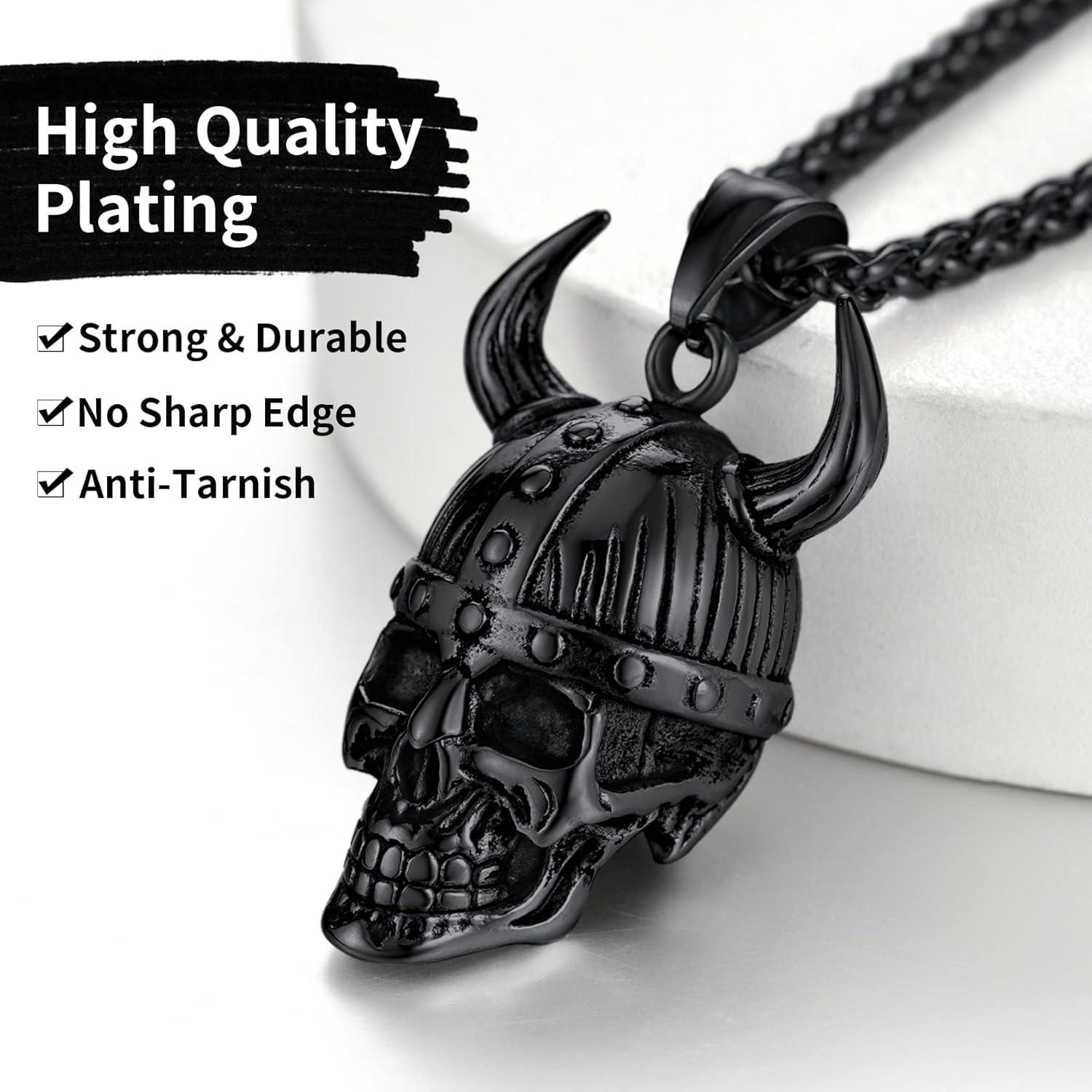 ChainsHouse Skull Necklace for Men, Retro Gothic Punk Jewelry Biker Necklace for Men Women Free Engraving Stainless Steel Dog Tag Pendant Necklace,with Gift Box(06. Odin Helmet-Black)