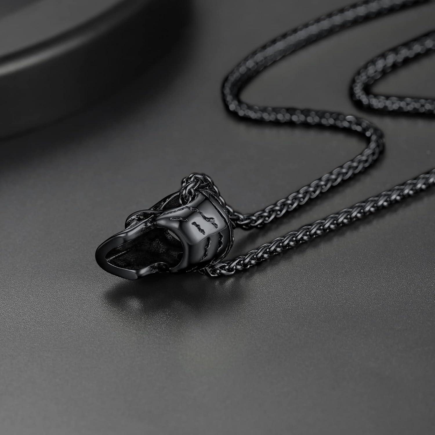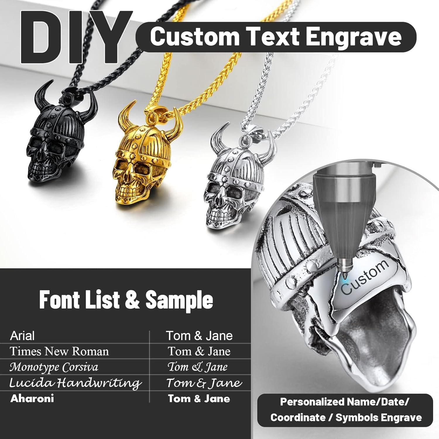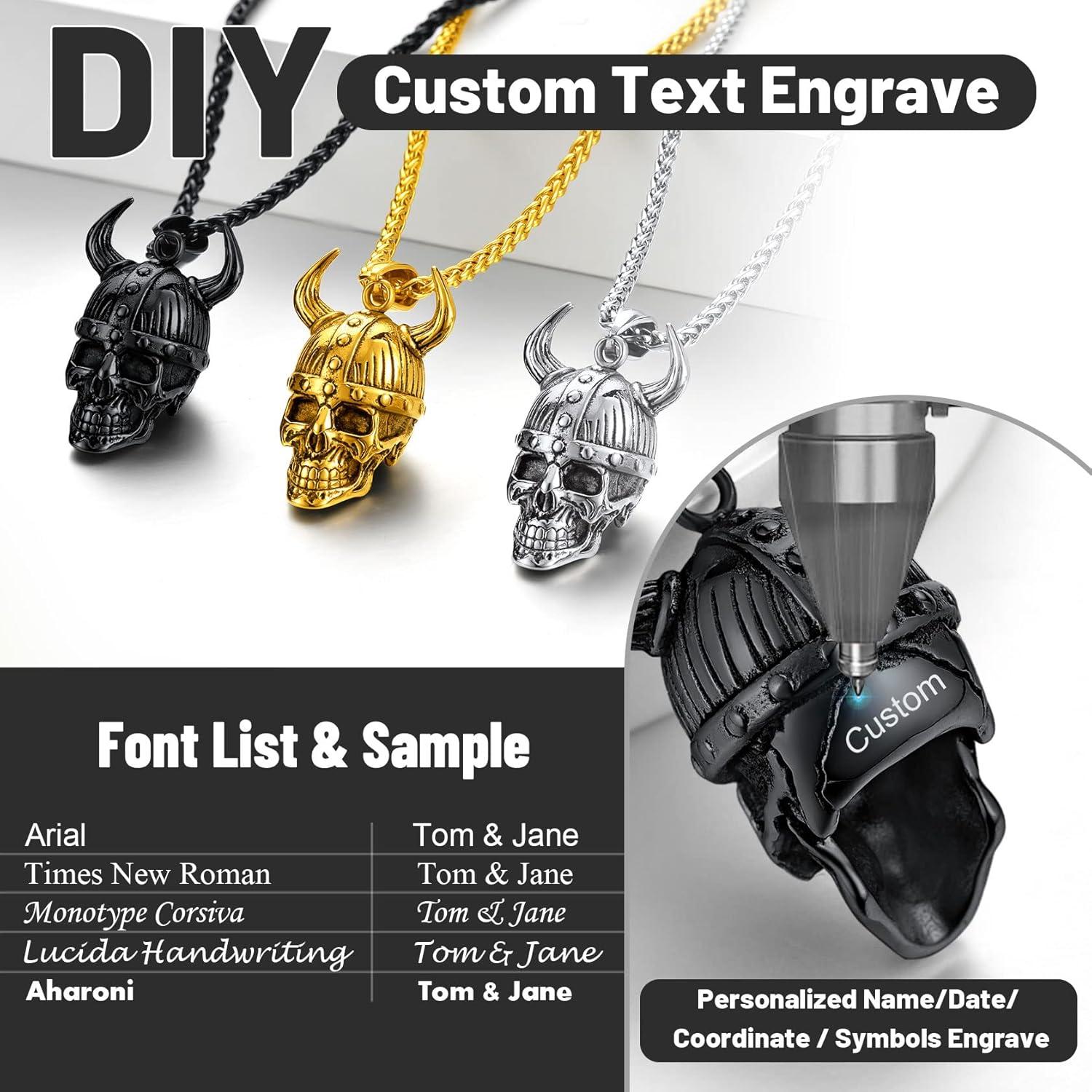 ChainsHouse Skull Necklace for Men, Retro Gothic Punk Jewelry Biker Necklace for Men Women Free Engraving Stainless Steel Dog Tag Pendant Necklace,with Gift Box(06. Odin Helmet-Black)