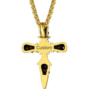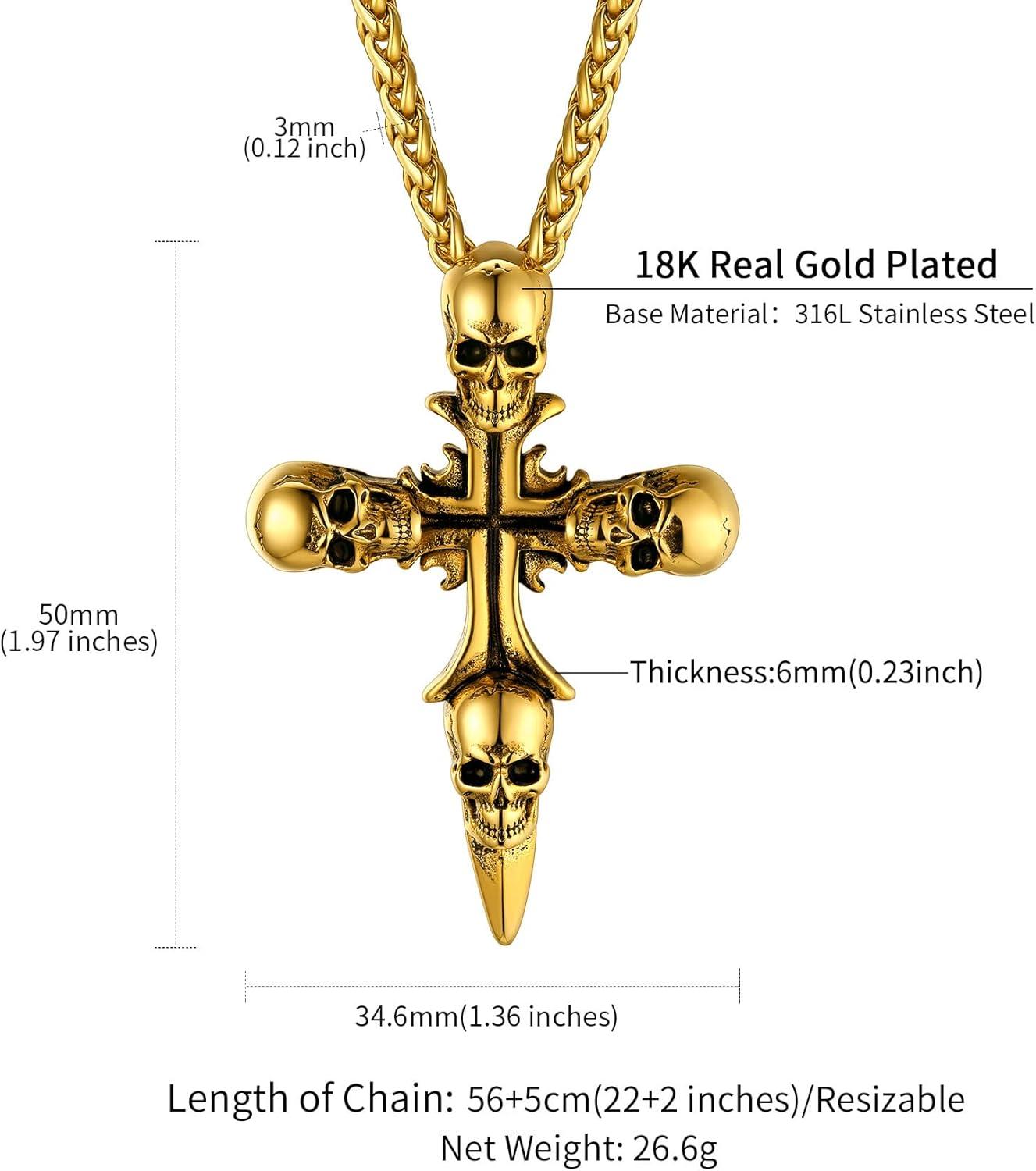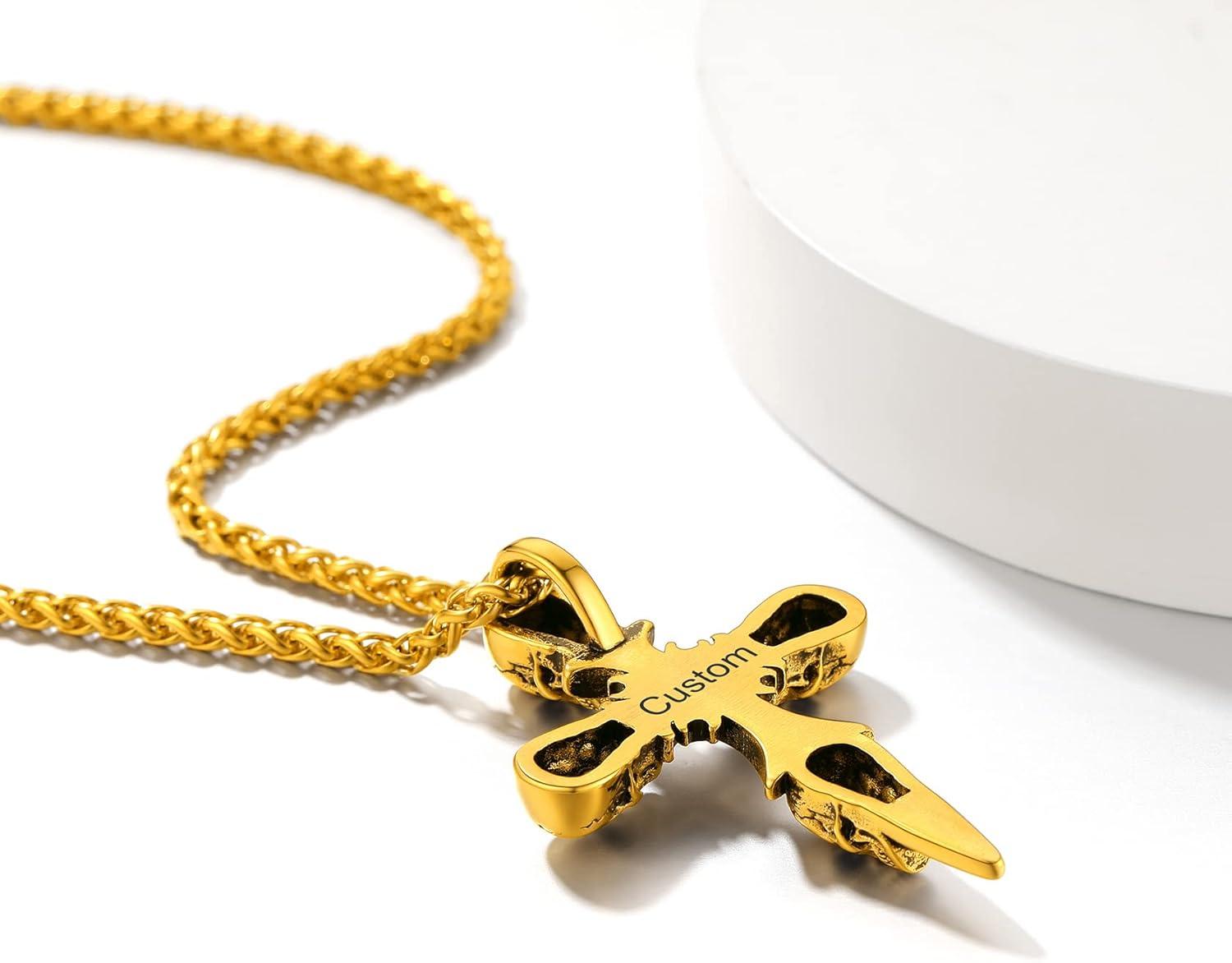 ChainsHouse Skull Necklace for Men, Retro Gothic Punk Jewelry Biker Necklace for Men Women Free Engraving Stainless Steel Dog Tag Pendant Necklace,with Gift Box(07. Cross -Gold)