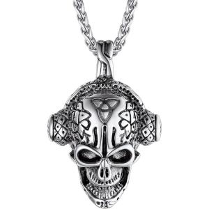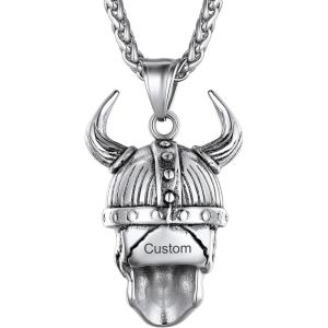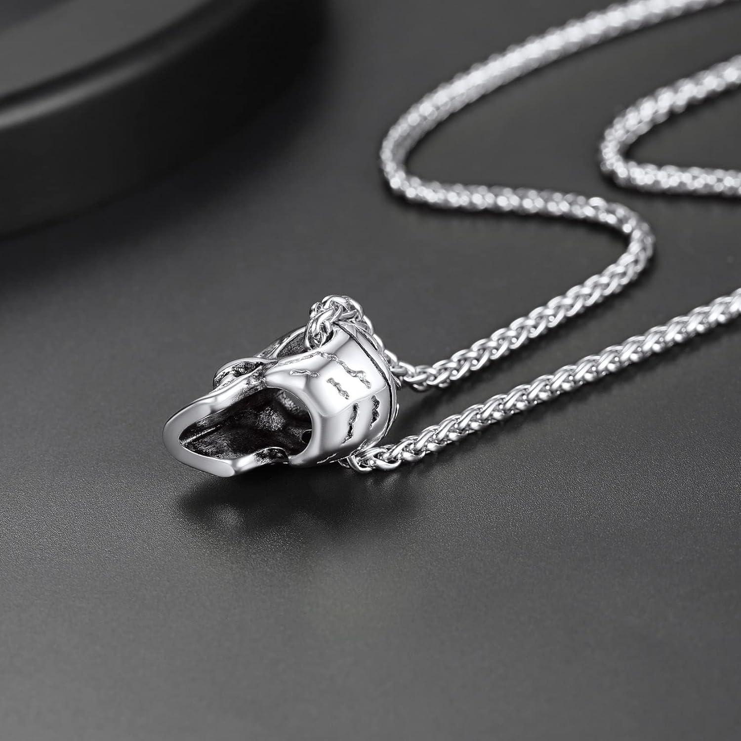 ChainsHouse Skull Necklace for Men, Retro Gothic Punk Jewelry Biker Necklace for Men Women Free Engraving Stainless Steel Dog Tag Pendant Necklace,with Gift Box(06. Odin Helmet-Steel)