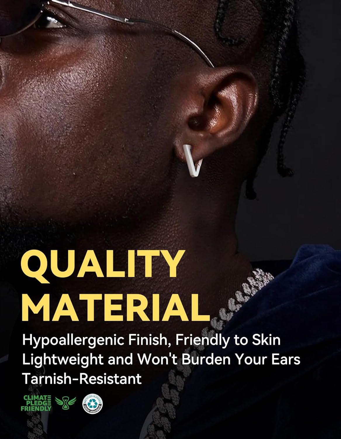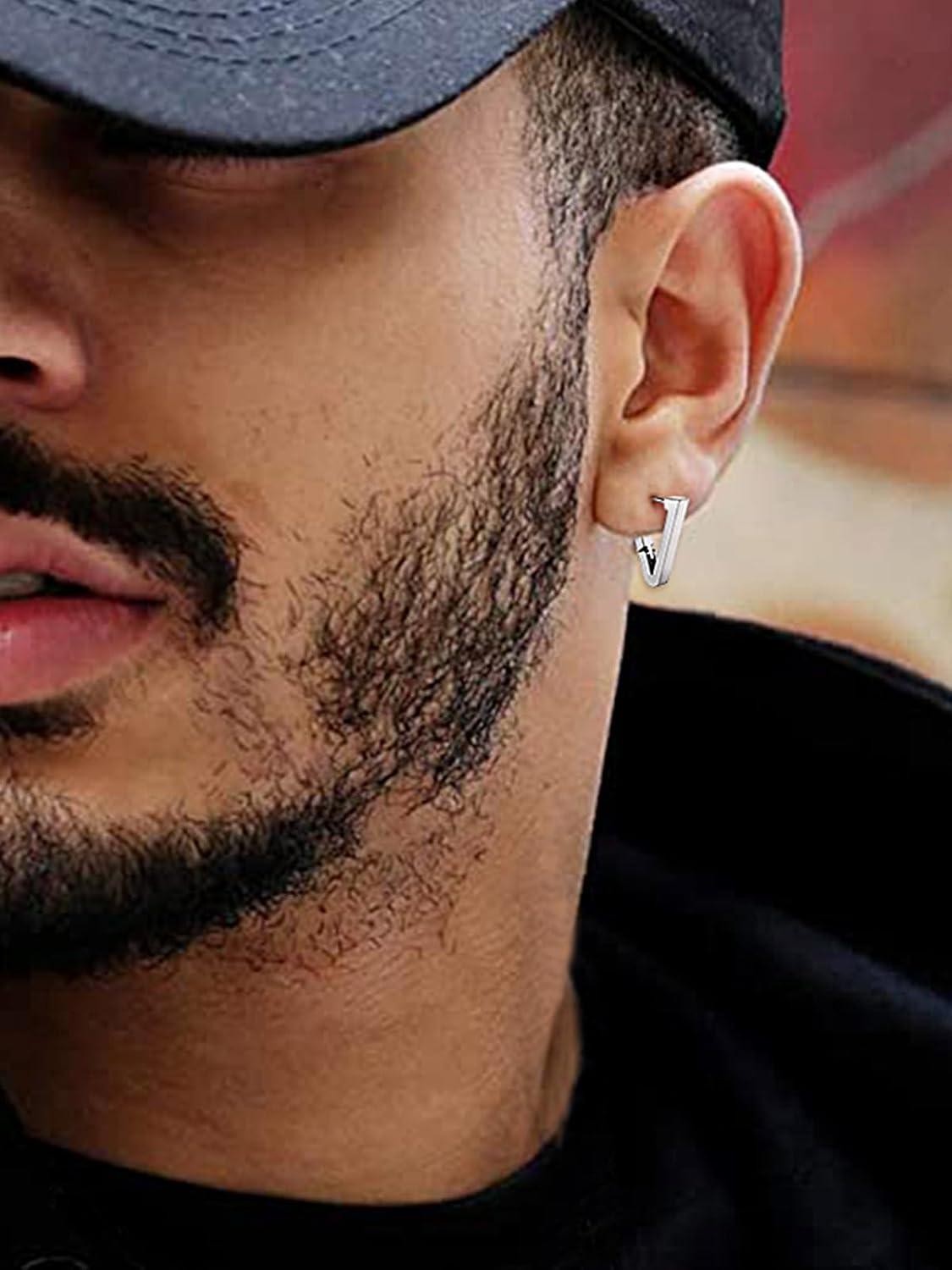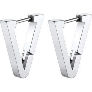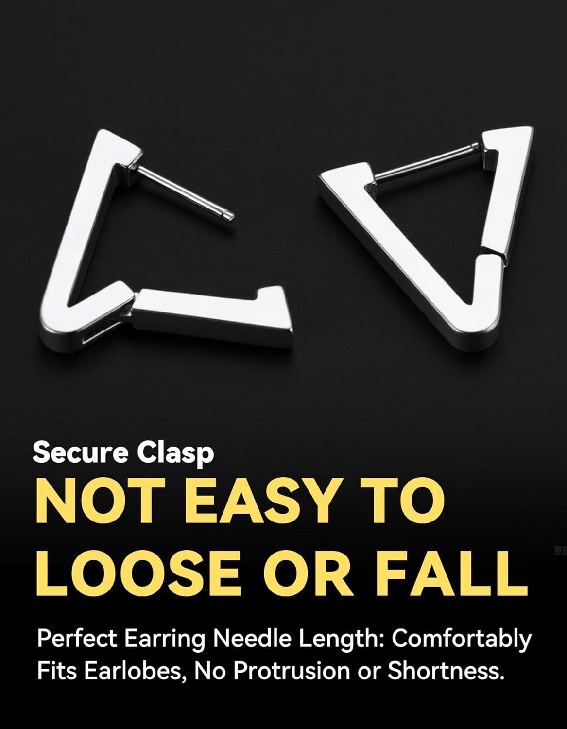 ChainsHouse Stud Earrings for Men Women,316L Stainless Steel/14K Gold/Black Plated Metal, Punk Hypoallergenic Surgical Huggie Hoop Earrings Mens Jewelry Piercing Hoop Earrings(A: Silver-Triangle(1 Pair))
