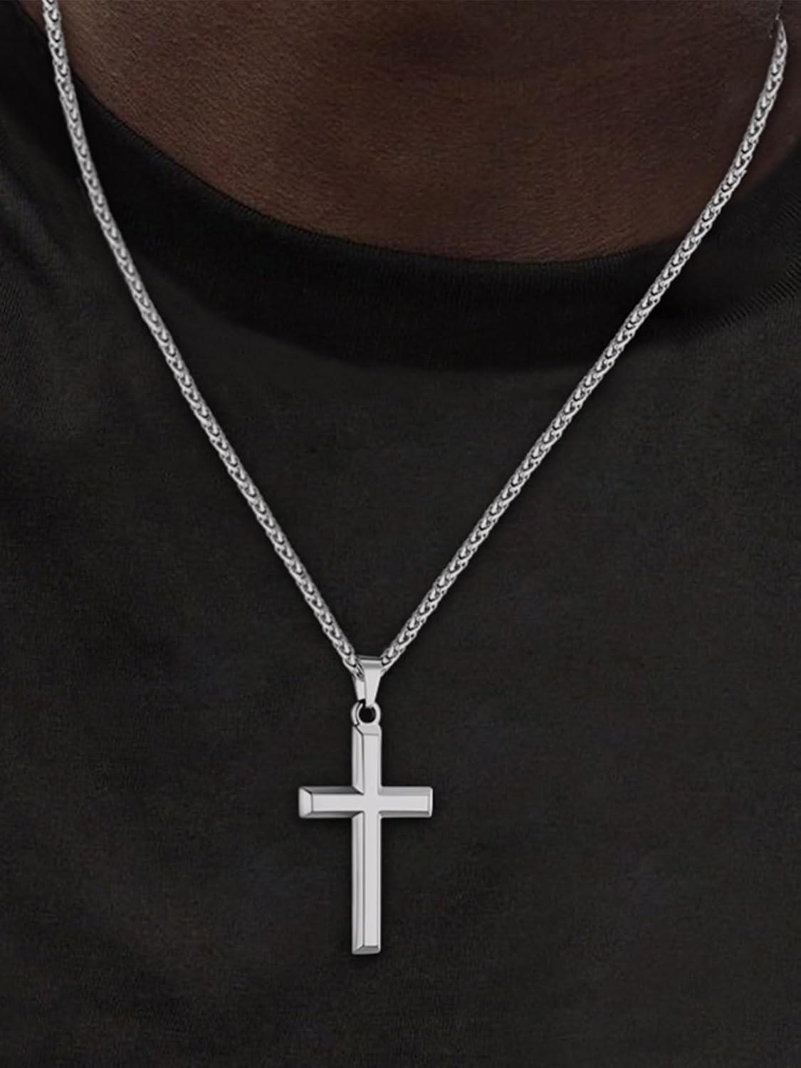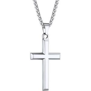 ChainsHouse Cross Necklace for Men, Black/18K Gold Plated/Stainless Steel Christian Jewelry Cross Pendant Necklace for Men, with Gift Box(c: Plain Cross-Steel)
