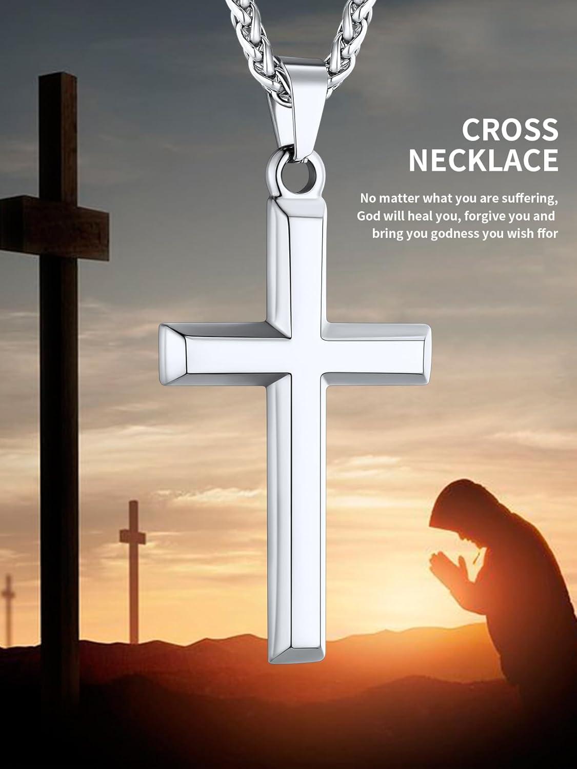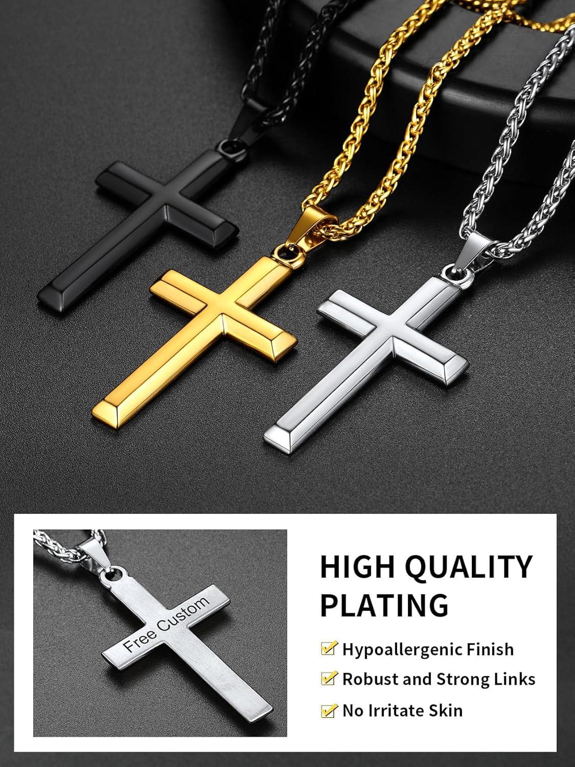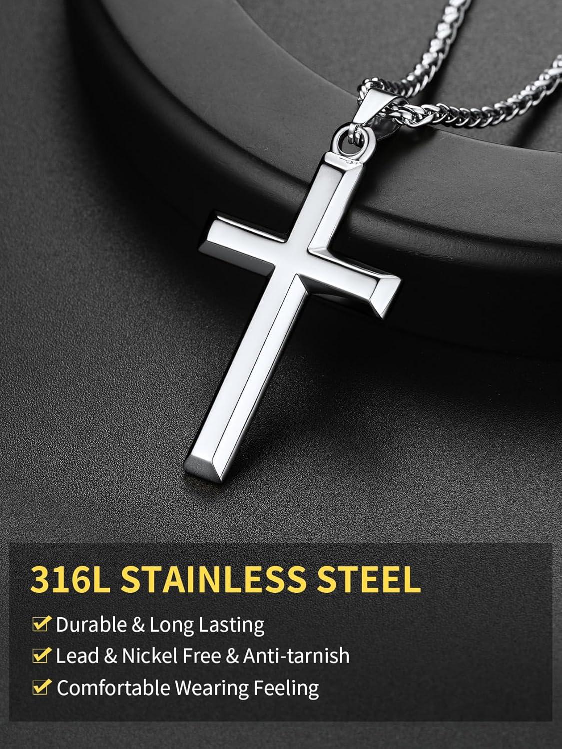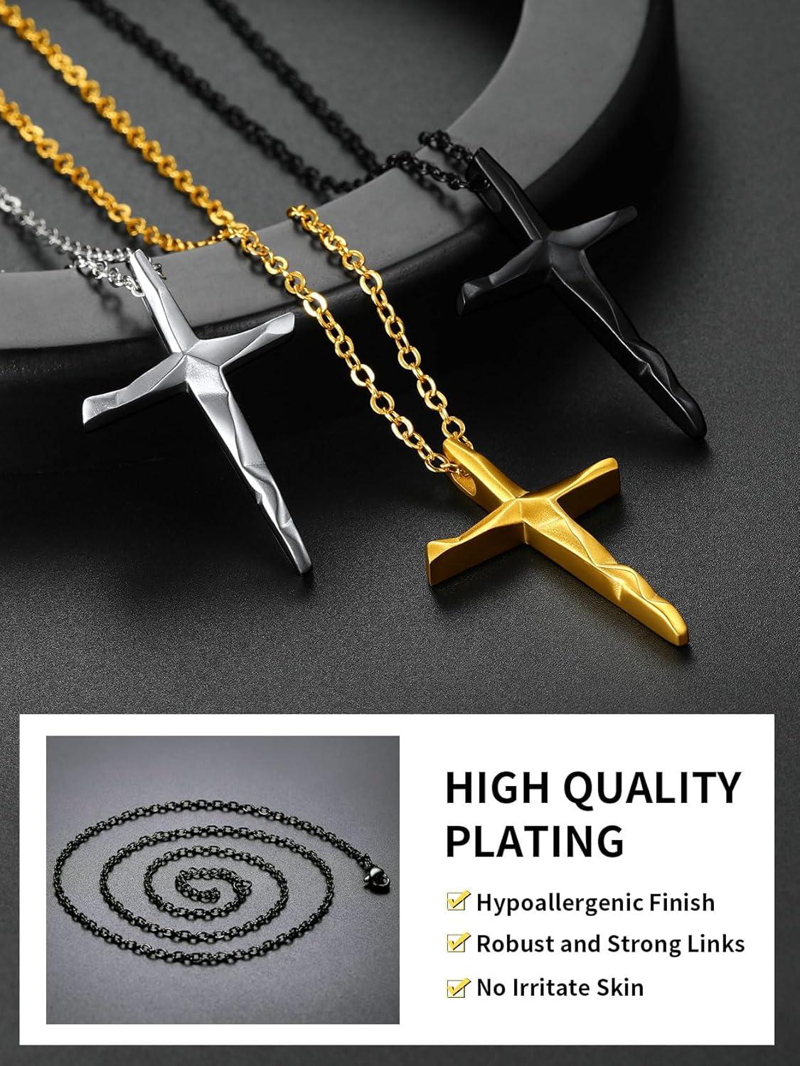 ChainsHouse Cross Necklace for Men, Black/18K Gold Plated/Stainless Steel Christian Jewelry Cross Pendant Necklace for Men, with Gift Box(d: Cross-Steel)