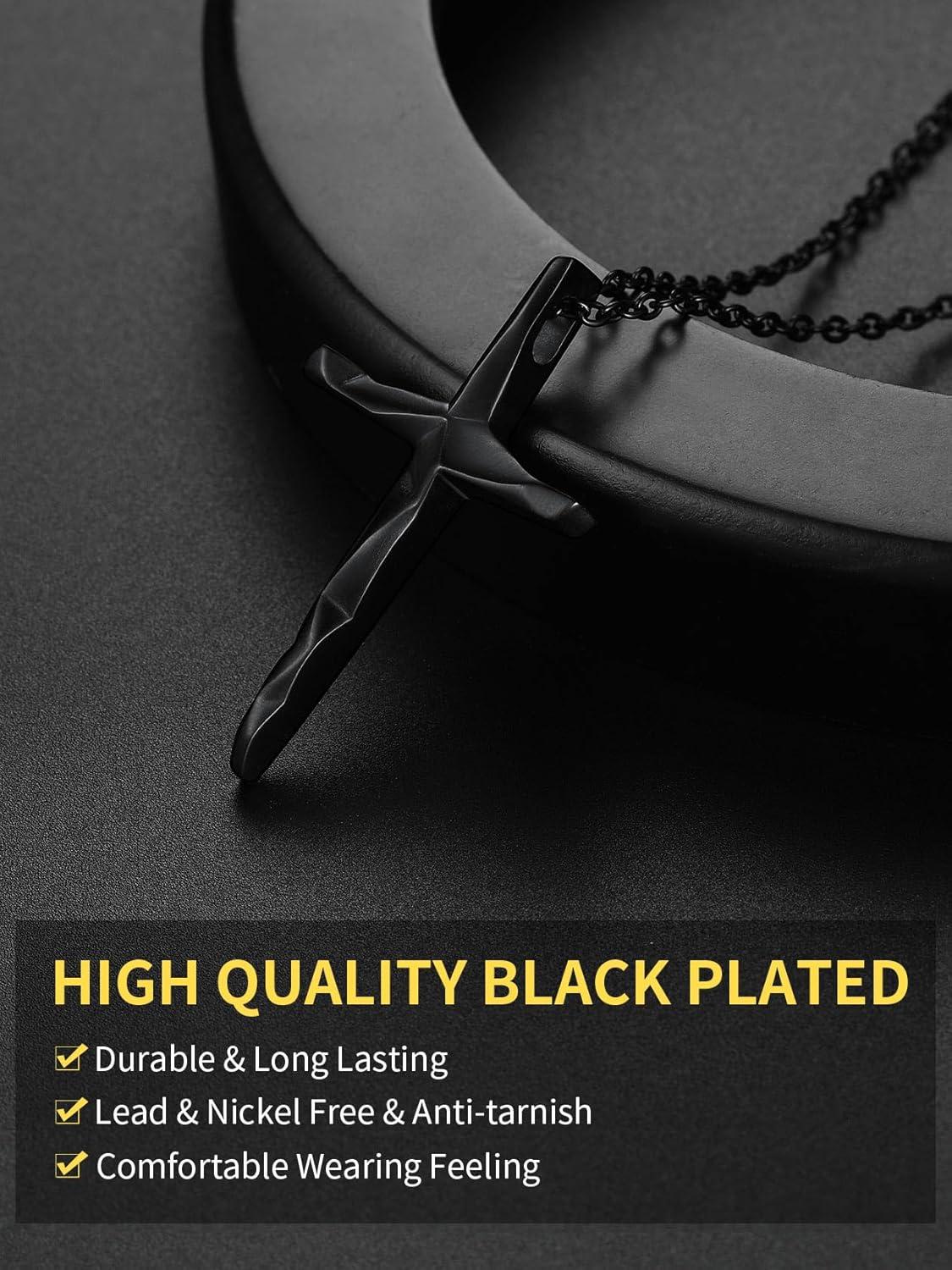 ChainsHouse Cross Necklace for Men, Black/18K Gold Plated/Stainless Steel Christian Jewelry Cross Pendant Necklace for Men, with Gift Box(d: Cross-Black)