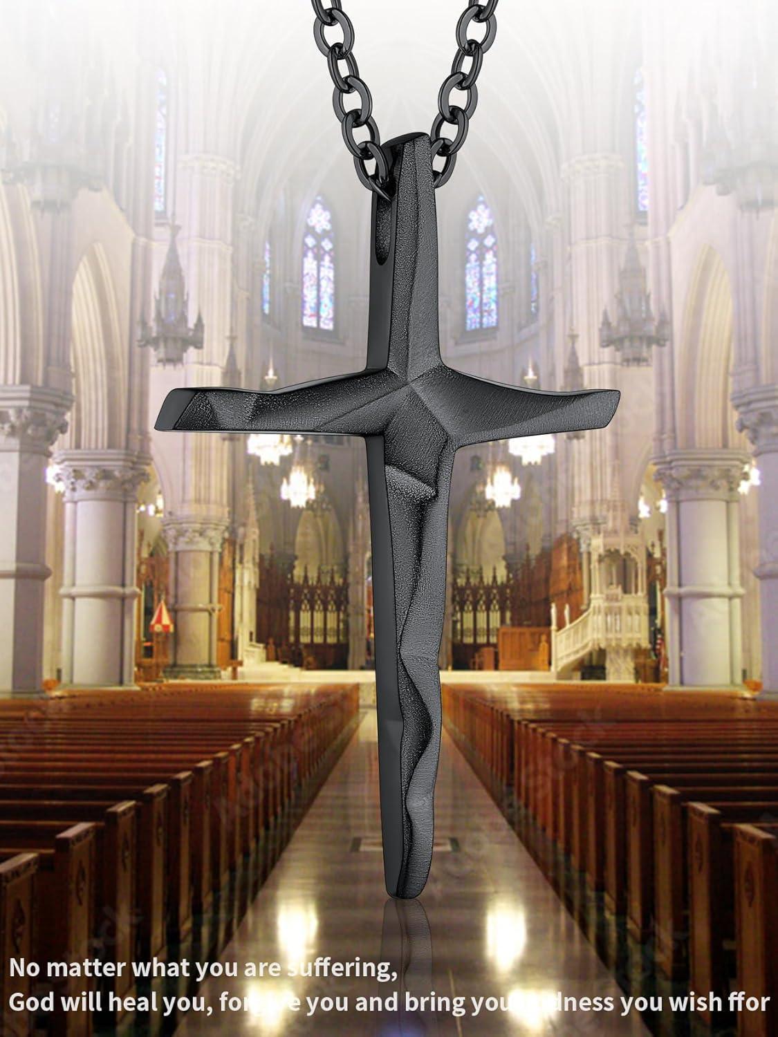 ChainsHouse Cross Necklace for Men, Black/18K Gold Plated/Stainless Steel Christian Jewelry Cross Pendant Necklace for Men, with Gift Box(e: Irregular Cross-Black)