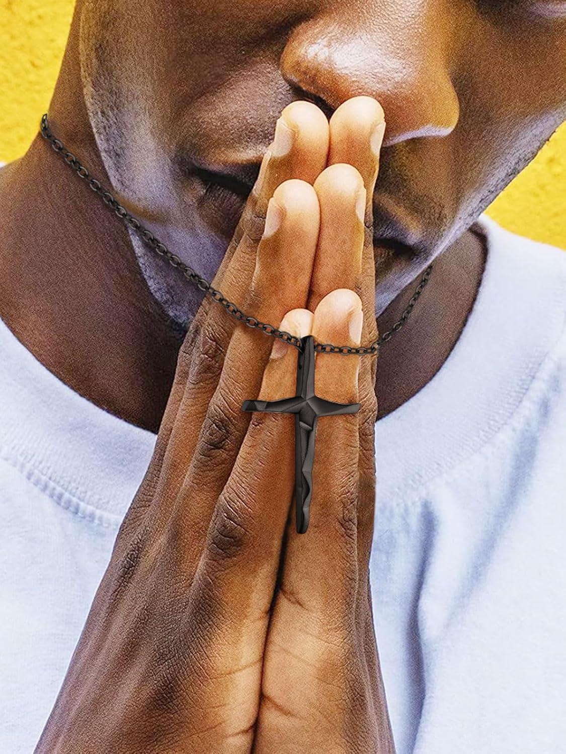 ChainsHouse Cross Necklace for Men, Black/18K Gold Plated/Stainless Steel Christian Jewelry Cross Pendant Necklace for Men, with Gift Box(a: Jecus Cross-Black)
