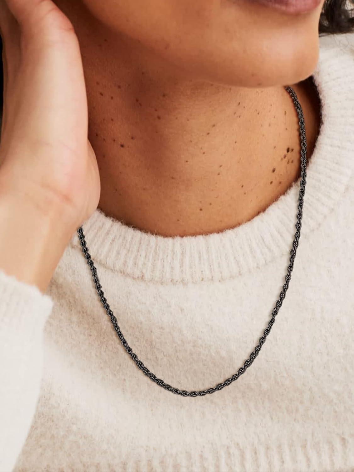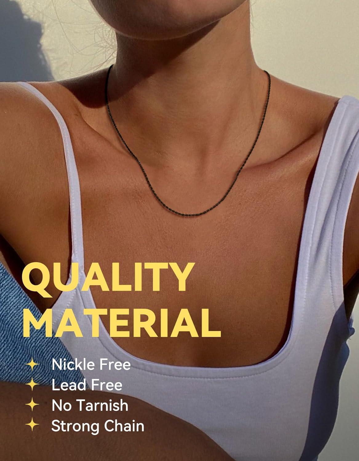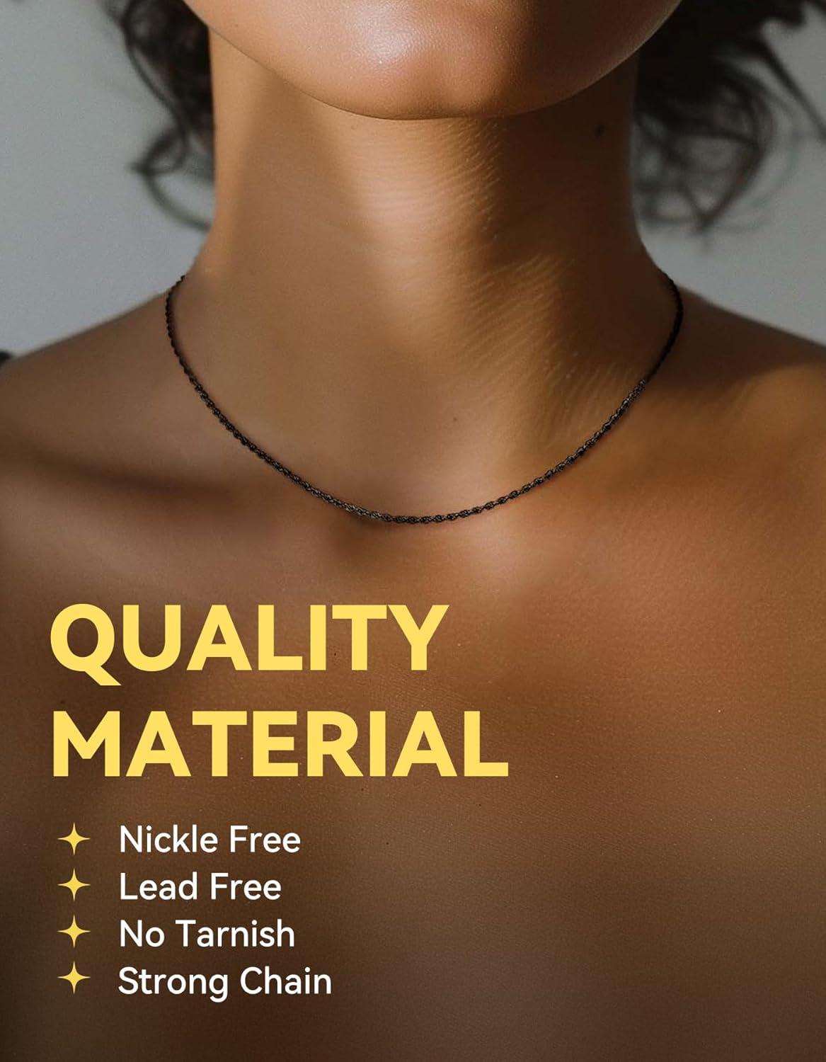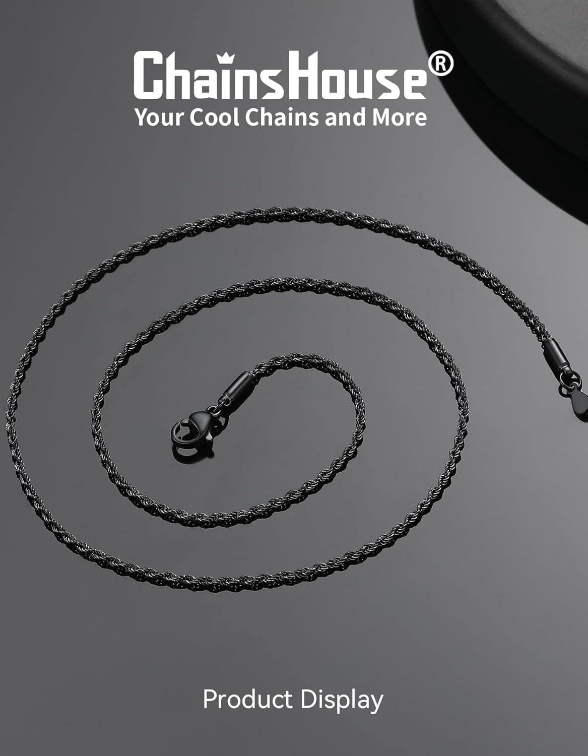 ChainsHouse Rope Chain for Men Women, Stainless Steel Twisted Chain Necklace 1.5mm/2mm/3mm/3.8mm/6mm Width, Black/14K Gold Mens Rope Chains Jewelry 16″-30″, Send Gift Box(c. 2mm width-black)
