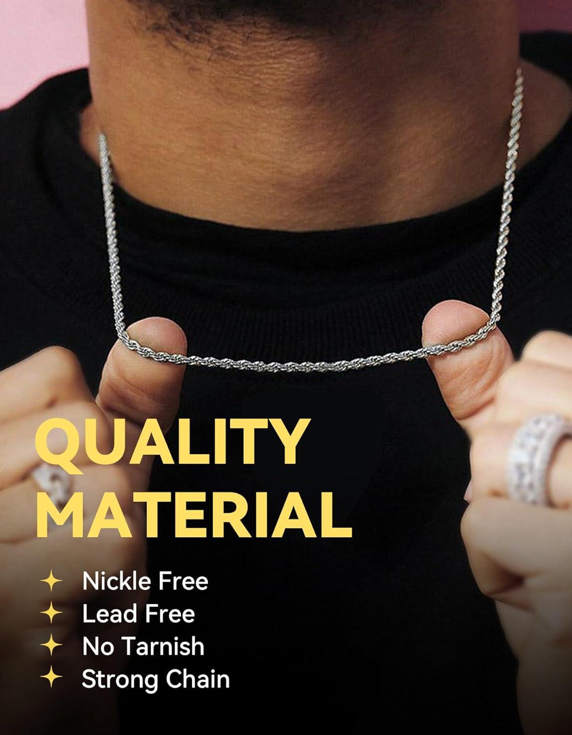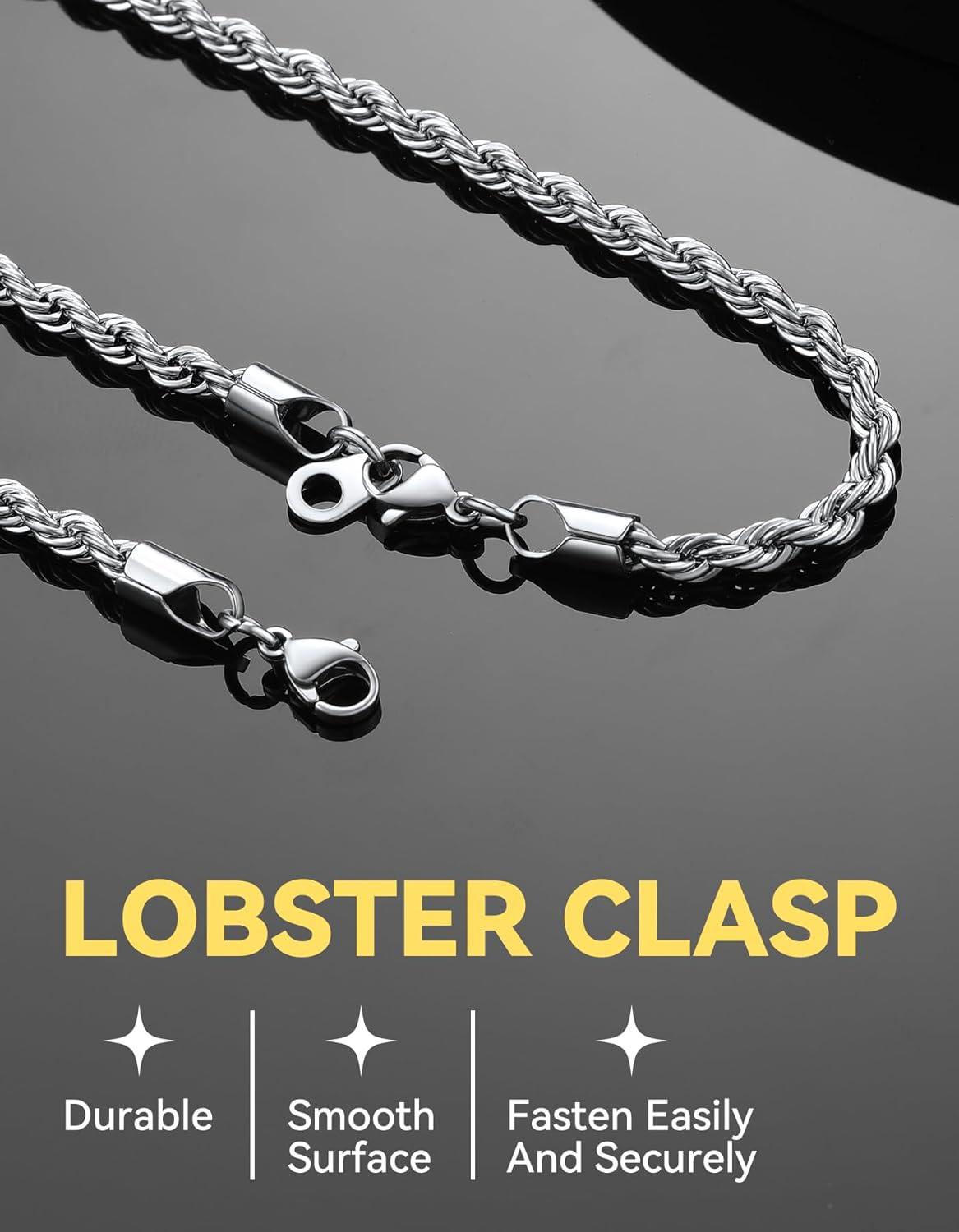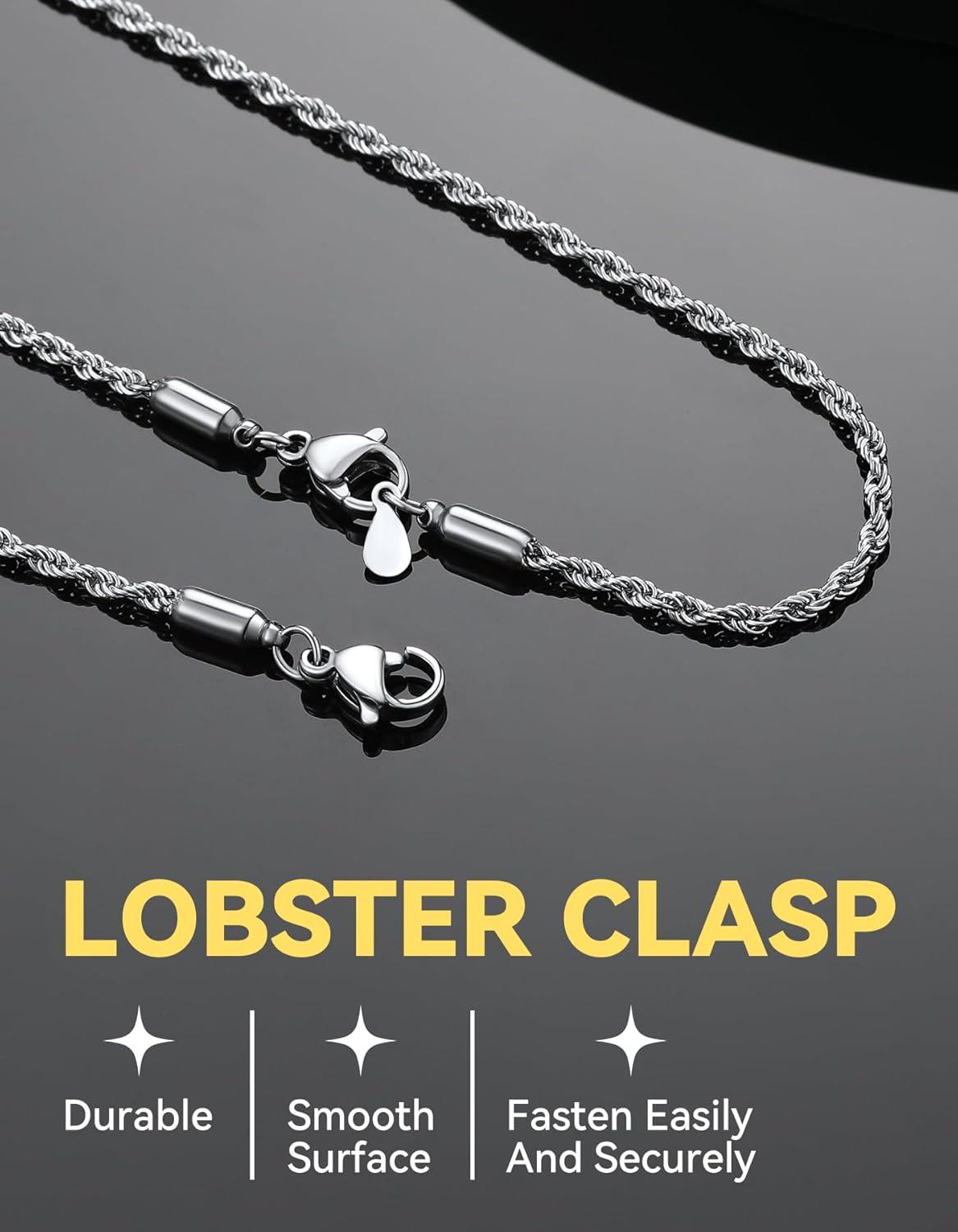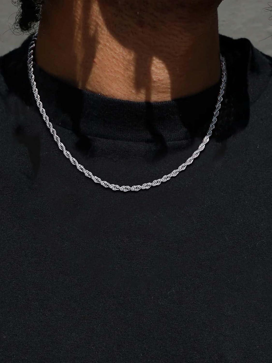 ChainsHouse Rope Chain for Men Women, Stainless Steel Twisted Chain Necklace 1.5mm/2mm/3mm/3.8mm/6mm Width, Black/14K Gold Mens Rope Chains Jewelry 16″-30″, Send Gift Box(a. 3mm width-steel)