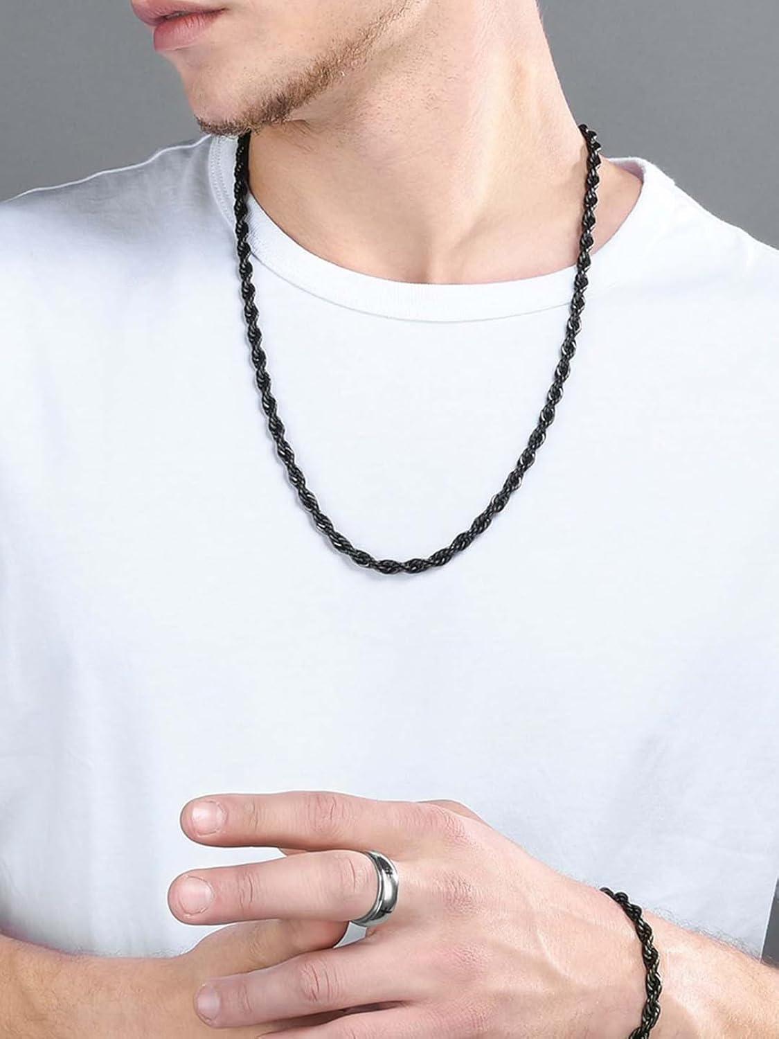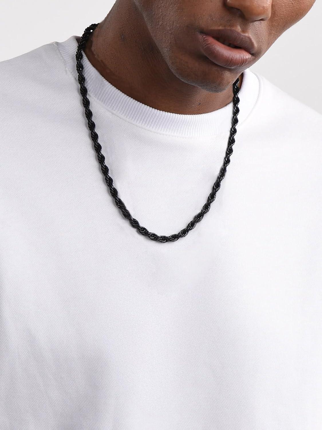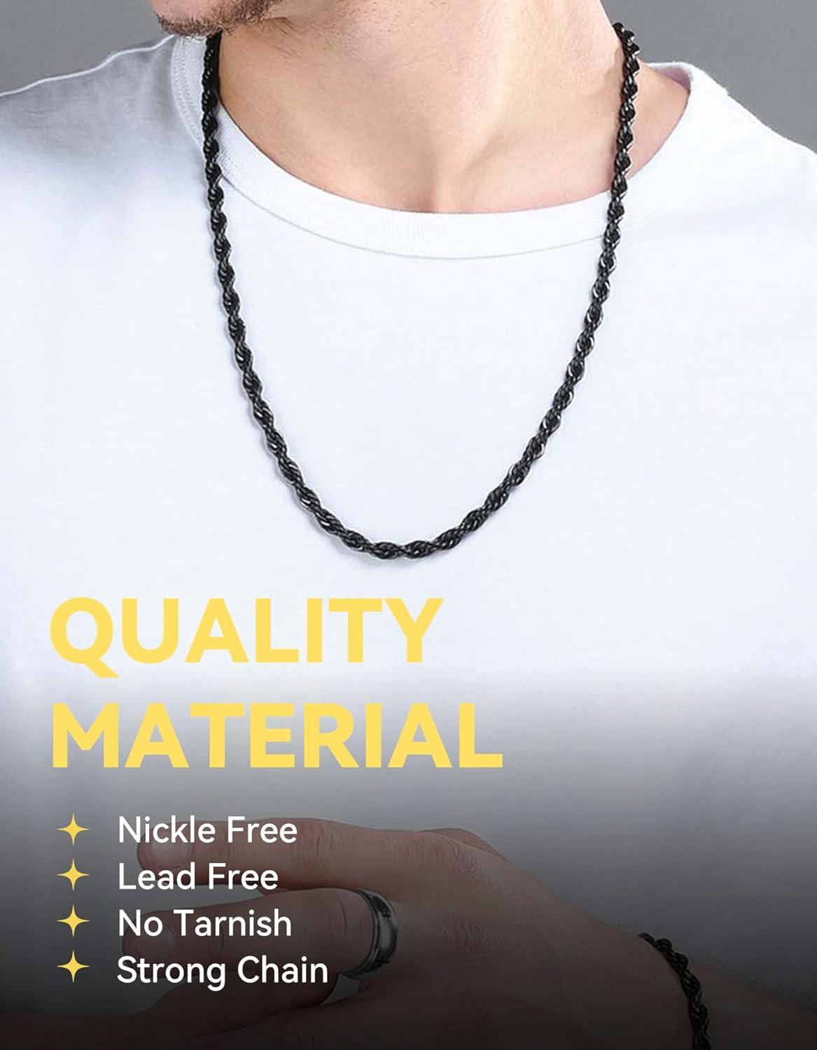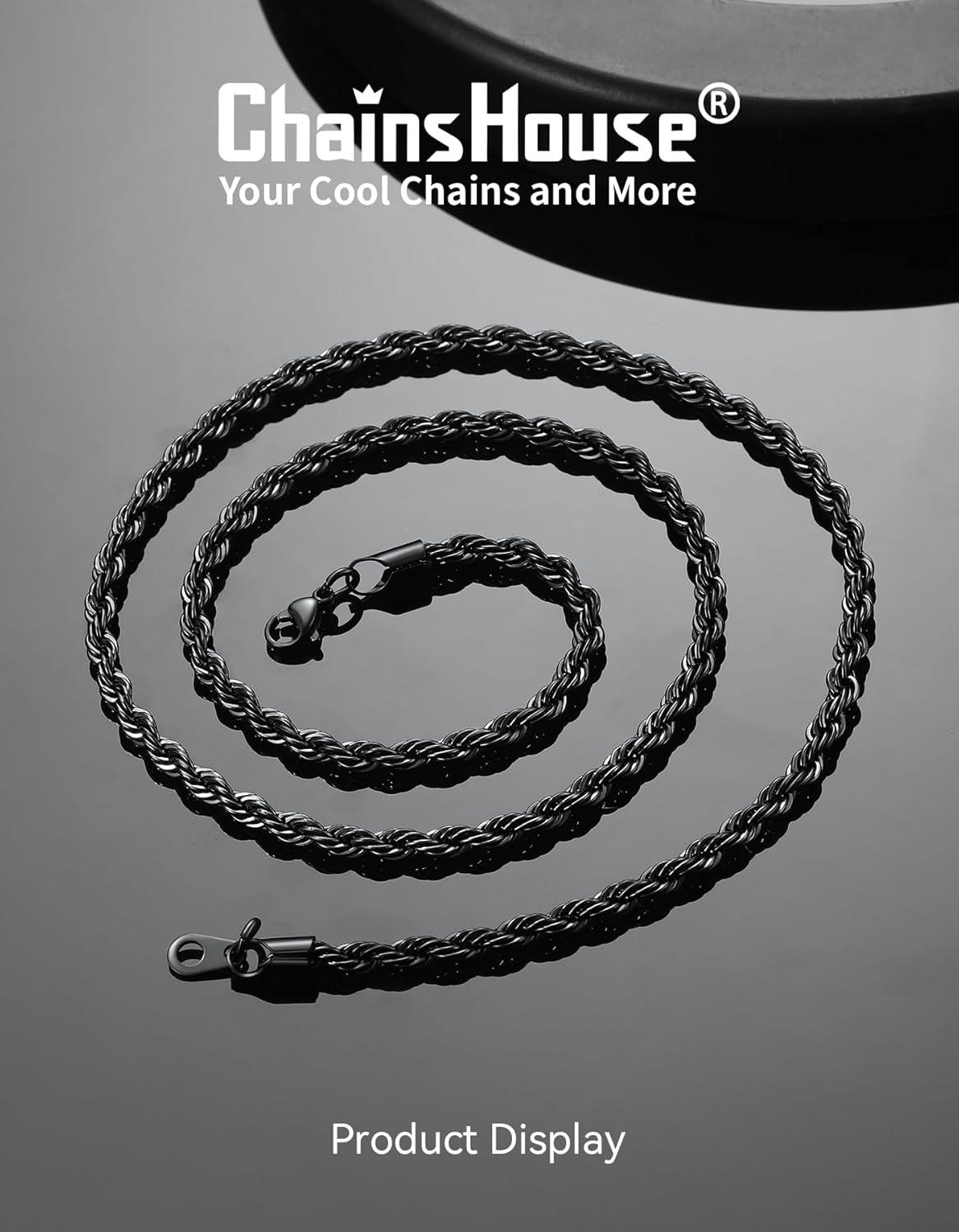 ChainsHouse Rope Chain for Men Women, Stainless Steel Twisted Chain Necklace 1.5mm/2mm/3mm/3.8mm/6mm Width, Black/14K Gold Mens Rope Chains Jewelry 16″-30″, Send Gift Box(c. 3.8mm width-black)