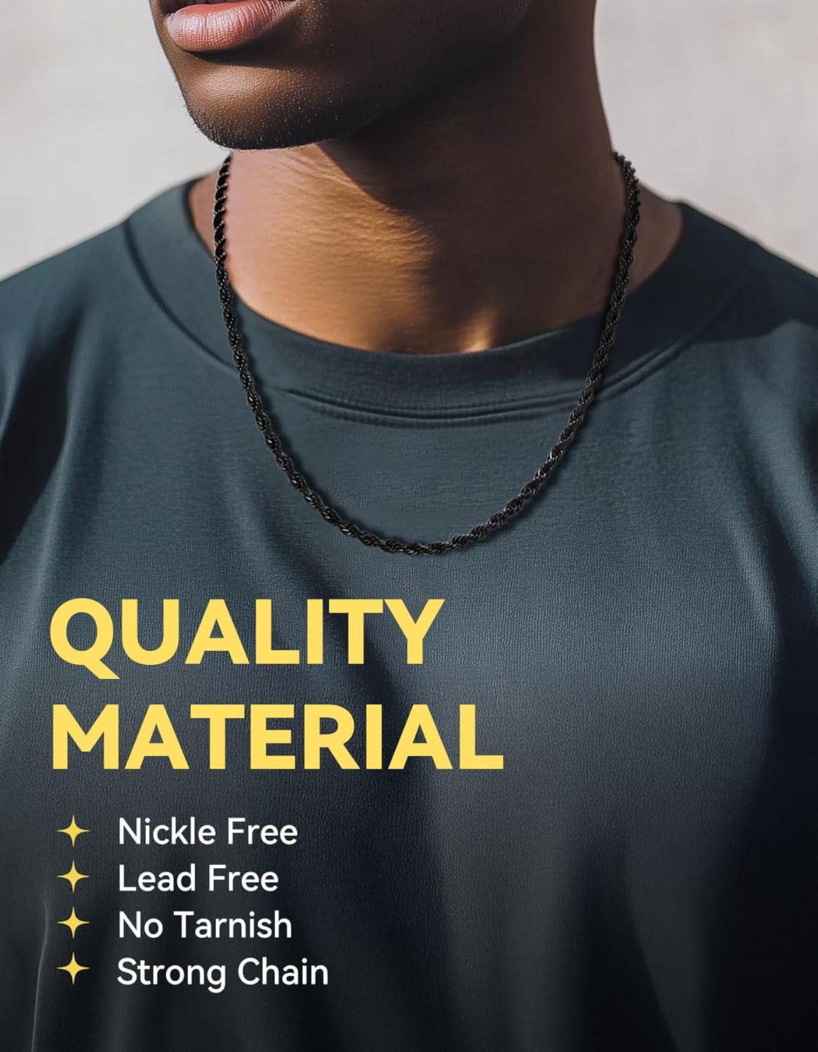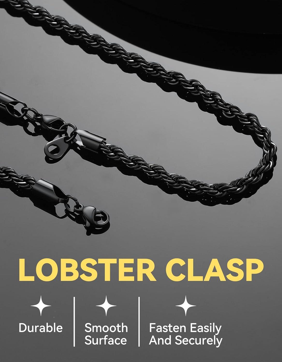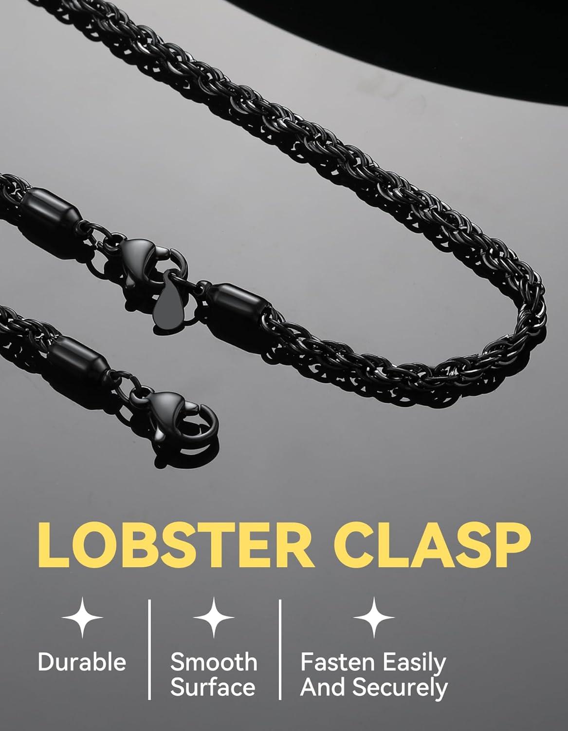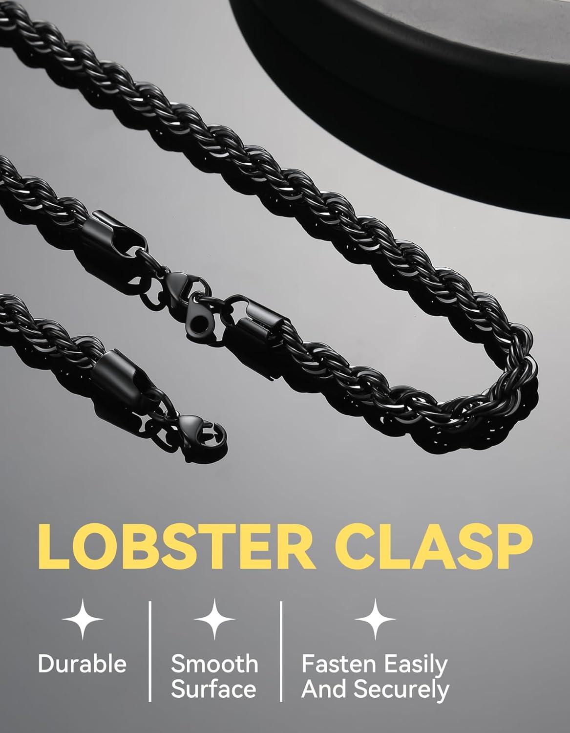 ChainsHouse Rope Chain for Men Women, Stainless Steel Twisted Chain Necklace 1.5mm/2mm/3mm/3.8mm/6mm Width, Black/14K Gold Mens Rope Chains Jewelry 16″-30″, Send Gift Box(c. 3.8mm width-black)