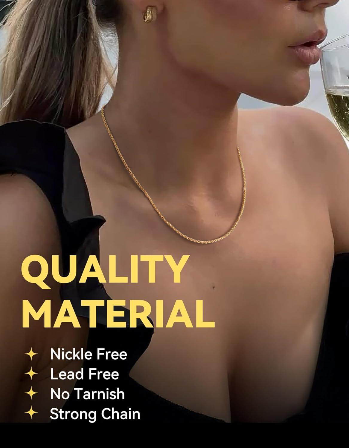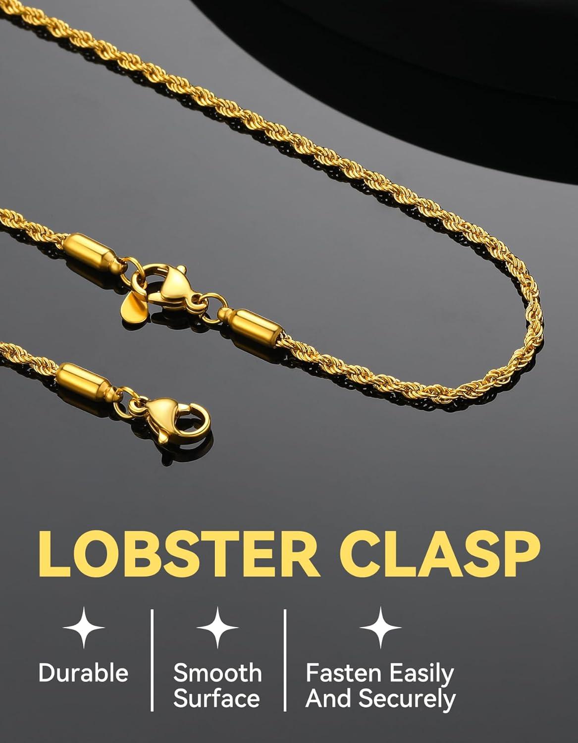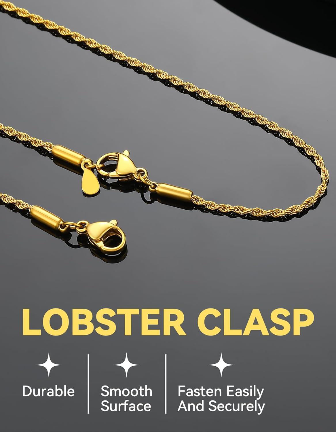 ChainsHouse Rope Chain for Men Women, Stainless Steel Twisted Chain Necklace 1.5mm/2mm/3mm/3.8mm/6mm Width, Black/14K Gold Mens Rope Chains Jewelry 16″-30″, Send Gift Box(b. 2mm width-gold)