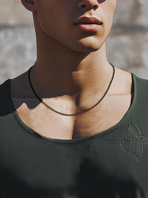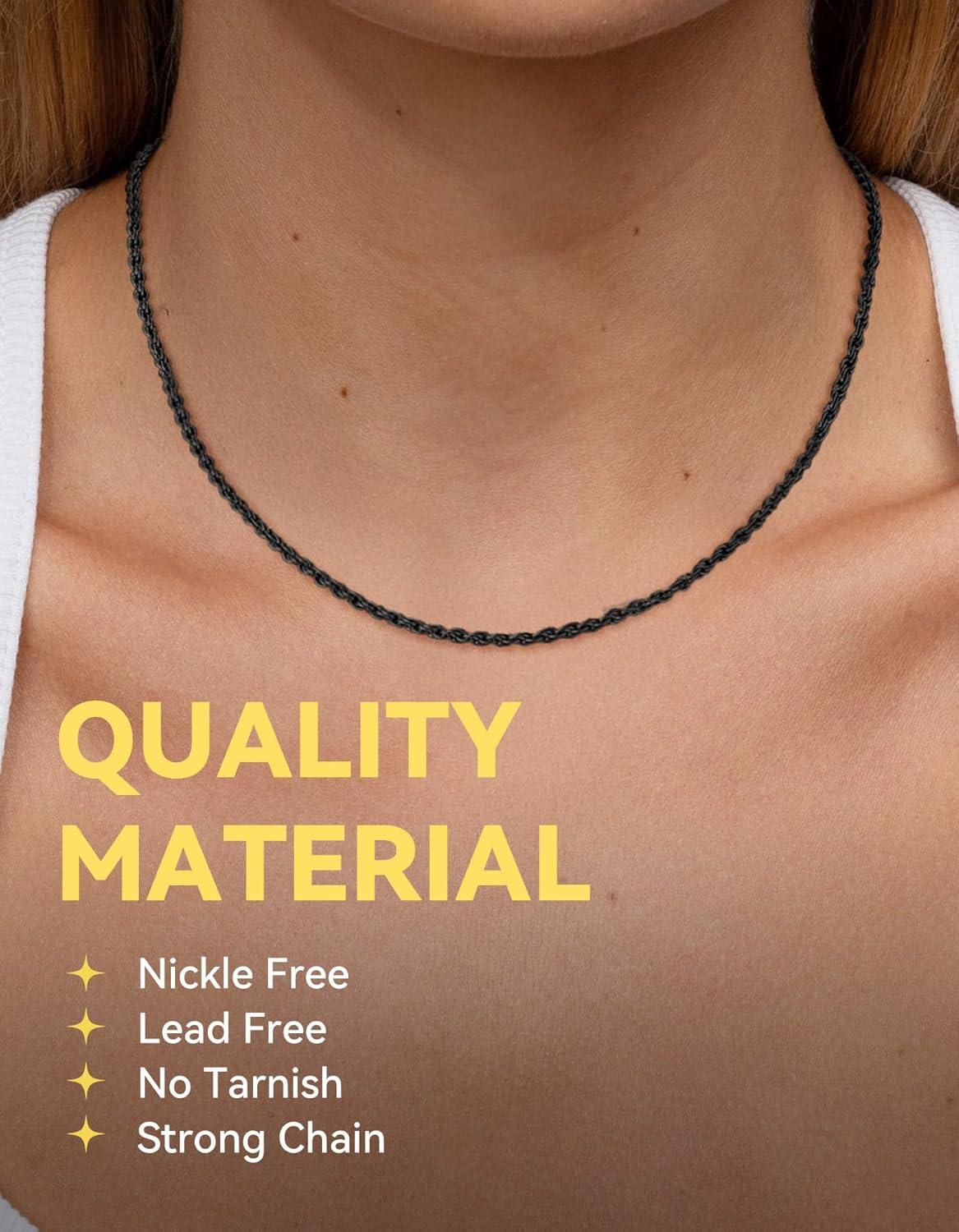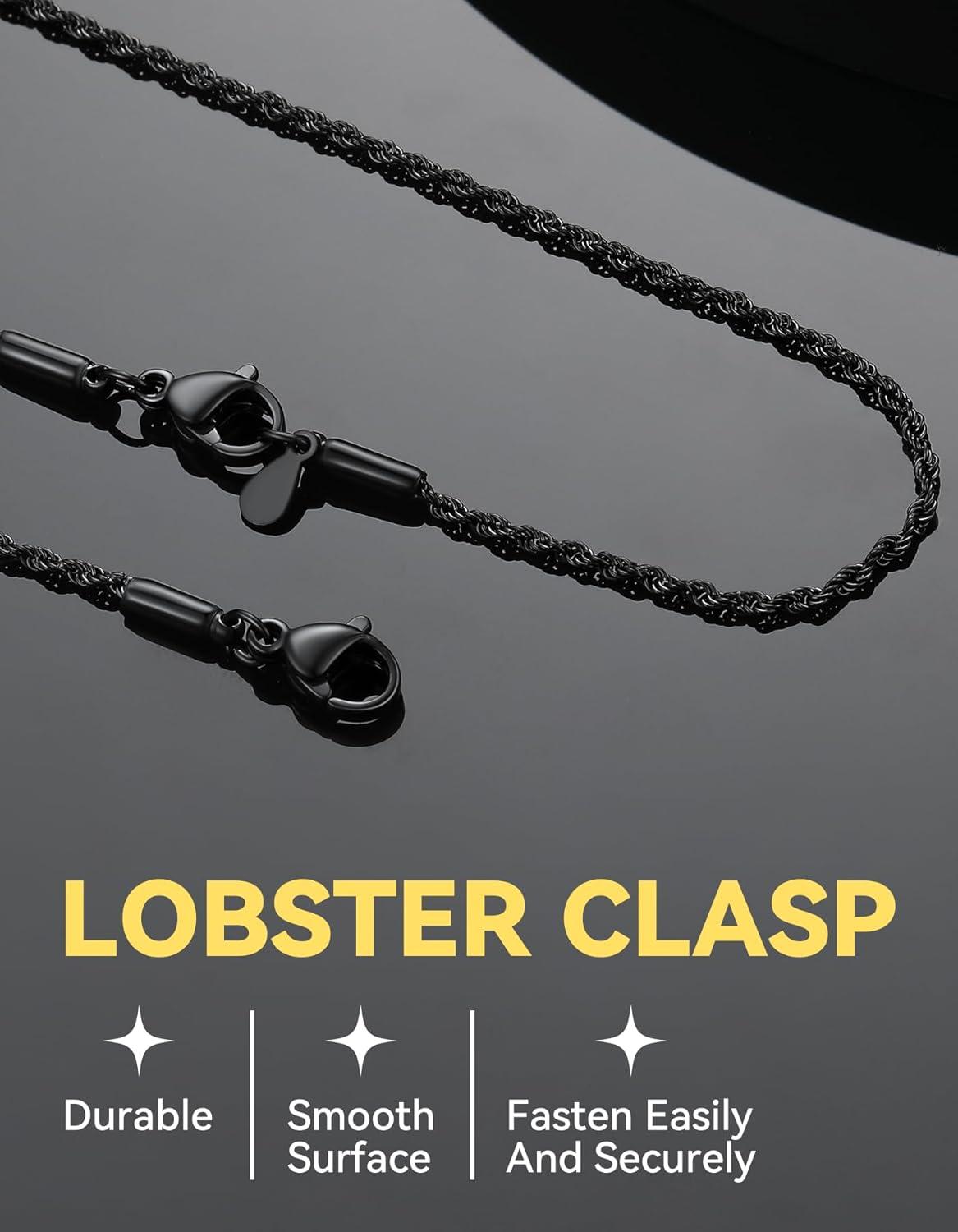ChainsHouse Rope Chain for Men Women, Stainless Steel Twisted Chain Necklace 1.5mm/2mm/3mm/3.8mm/6mm Width, Black/14K Gold Mens Rope Chains Jewelry 16″-30″, Send Gift Box(c. 3mm width-black)