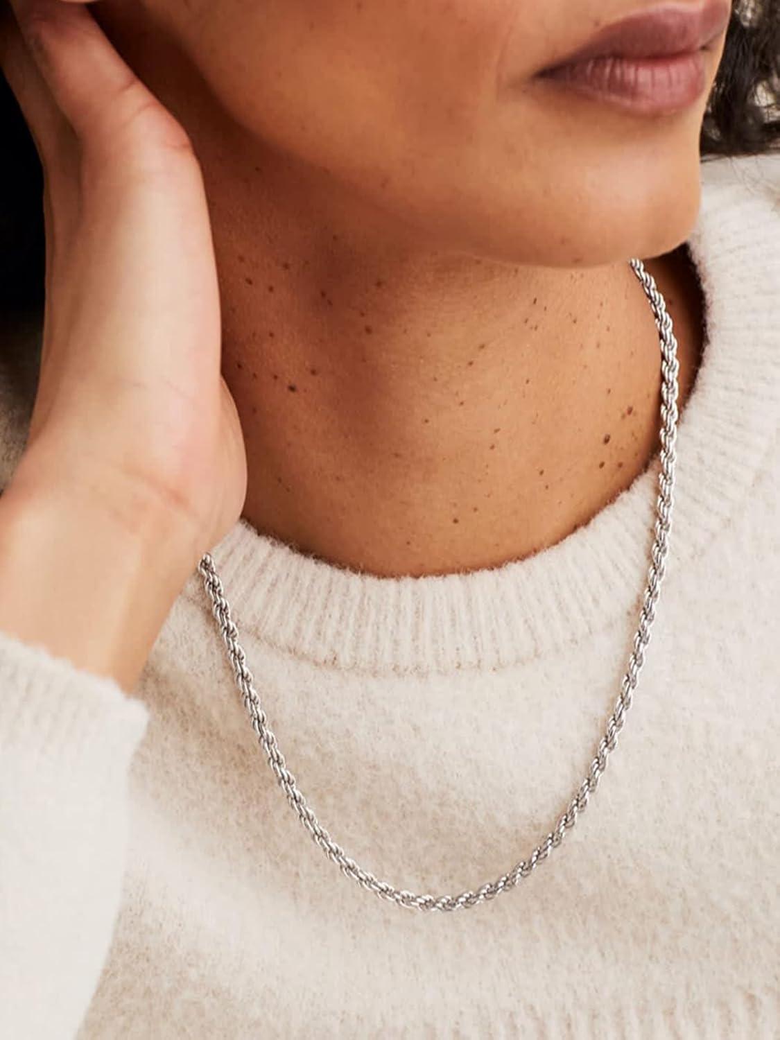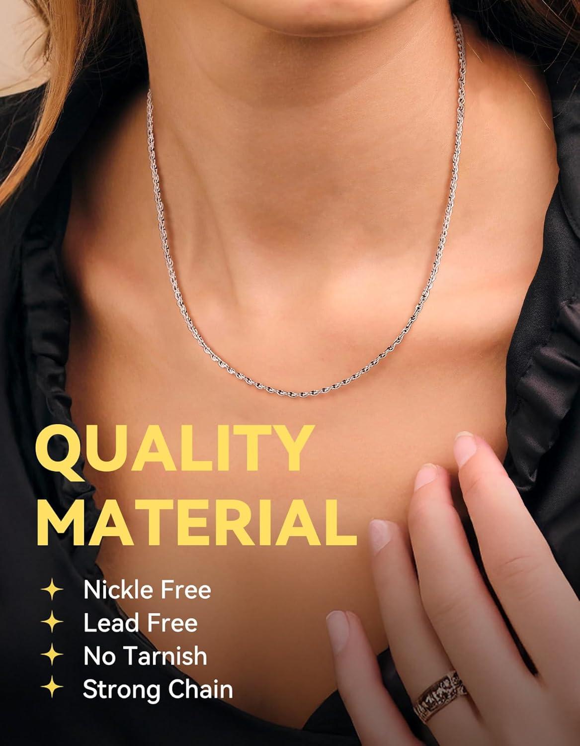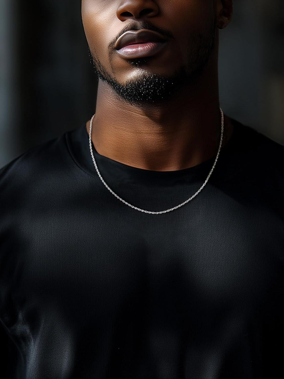 ChainsHouse Rope Chain for Men Women, Stainless Steel Twisted Chain Necklace 1.5mm/2mm/3mm/3.8mm/6mm Width, Black/14K Gold Mens Rope Chains Jewelry 16″-30″, Send Gift Box(a. 2mm width-steel)