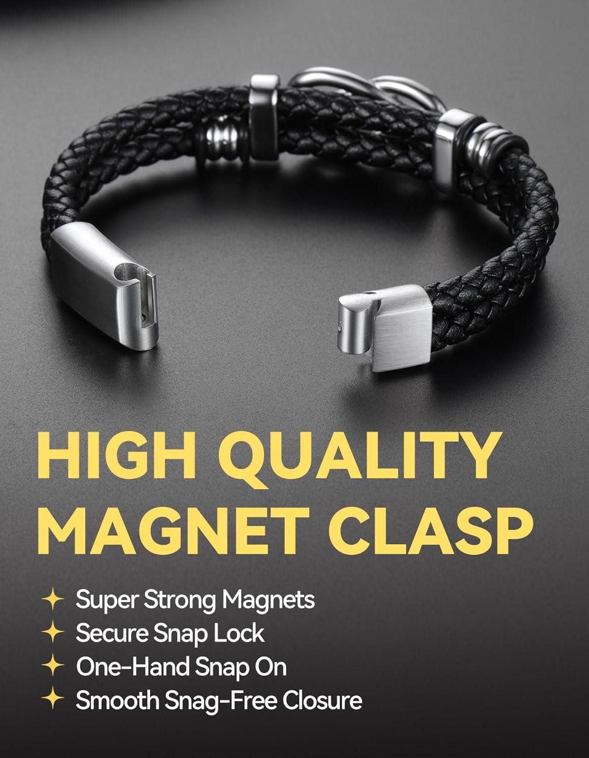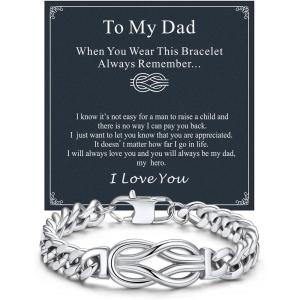 ChainsHouse Square Love Knot Bracelets for Men Braided Leather Stainless Steel Infinity Bracelets with Love Message Card Aniversary Birthday Gift for Men/Love/Husband/Dad(14-To My Dad-Steel)