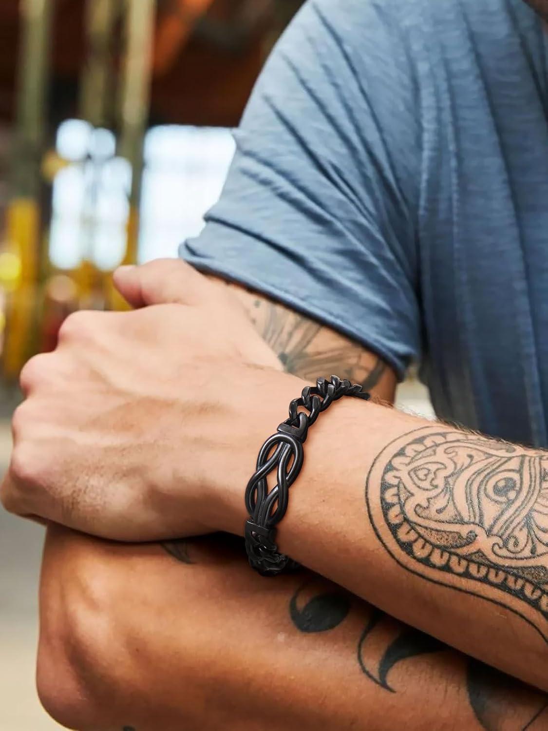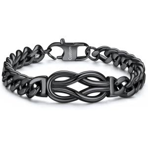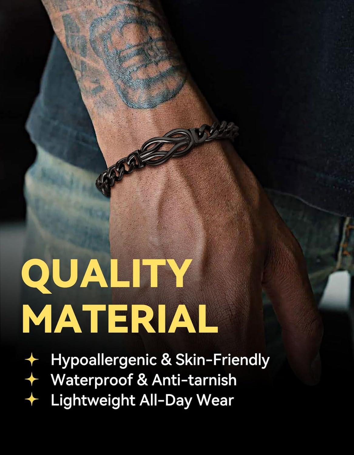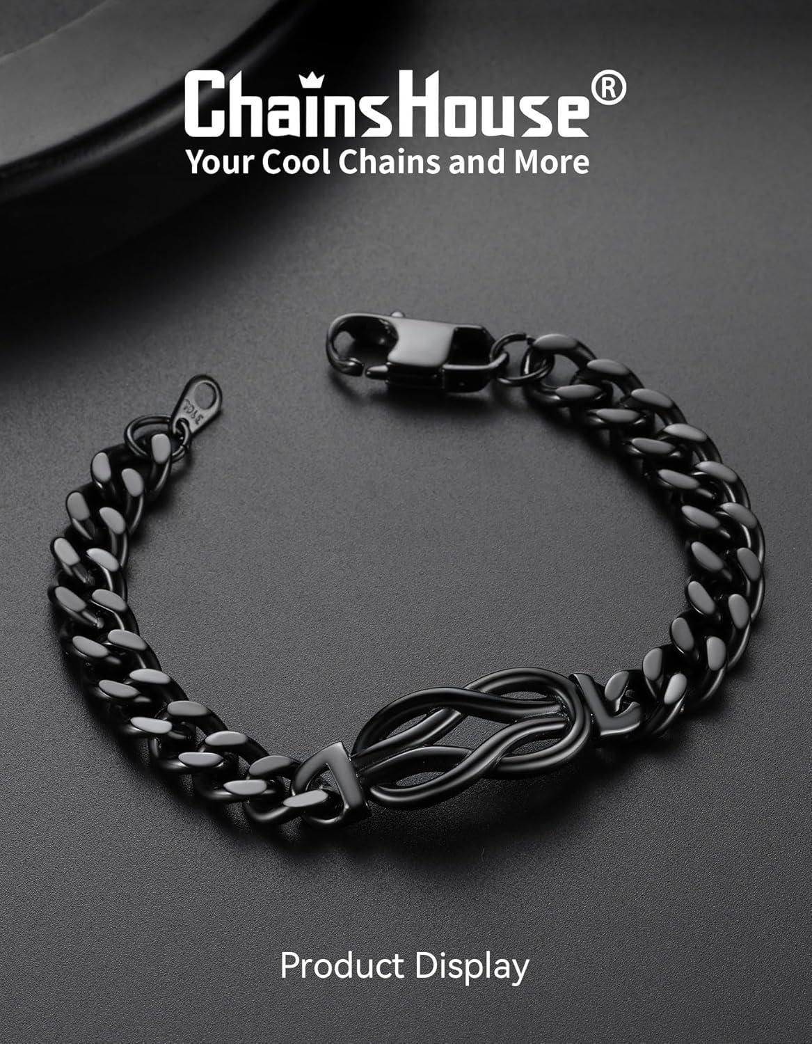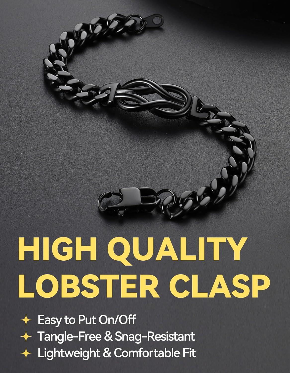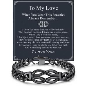 ChainsHouse Square Love Knot Bracelets for Men Braided Leather Stainless Steel Infinity Bracelets with Love Message Card Aniversary Birthday Gift for Men/Love/Husband/Dad(24-Custom-Black)