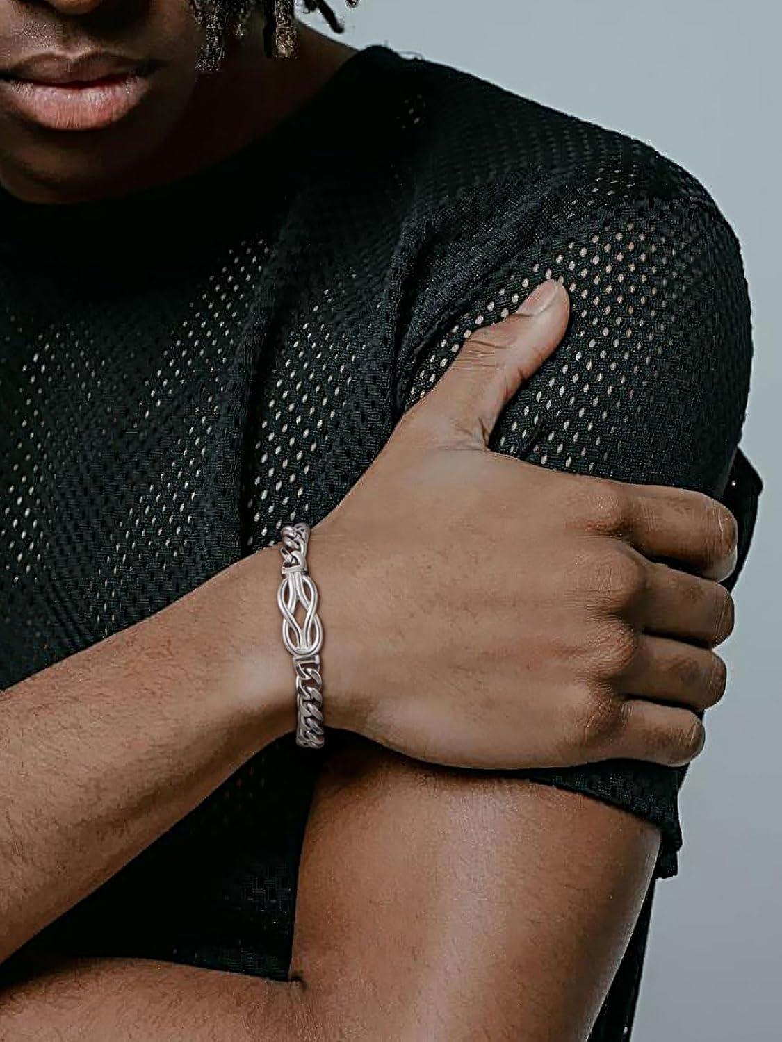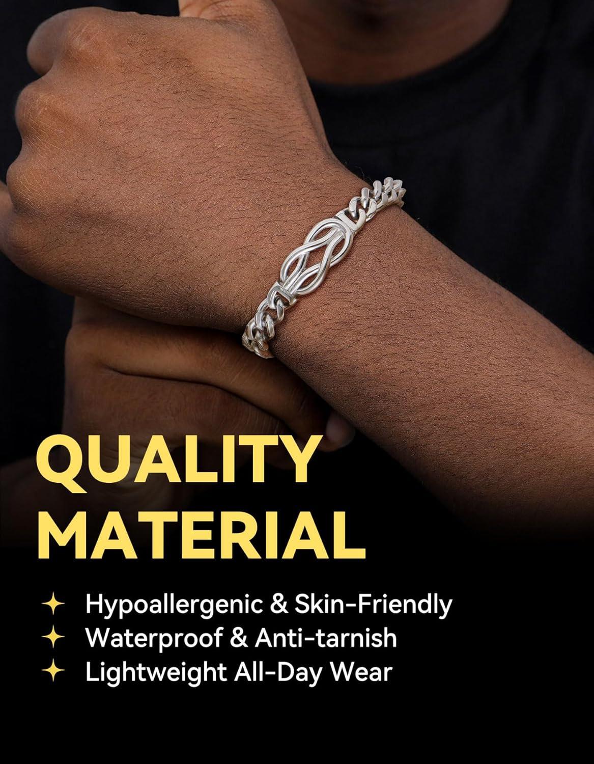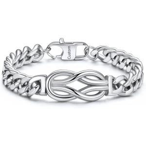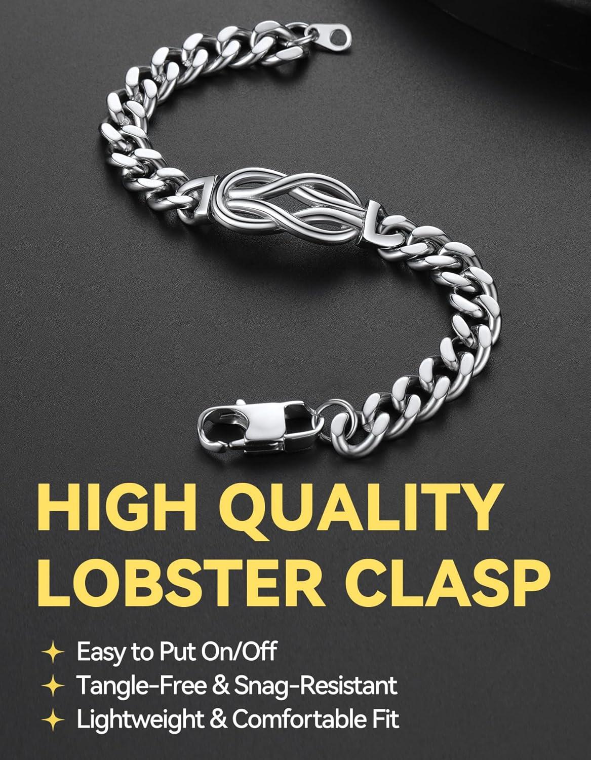 ChainsHouse Square Love Knot Bracelets for Men Braided Leather Stainless Steel Infinity Bracelets with Love Message Card Aniversary Birthday Gift for Men/Love/Husband/Dad(23-Custom-Steel)