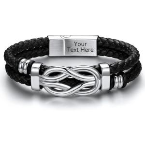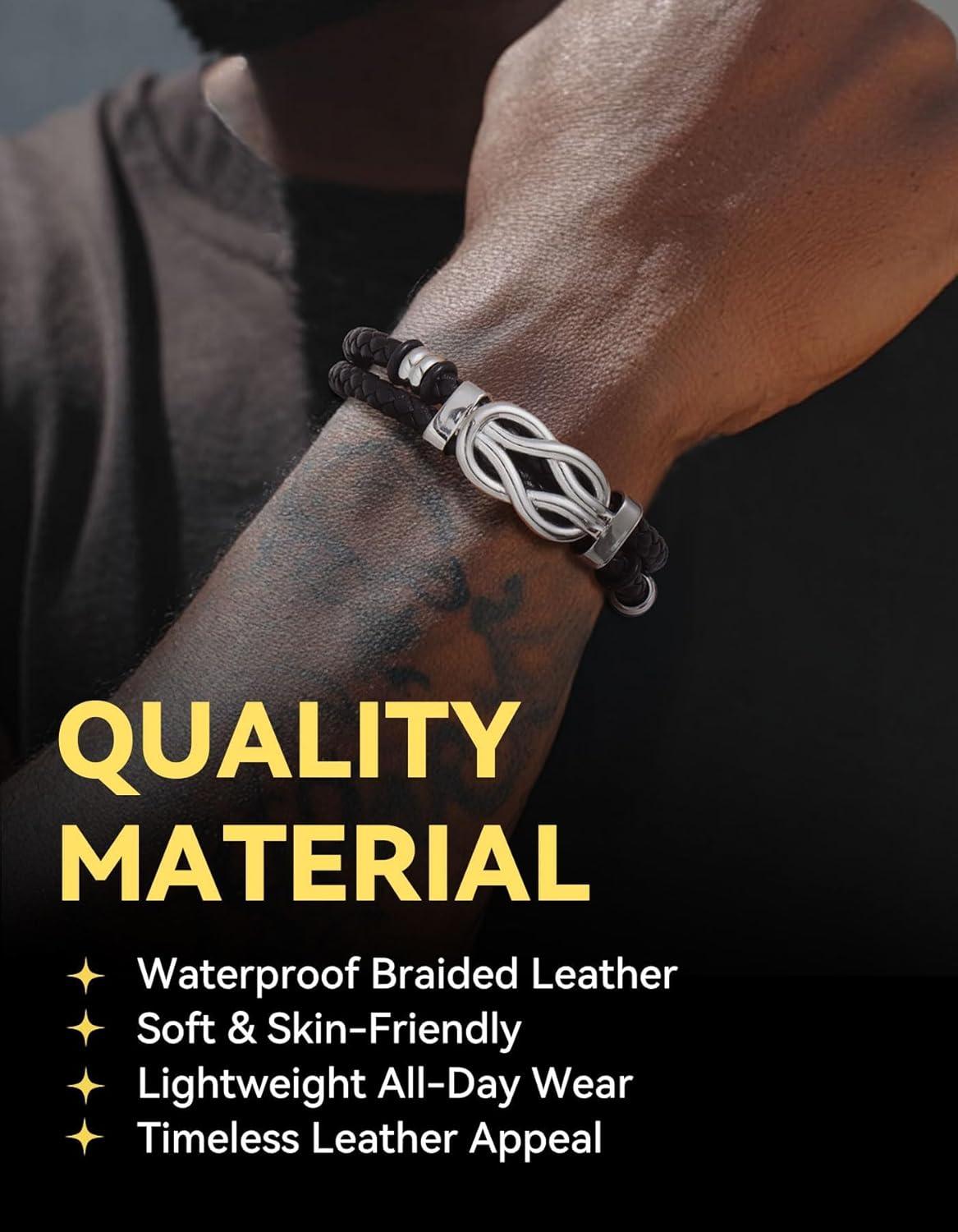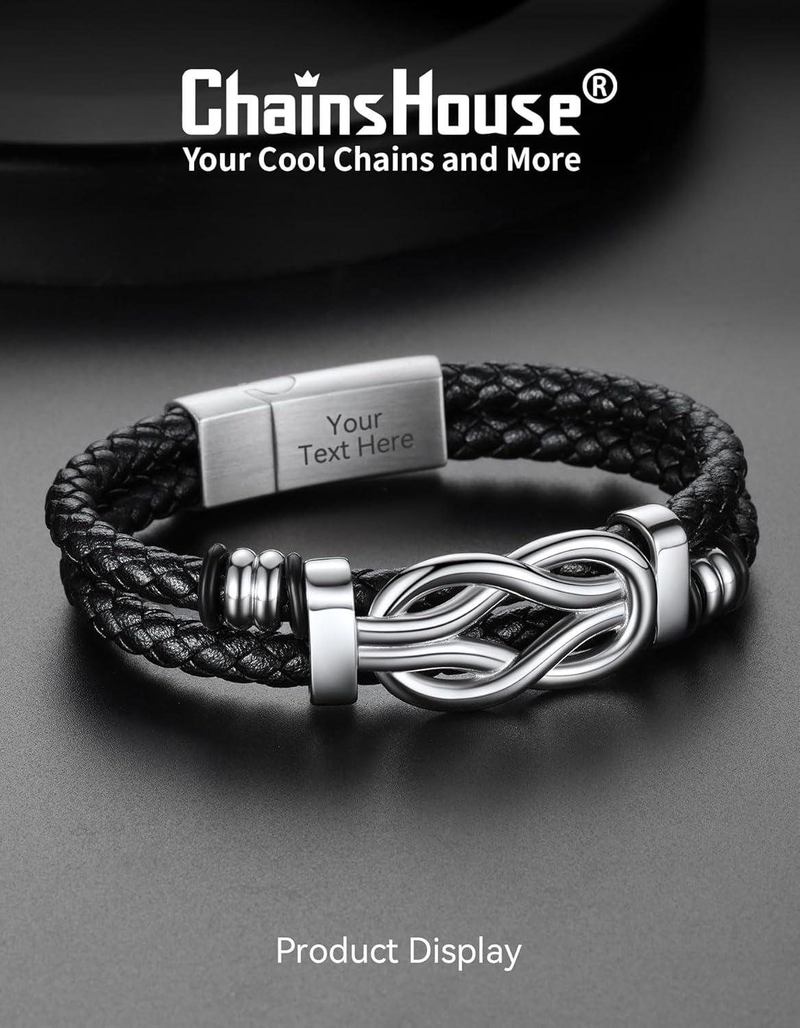 ChainsHouse Square Love Knot Bracelets for Men Braided Leather Stainless Steel Infinity Bracelets with Love Message Card Aniversary Birthday Gift for Men/Love/Husband/Dad(22-Custom-Braided)